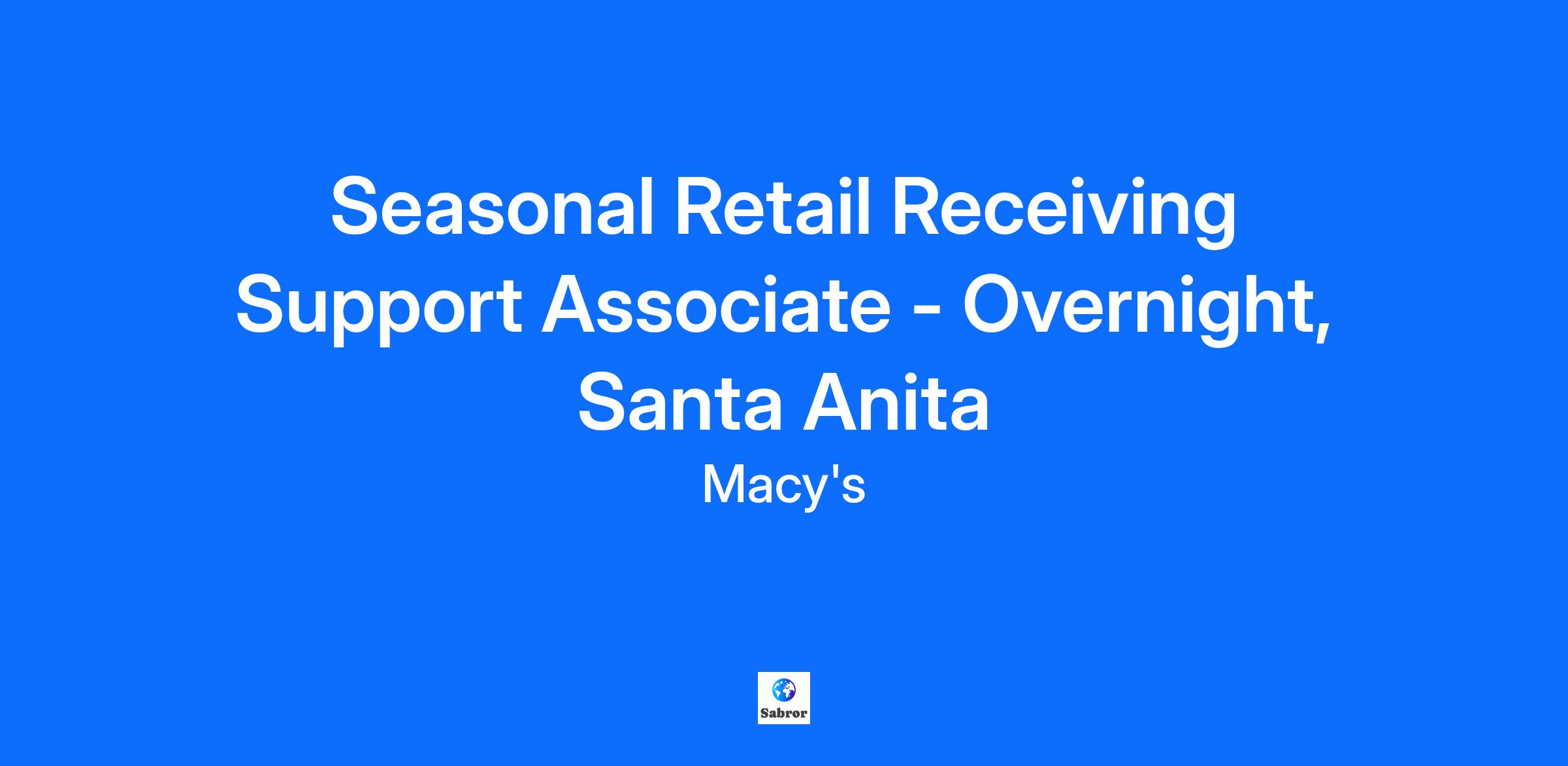 Seasonal Retail Receiving Support Associate - Overnight, Santa Anita