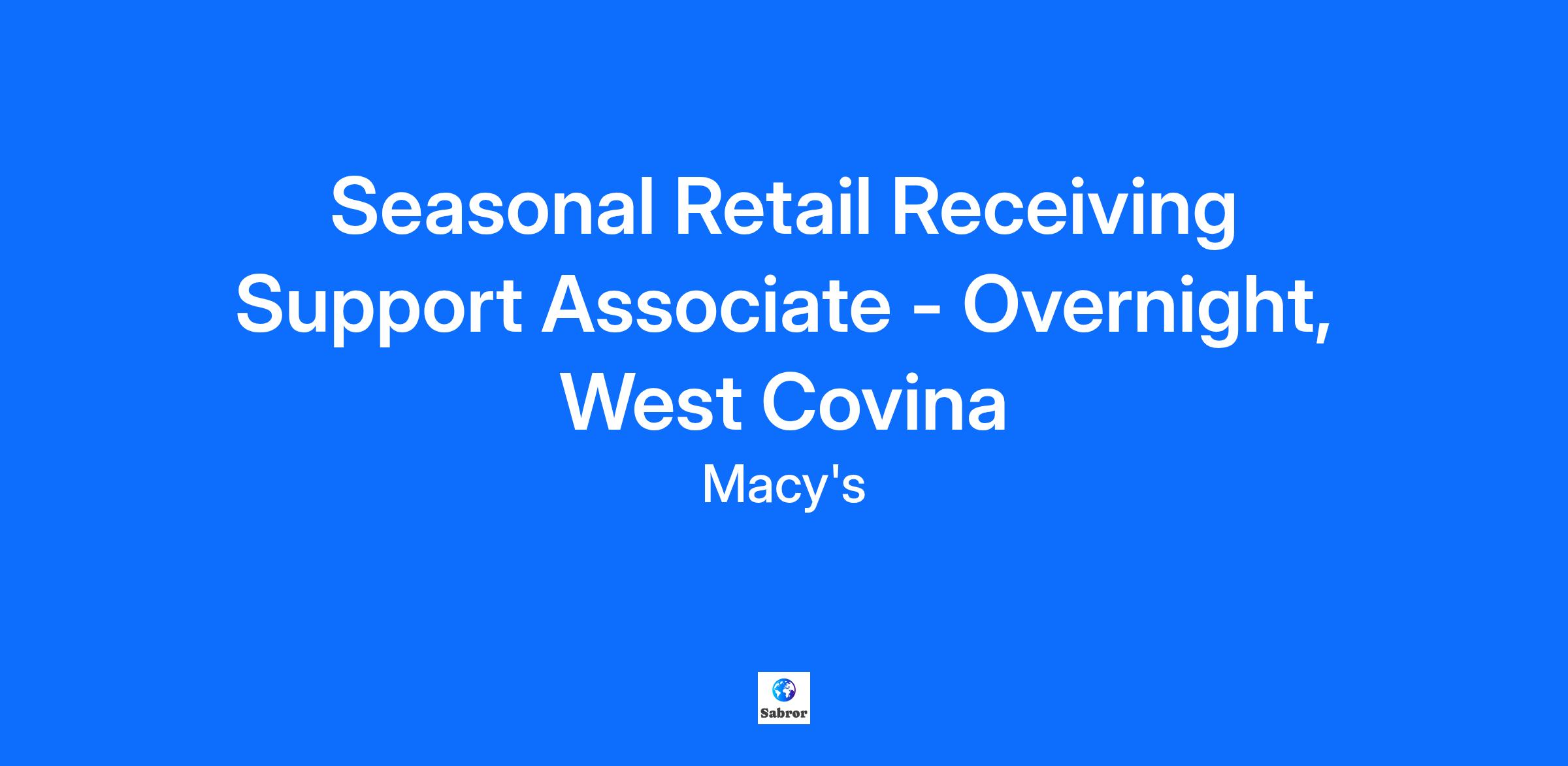 This job description is not all-inclusive and may not apply to colleagues covered by a collective bargaining agreement. Macy’s Inc. reserves the right to amend this job description at any time. Macy’s Inc. is an Equal Opportunity Employer, committed to a diverse and inclusive work environment.