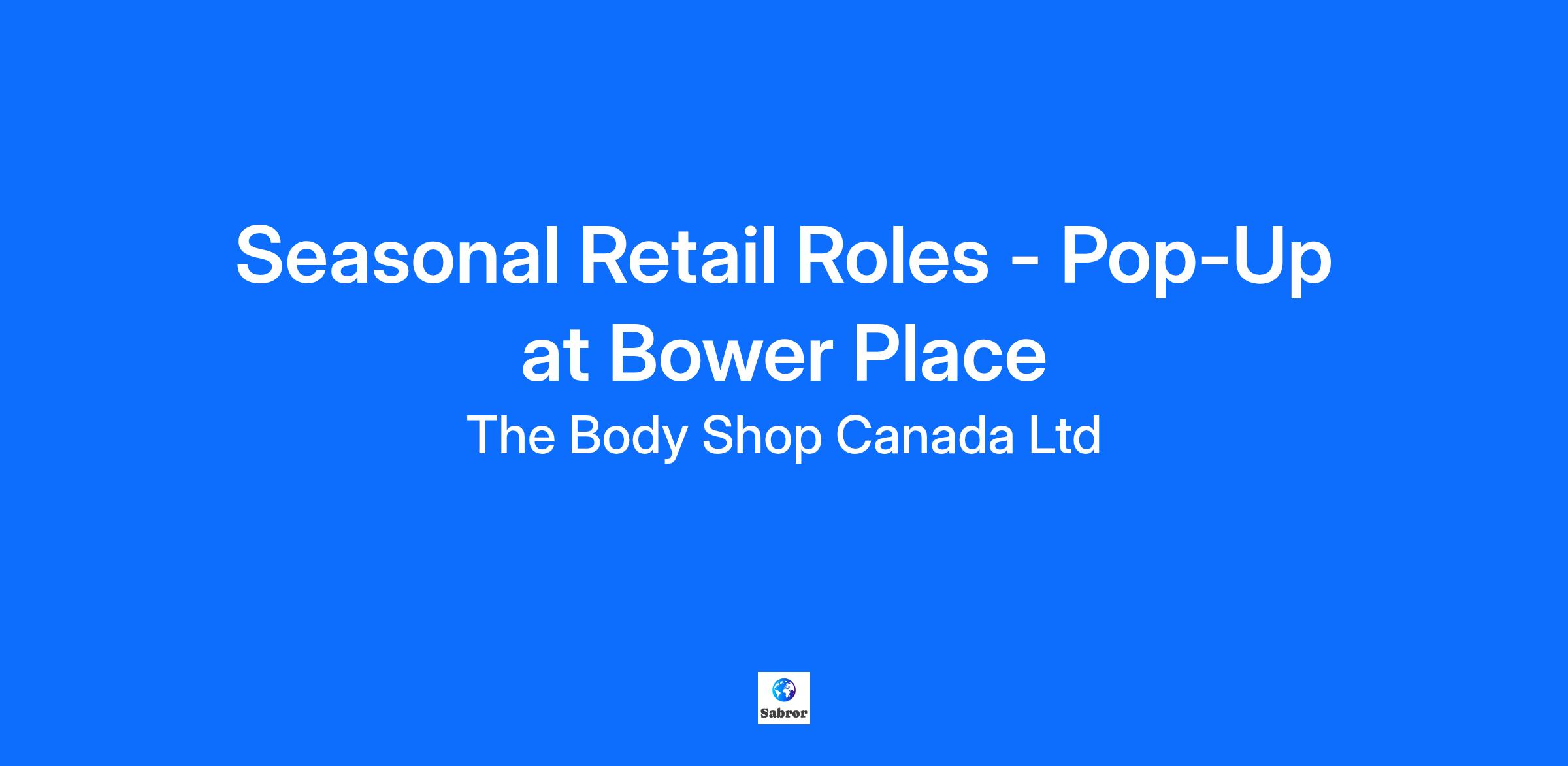 🎉 The Body Shop Holiday Pop-Up Shop is coming to Bower Place - and we need YOU to bring the festive magic! 🎉  We’re on the hunt for Part-Time Seasonal Superstars ready to spread joy, share beauty, and help customers find those perfect gifts that sparkle. Whether you’re looking to boost your holiday budget, gain retail experience, or simply love the energy of the season, this could be your BEST holiday yet!  We’re hiring for multiple temporary roles from October through January (with a chance to stick around afterwards!), perfect for extra holiday cash and festive vibes.  Available Positions:  ✨ Holiday Pop-Up Store Managers (Full-Time) * Lead the festive charge and inspire your team! ✨ Holiday Pop-Up Team Leads (Part-Time and Full-Time) * Support the crew, spread positive vibes, and keep the holiday cheer flowing strong from open to close. ✨ Holiday Pop-Up Customer Consultants (Part-Time) * Spread joy, share beauty, and help customers find the perfect gifts!   No experience? No problem! We’ll train you to sleigh the season like a pro.  Why You'll Love Working With Us: * Join a fun, inclusive, and purpose-driven team * Enjoy a sweet employee discount on your favourite products * Flexible shifts that fit YOUR holiday plans * Work with a brand that’s proudly cruelty-free and ethically committed. * Be part of a community that celebrates self-love, sustainability, and giving back!  Apply now and unwrap the opportunity to be part of something special- all holiday cheer, zero long-term commitments!  The Body Shop is committed to creating an inclusive workplace. Accommodations are available upon request. Â