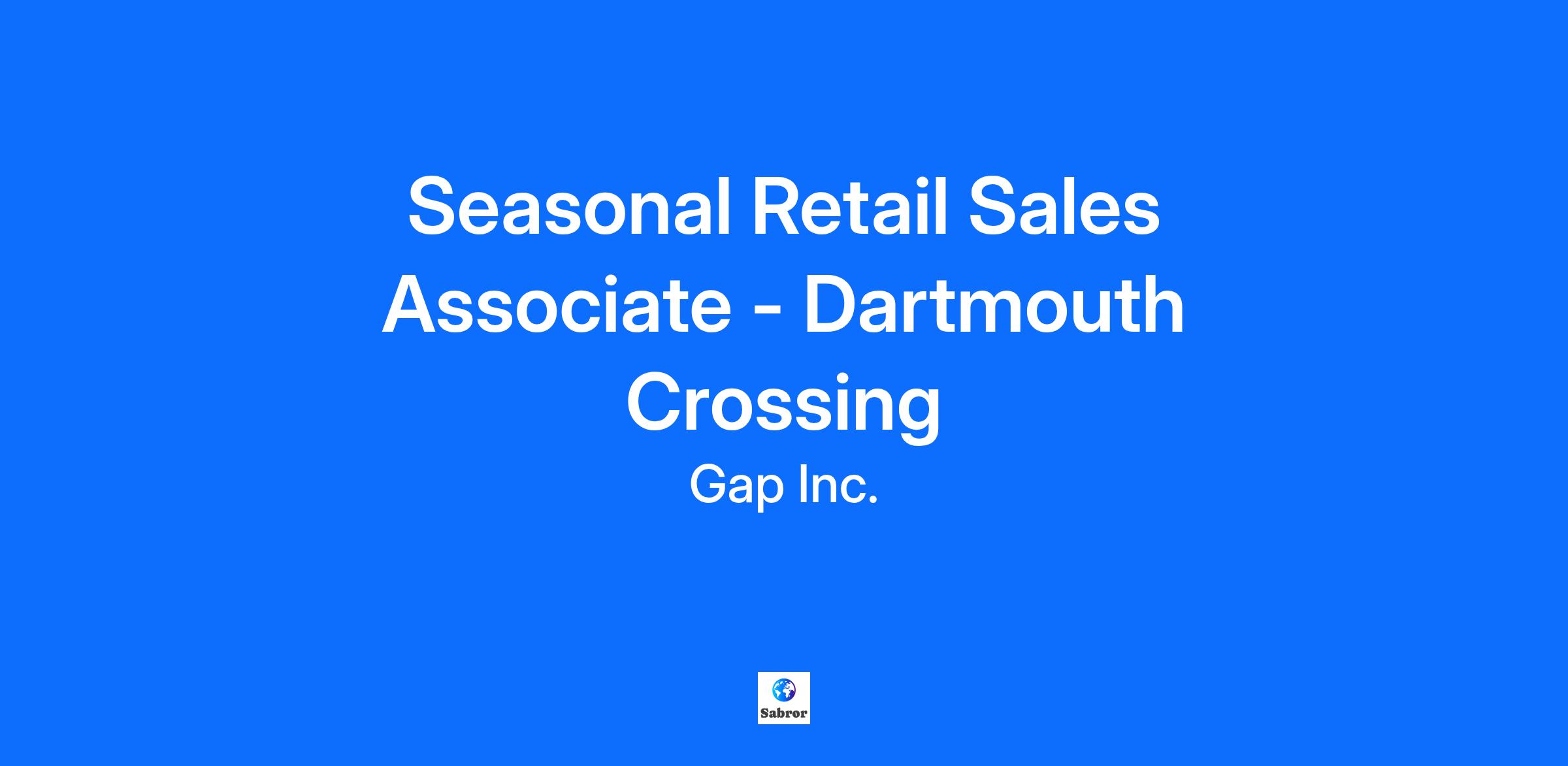 Seasonal Retail Sales Associate - Dartmouth Crossing