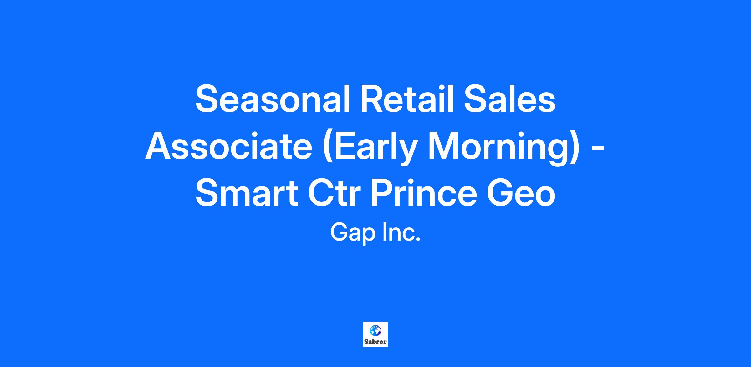 Seasonal Retail Sales Associate (Early Morning) - Smart Ctr Prince Geo