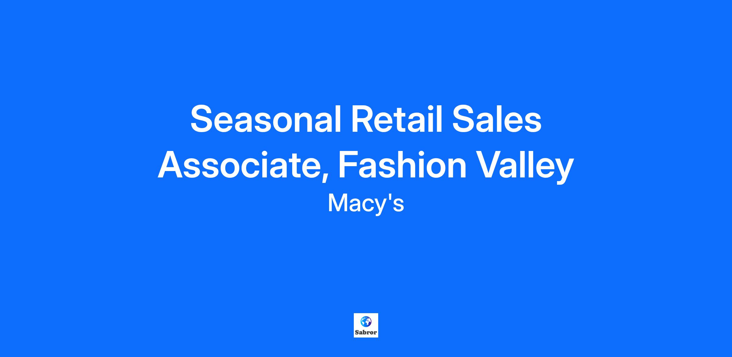 Seasonal Retail Sales Associate, Fashion Valley