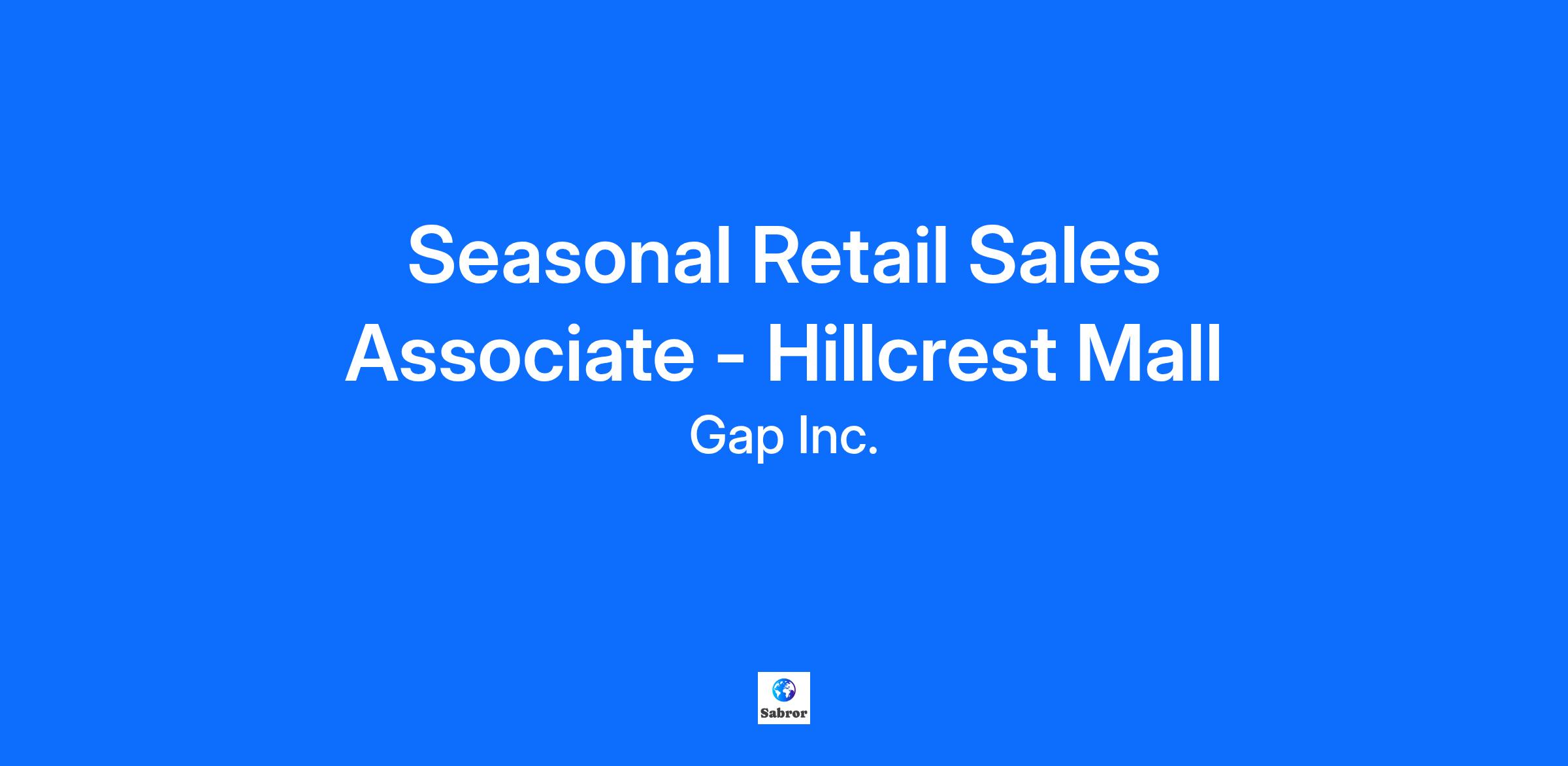 Seasonal Retail Sales Associate - Hillcrest Mall