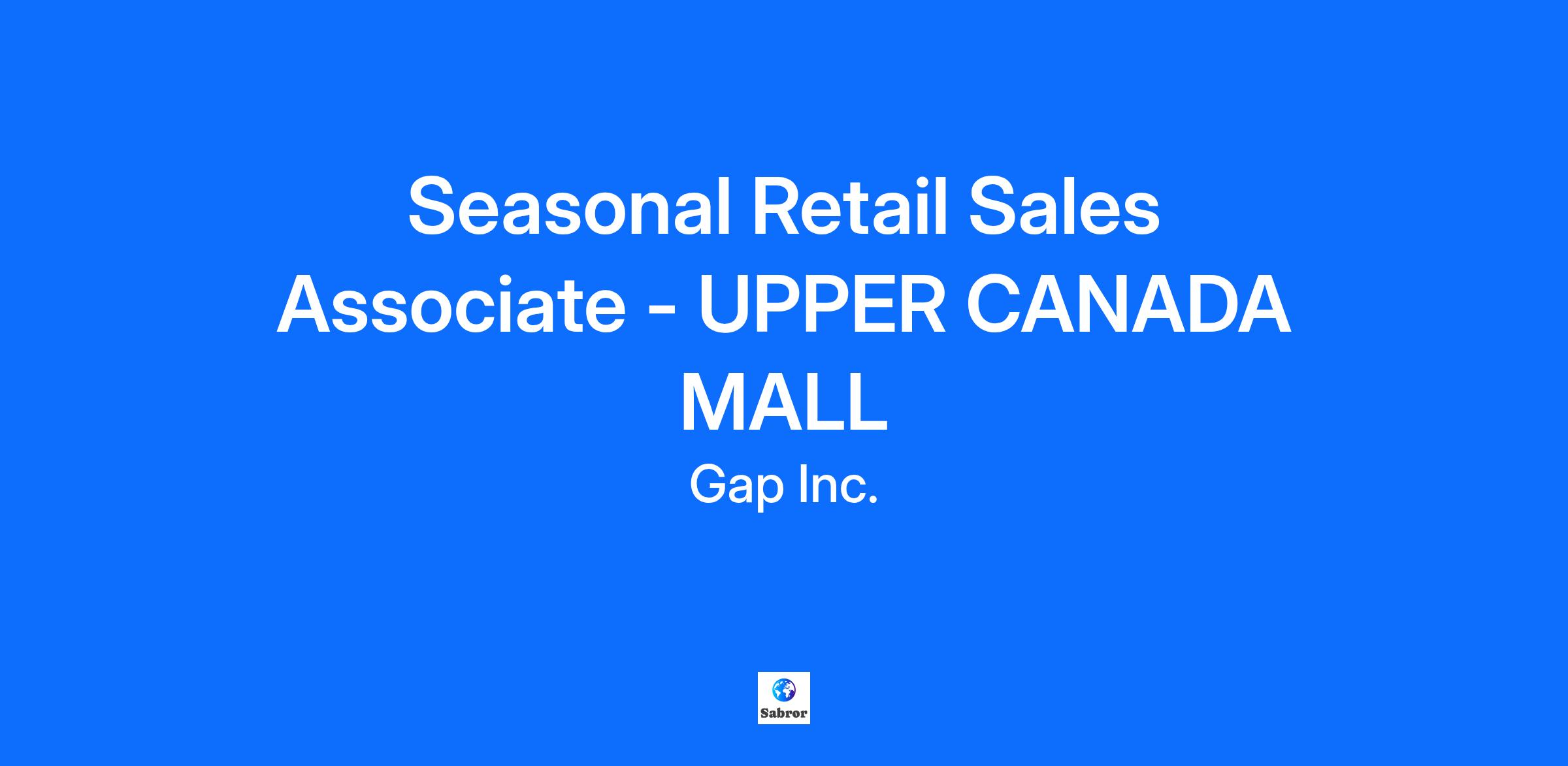 Seasonal Retail Sales Associate - UPPER CANADA MALL