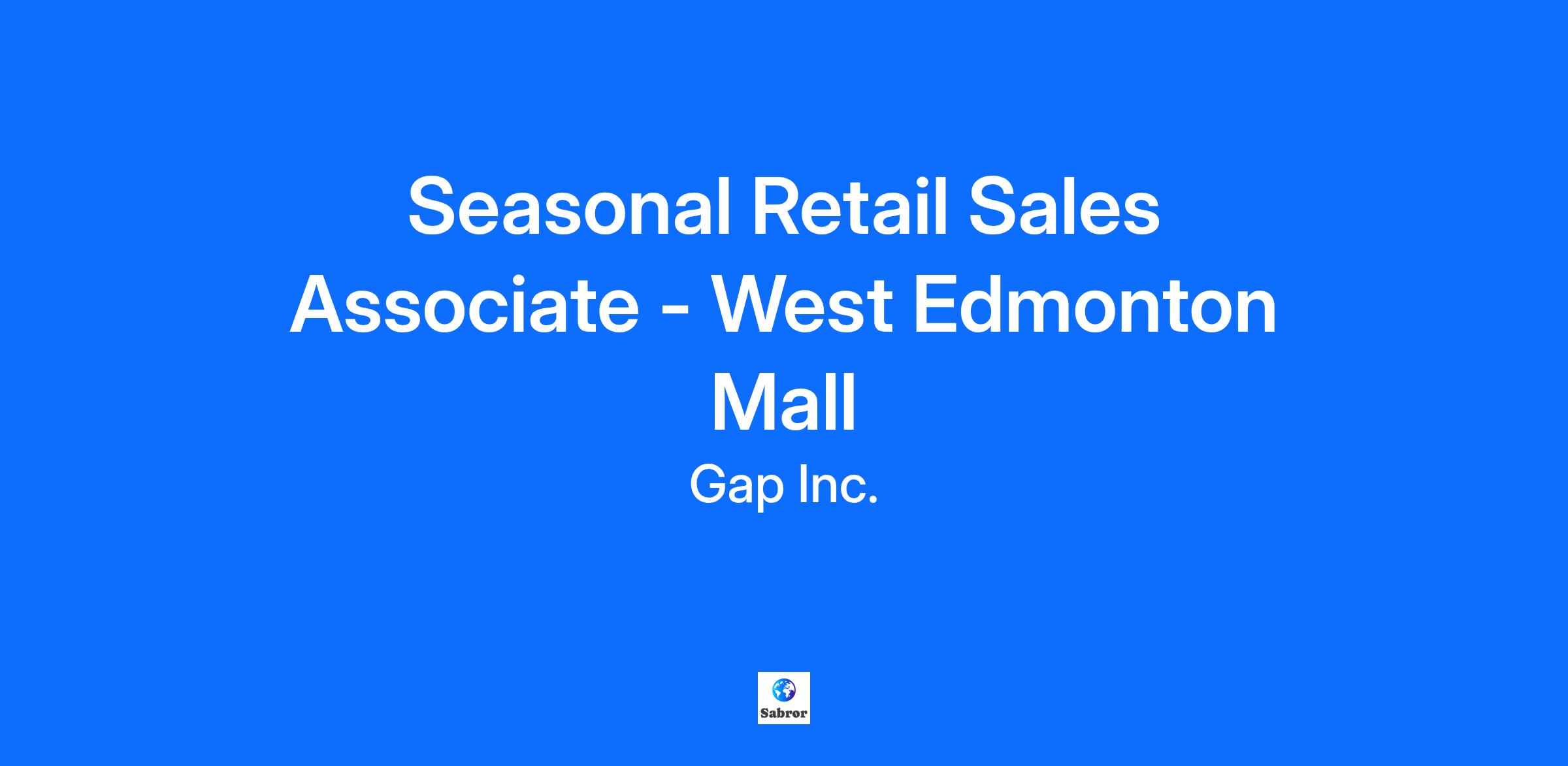 Seasonal Retail Sales Associate - West Edmonton Mall