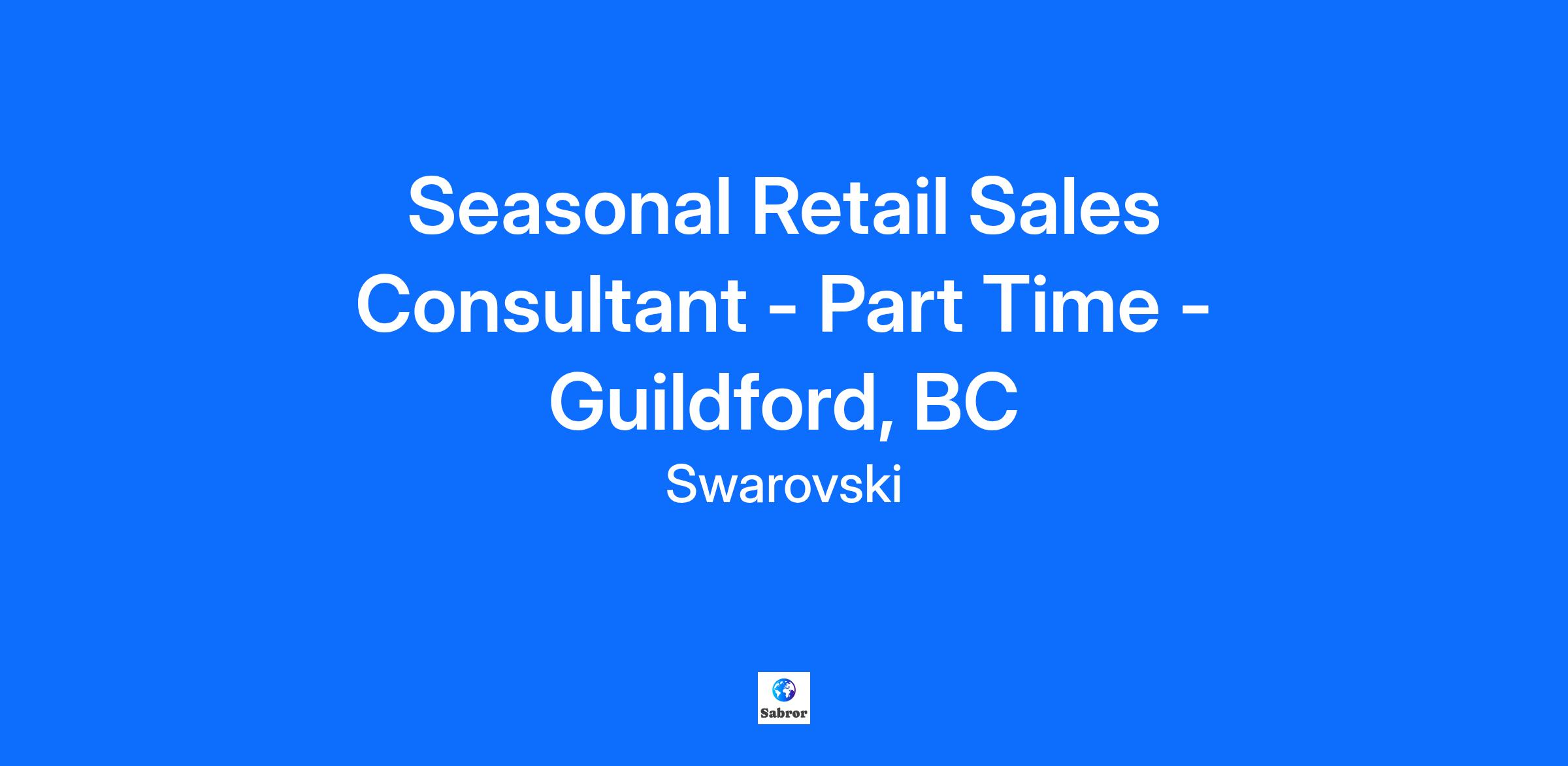 Seasonal Retail Sales Consultant - Part Time - Guildford, BC