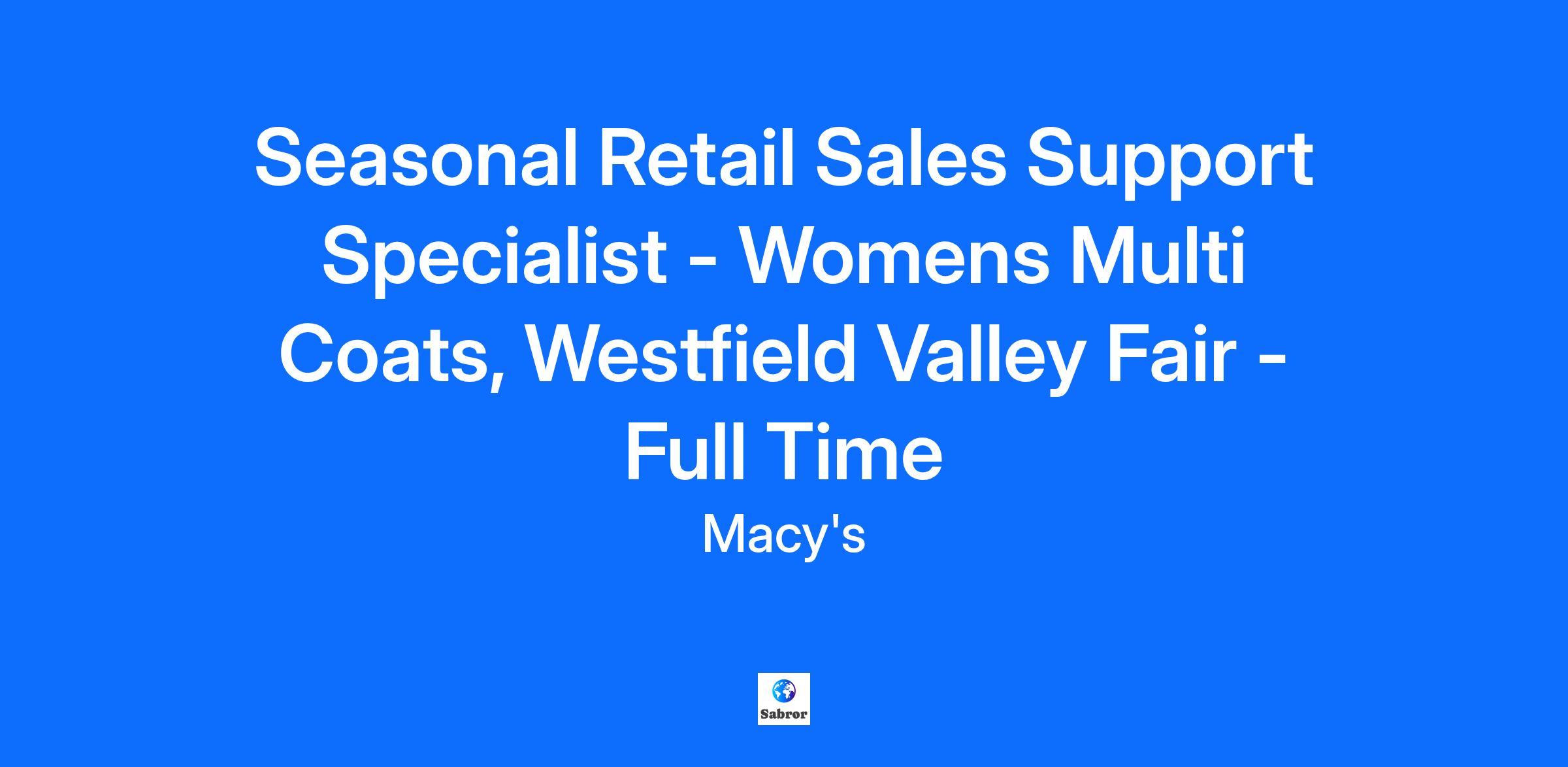 This job description is not all-inclusive and may not apply to colleagues covered by a collective bargaining agreement. Macy's Inc. reserves the right to amend this job description at any time. Macy's Inc. is an Equal Opportunity Employer, committed to an inclusive work environment.