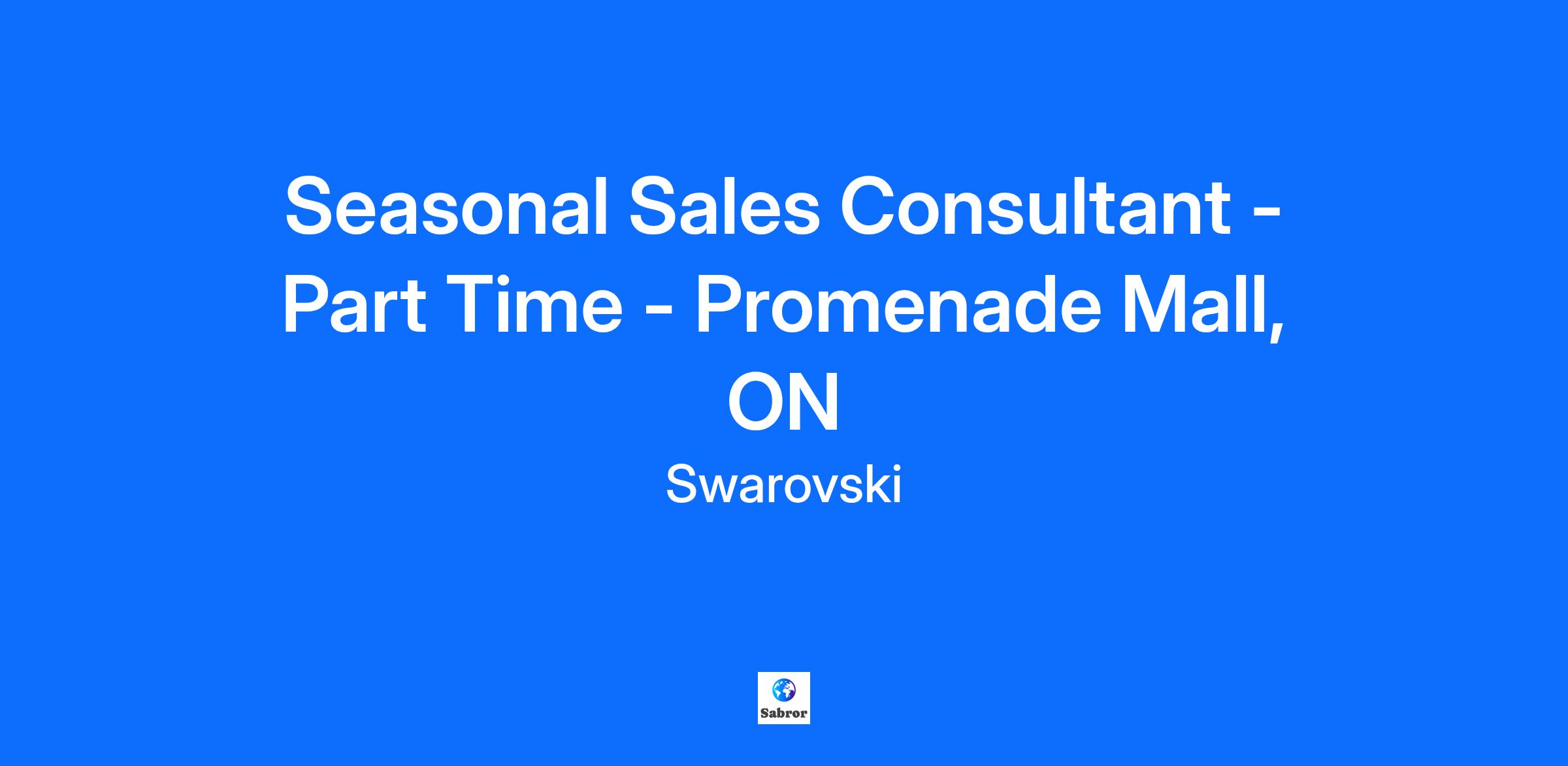 Seasonal Sales Consultant - Part Time - Promenade Mall, ON