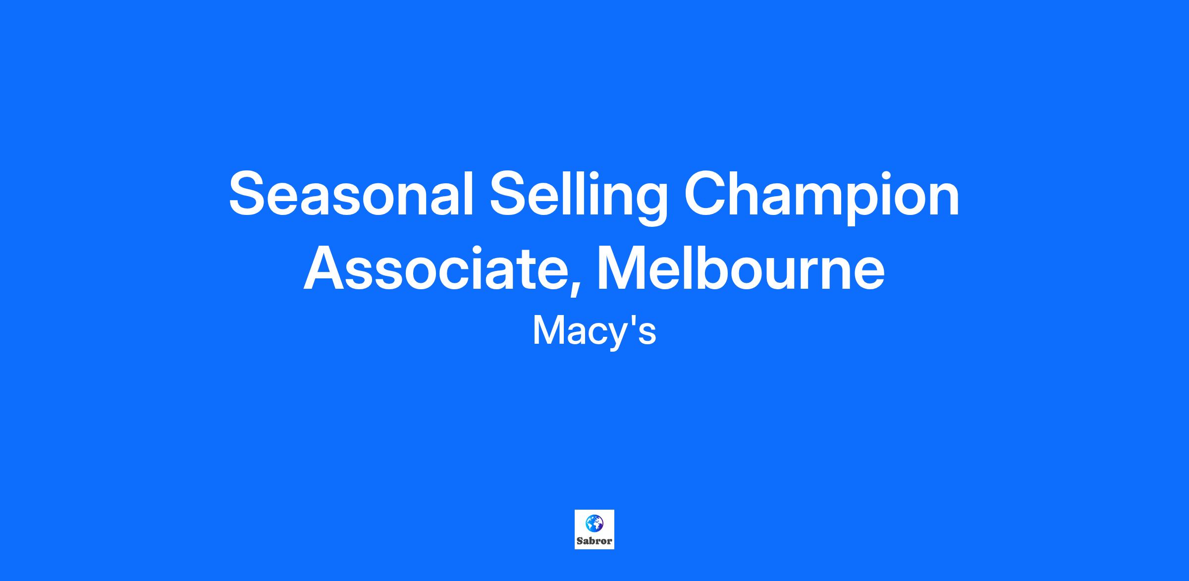 Seasonal Selling Champion Associate, Melbourne