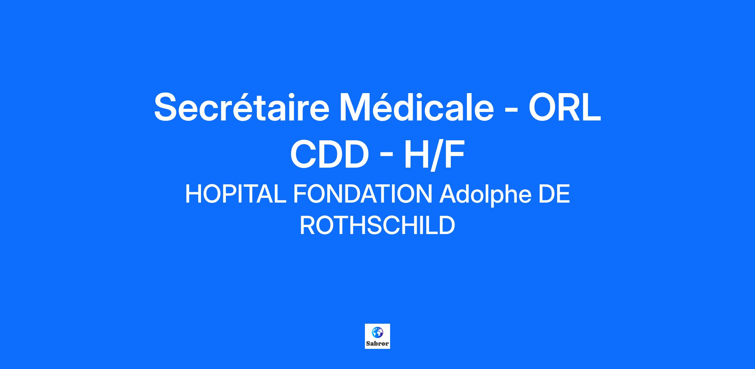 Notre établissement : L’Hôpital Fondation Adolphe de Rothschild est un établissement hospitalo-universitaire de référence dans le domaine des pathologies tête et cou qui s'engage auprès de ses équipes comme de ses patients. Notre établissement propose des parcours professionnalisants et une politique de formation ambitieuse et innovante. Etablissement privé à but non lucratif, il agit en faveur du handicap et lutte contre les discriminations. Travailler dans un environnement dynamique et humain dans lequel vous pourrez poursuivre l’apprentissage de votre métier vous motive : apportez votre contribution, rejoignez-nous ! Au sein de notre service ORL nous vous proposons d’intégrer une équipe pluridisciplinaire (médecins, paramédicaux et administratifs). Après une période de formation à nos processus, nous vous confions un poste complet et motivant. SECRETAIRE MEDICAL(E) ORL - H/F Vos missions principales : - Gestion des appels téléphoniques - Enregistrement des données médico-administratives (couverture sociale, mutuelle, adresse, téléphone, mail) - Saisie des actes et encaissements des consultations - Prise de rendez-vous de consultations et examens - Programmation des hospitalisations et interventions - Saisie de courriers, de comptes rendus, utilisation de l’outil de reconnaissance vocale - Archivage (traçabilité des dossiers papiers, scannage des documents dans le DPI). Contrat : CDD de deux mois à temps plein à pourvoir dès que possible, Horaires : 37h par semaine - 9h00/17h09 du lundi au vendredi. Rémunération : Suivant l'expérience et la convention 51 : fourchette allant de 2288 euros bruts à 2986 euros bruts. Avantages : Politique de formation ambitieuse, parcours professionnalisant, restaurant d'entreprise, mutuelle entreprise, CSE attractif, remboursement à 50% du Passe Navigo. Ce poste est fait pour vous si : Vous êtes diplômé(e) et expérimenté(e) en secrétariat médical ou assistanat médico-administratif et appréciez le travail en équipe et l’implication dans une dynamique de service. Vous maitrisez la nomenclature des actes médicaux et appréciez le travail en milieu hospitalier. Vous vous reconnaissez dans nos valeurs : Soigner, Transmettre, Innover. Nos offres d’emploi : Site carrière (https://hfar-portail-rh.csod.com/ux/ats/careersite/1/home?c=hfar-portail-rh) Linkedin : @Hôpital Fondation Adolphe de Rothschild / X (Twitter) : @FondARothschild / Youtube : @hopitalfondationrothschild / Instagram : @hopitalfondationrothschild / Facebook : @ Hopital.FondationAdeRothschild / Tik Tok : @hopi.tok