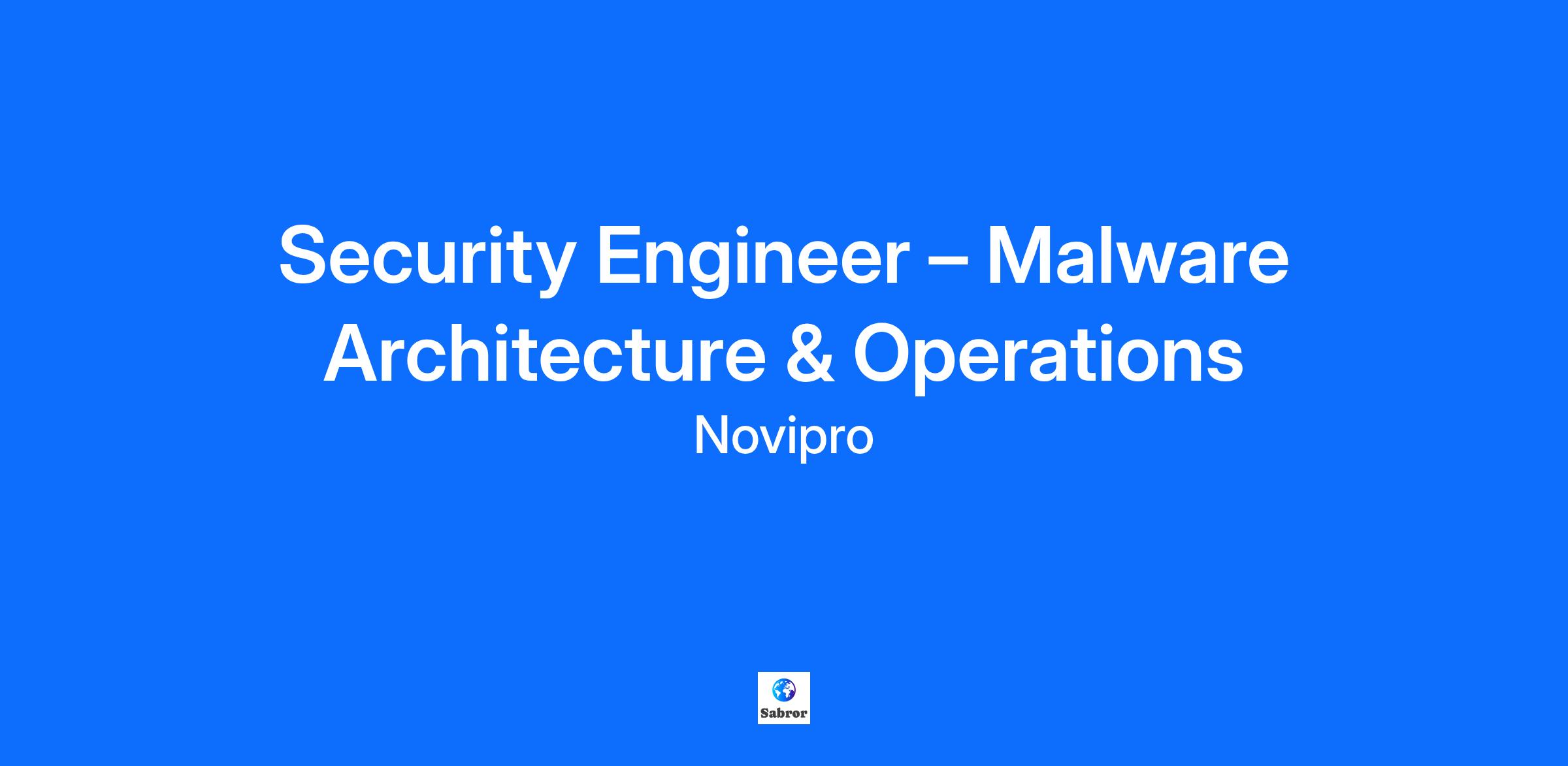Job Title: Security Engineer – Malware Architecture & Operations