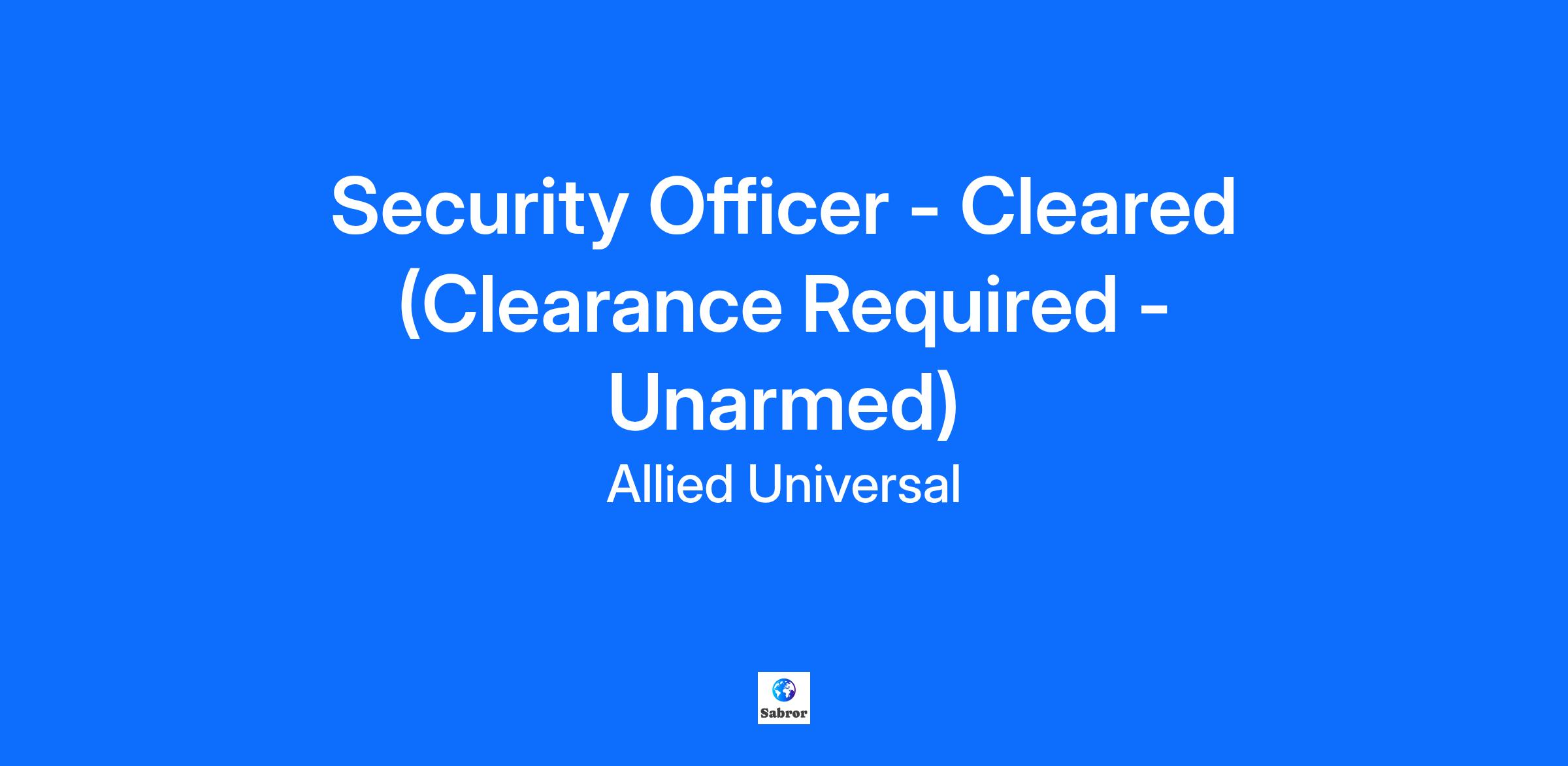 Allied Universal® is hiring a Security Officer - Cleared (Clearance Required - Unarmed). At Allied Universal, a Cleared Security Officer is entrusted with sensitive information and given the responsibility to protect classified information and personnel. As a Cleared Security Officer, you'll receive specialized training in site-specific security protocols associated with your clearance level, allowing for skill development and professional growth in the security field.