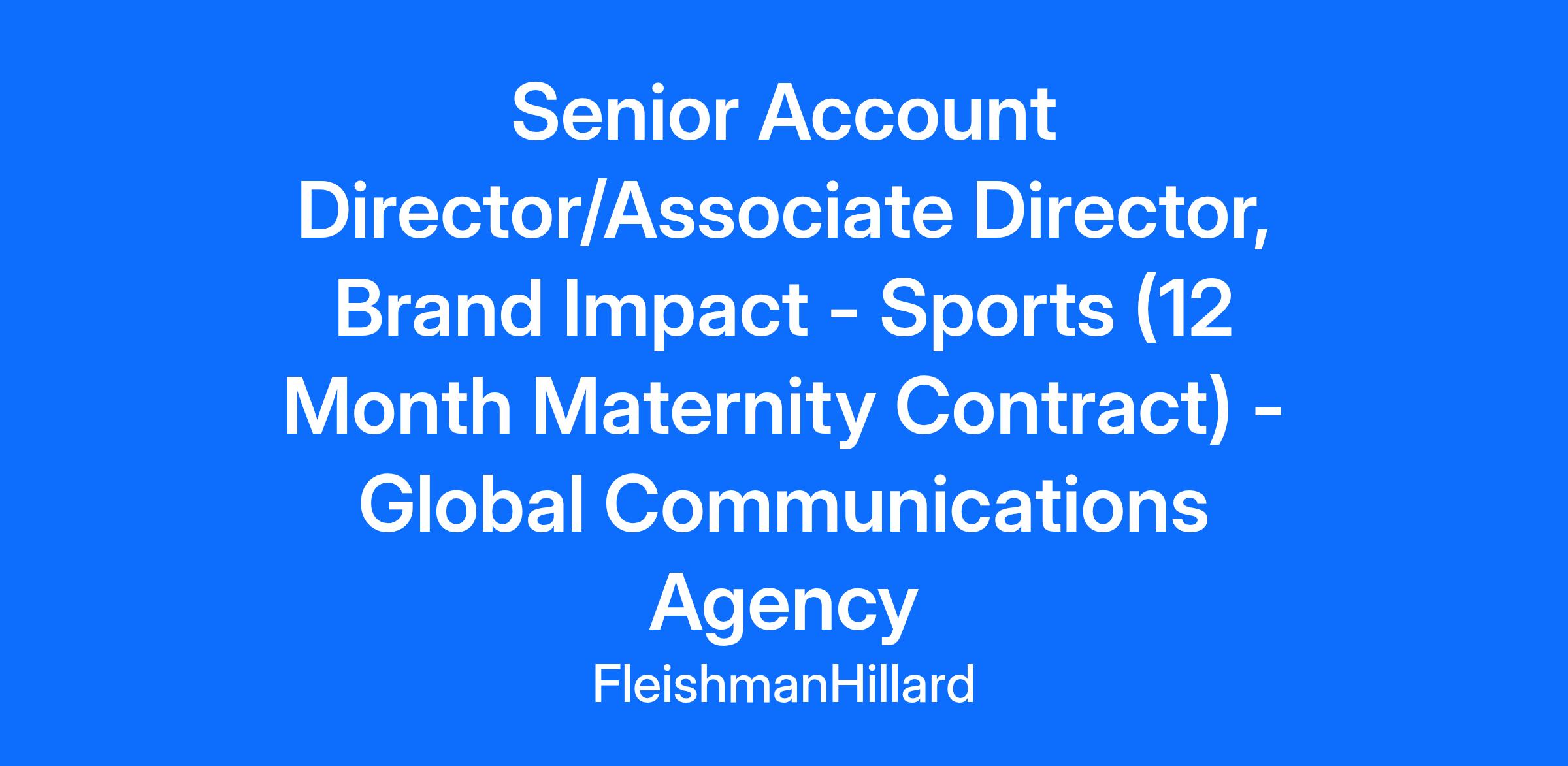 If you’re looking to continue your communications career in an award-winning global agency, then this might just be the role for you! Why FleishmanHillard? We have been named PRWeek’s Global Agency of the Year and Best Places to Work; a “Standout Agency” on Advertising Age’s A-List; NAFE’s “Top 50 Companies for Executive Women” for six years running; and among our firm’s award-winning work we’ve taken home 5 Lions at the Cannes International Festival of Creativity in previous years. We are committed to creating an inclusive and equitable working environment for everyone. As the only PR Agency awarded EY’s National Equality Standard (twice!), all applicants will receive consideration for employment without regard to race, religion, ethnicity, gender identity, sexual orientation, national origin, disability or age. Do let us know if you need any adjustments made during the interview process. The Team We harness the collective power of creative, social and strategic marketing to produce electric, infectious and award-winning communications. With this in mind, we create provocative, inspiring solutions for big brands with stories to tell - which could be anything from traditional media, social first content and creators to an installation, film, event or long-term movement. And while we’re part of a successful global group, we have developed a ‘start-up’ mentality of bravery and entrepreneurialism, rooted in business-changing ideas. The Role We are seeking an ambitious Sports Comms expert (Senior Account Director/Associate Director level) to join our Sports & Entertainment team in London. You will be responsible for driving UK and Global sports partnership and sports brand campaigns, leading teams and delivering growth (both organic and new) across our current portfolio. You will form part of our Brand Senior Leadership Team, taking commercial and pastoral responsibility for the team of 25+ individuals, ensuring the utmost comms expertise, service and effectiveness is being delivered to clients across the board. The role will involve integrated comms counsel, requiring solid understanding and ideally experience across PR, Social, Digital, Influencer and Talent communications, specific to the sports industry. The right candidate will bring strong industry insights, a UK-first sports network across communications and partnerships, solid organisational and leadership skills to a dynamic, and fast-paced team that strives to create true impact for its diverse roster of clients. This position is offered as a 12-month fixed-term contract (maternity cover). Key responsibilities include: Team Leadership Lead, mentor, and develop a team of account managers, strategists, and coordinators Set performance standards and drive a culture of excellence and creativity Foster collaboration across PR, content, digital, and influencer teams Support team professional development and career progression Campaign Development Oversee the creation of innovative, integrated campaigns that break through in the Sports and wider Cultural space Ensure all work demonstrates creativity, strategic thinking, and measurable ROI Balance owned, earned, shared, and paid channels to maximize impact Manage campaign timelines, budgets, and quality across all deliverables Expertise in Sports Comms Client Management and Business Development Manage relationships with C-suite and marketing leadership at key clients Lead pitches and presentations for new business opportunities, particularly Sports and Partnerships sectors Identify cross-selling opportunities and develop integrated service offerings Ensure exceptional client satisfaction and retention Strategic Mindset Develop and execute integrated communication strategies that deliver measurable business outcomes for Sports clients Lead the P&L for assigned client accounts, ensuring profitability and growth Stay ahead of industry trends and emerging platforms, particularly within Sports, Culture, and Fan Behaviour Champion best practices in integrated communications across the agency Experience That Contributes To Success Background in PR, communications, or marketing with leadership/management experience Proven track record of developing and executing integrated communications campaigns Demonstrated experience working with Sports brands and/or activating Sports Partnerships Strong understanding of UK earned media, talent and influencer partnerships, and digital channels Experience managing teams and leading cross-functional projects Excellent project management and organisational skills Exceptional written and verbal communication abilities About You Background in Sports Comms and/or Sports Partnership sectors Knowledge of influencer marketing and community management Experience in social media and content development Crisis communications experience Familiarity with media buying and paid social platforms Strong commercial acumen and entrepreneurial mindset Ability to thrive in a fast-paced, dynamic environment Strategic thinker with strong problem-solving abilities Energetic, collaborative, and adaptable leadership style Eligibility - you must have the right to work in the UK and be able to work in our Bankside office at least 3 days p/week. What We Offer You A warm and friendly team with a fantastic portfolio of global and UK clients A truly global network, the opportunity to be part of multi-market campaigns, regularly working with colleagues across the globe. A strengths-based L&D framework with an in-house coach and development opportunities for career defining work. We’ve fully embraced hybrid and flexible working. We have a great office and human contact remains an important element of our culture Work-life balance, we all work hard but having a life outside work matters to all of us, and we support each other to achieve it. Culture Club – from office manicures, nutritionists, inhouse massage and acupressure sessions, to Yoga on the roof terrace, q