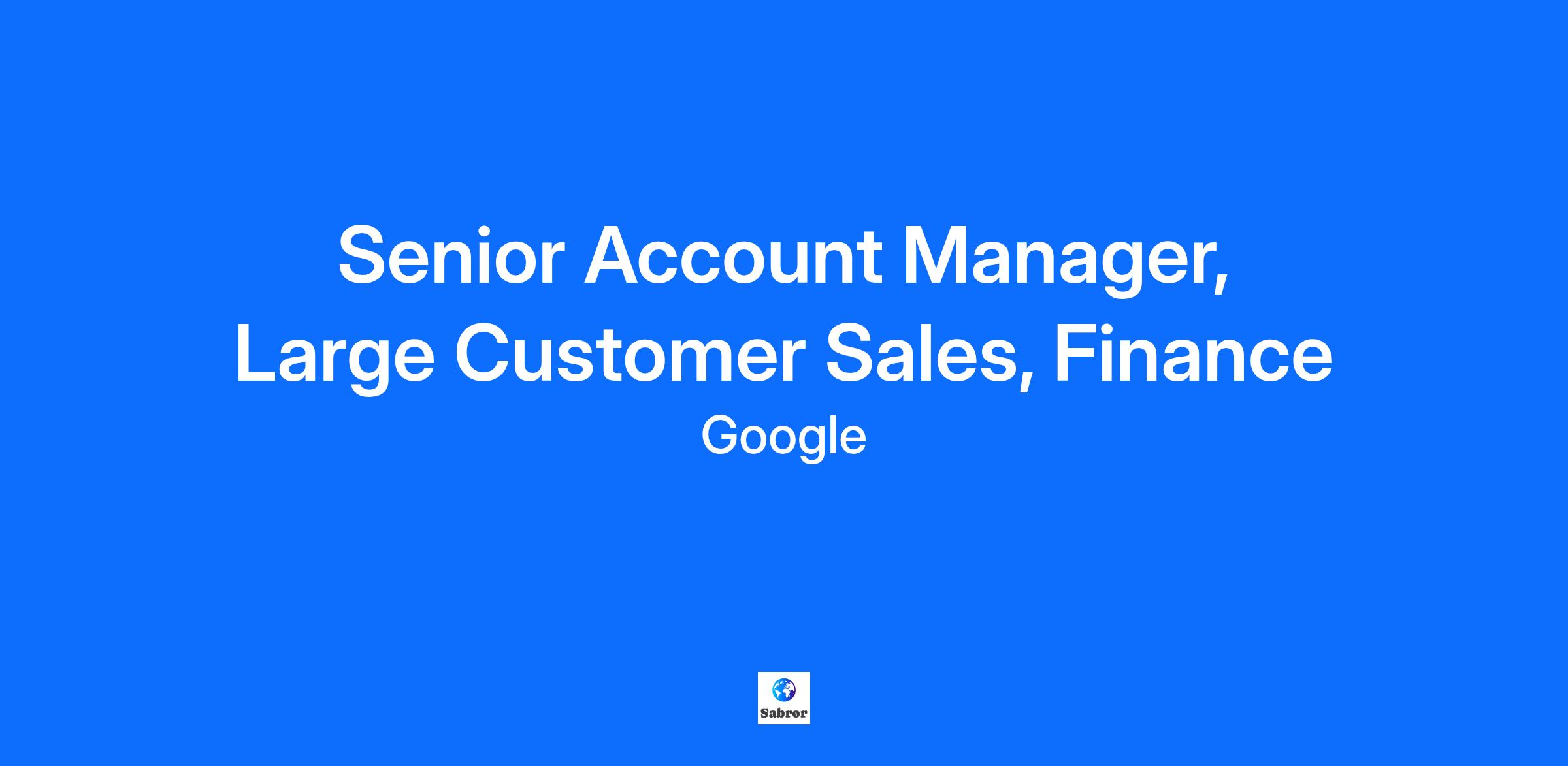 Senior Account Manager, Large Customer Sales, Finance
