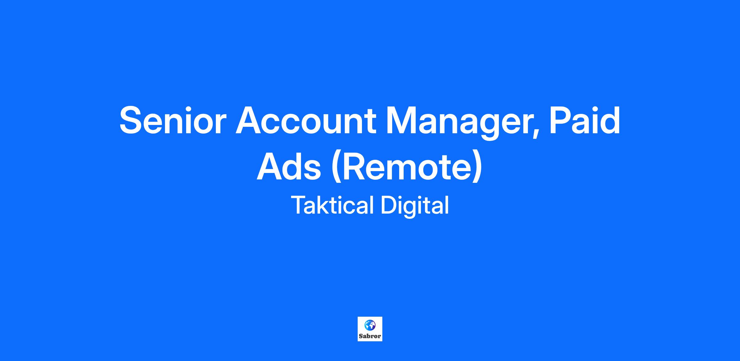 Taktical’s Senior Account Managers play a vital role in our digital marketing efforts. This position is responsible for managing and nurturing client relationships, ensuring the successful execution of paid media campaigns, and driving growth in client portfolios.