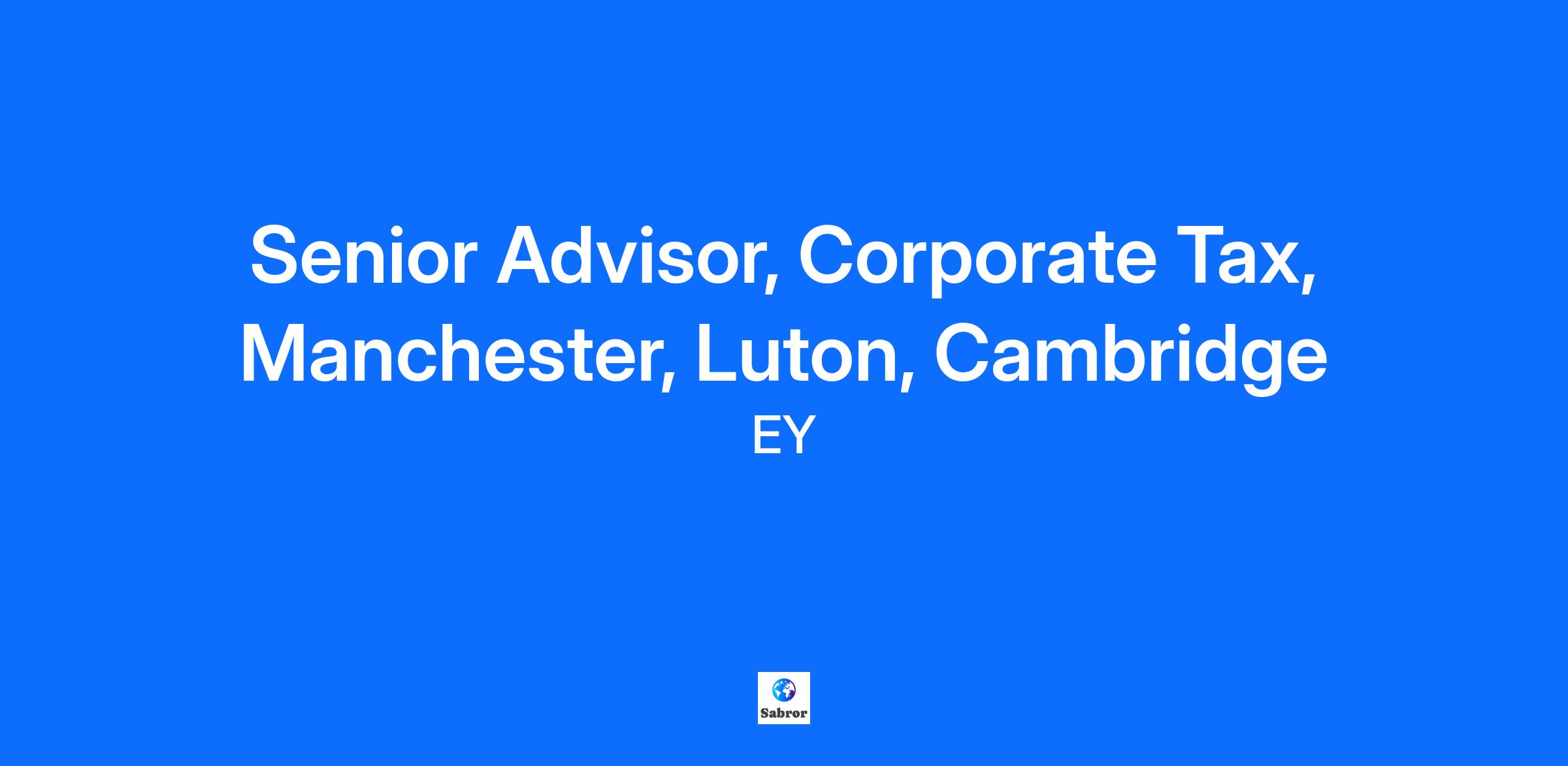Location: Manchester, Luton or Cambridge Our Global Compliance and Reporting professionals help businesses meet complex demands for tax reporting and with the associated tax advisory, strategy and controversy. The Global Compliance and Reporting team continues to experience growth due to strong client demand. By integrating deep technical and industry knowledge with established methodologies and cutting-edge tax technologies they work with a wide range of large and complex multinational companies (predominantly FTSE and significant inbound businesses) to help them develop and implement effective, practical and sustainable tax strategies. The opportunityDue to significant growth following a number of high-profile client wins we are looking for ambitious Corporate Senior Tax Advisors. The role offers the opportunity to work on some of the largest and most exciting clients in the market to help support them as they navigate an ever increasingly complex tax environment. Your key responsibilities• Provide exceptional client service and contribute to the efficient and successful delivery of tax services• Maintain relationships with clients both existing and new• Grow relationships both within the firm and externally with clients• Grow networks and maintain relationships with existing clients• Focus on the successful delivery of tax projects, ensuring technical excellence and practical/business approach taken Skills and attributes for success• Strong technical skills and keen to develop further• Ability to grow strong client relationships• Ability to identify areas of risk• Client focused and commercially aware• Ability to coach and develop more junior members of the team• Up to date knowledge of changes in the tax environment To qualify for the role you must have• ACA/CA/ACCA/CTA; or Tax Inspectors with full Technical Training Course; or Law qualification• Experienced corporate tax practitioner• Experience in tax accounting/tax audit• Proven ability to read and interpret existing and new tax statute What we look for• Outgoing with good relationship skills and the ability to deliver quality output• Excellent communicator in range of situations both written and oral• Change orientated with flexible approach• Team player; ability to integrate with new teams quickly What working at EY offersWe offer a competitive remuneration package where you’ll be rewarded for your individual and team performance. Our comprehensive Total Rewards package includes support for flexible working and career development, and with FlexEY you can select benefits that suit your needs, covering holidays, health and well-being, insurance, savings and a wide range of discounts, offers and promotions. Plus, we offer: • Support and coaching from some of the most engaging colleagues around• Opportunities to develop new skills and progress your career• The freedom and flexibility to handle your role in a way that’s right for you EY is committed to being an inclusive employer and we are happy to consider flexible working arrangements. We strive to achieve the right balance for our people, enabling us to deliver excellent client service whilst allowing you to build your career without sacrificing your personal priorities. While our client-facing professionals can be required to travel regularly, and at times be based at client sites, our flexible working arrangements can help you to achieve a lifestyle balance. About EYAs a global leader in assurance, tax, transaction and advisory services, we’re using the finance products, expertise and systems we’ve developed to build a better working world. That starts with a culture that believes in giving you the training, opportunities and creative freedom to make things better. Whenever you join, however long you stay, the exceptional EY experience lasts a lifetime. Join us and shape your future with confidence! Apply now.