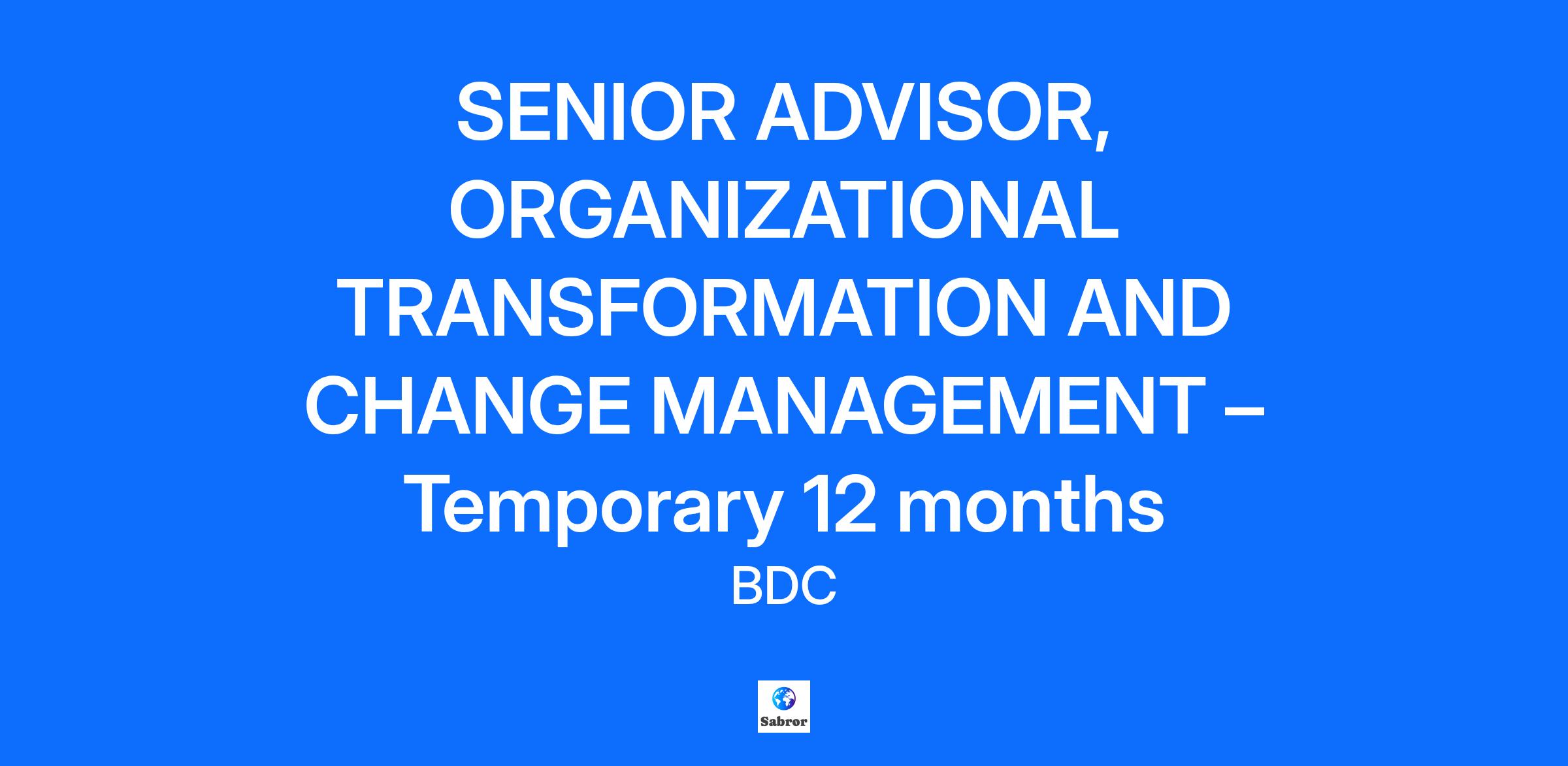 SENIOR ADVISOR, ORGANIZATIONAL TRANSFORMATION AND CHANGE MANAGEMENT – Temporary 12 months