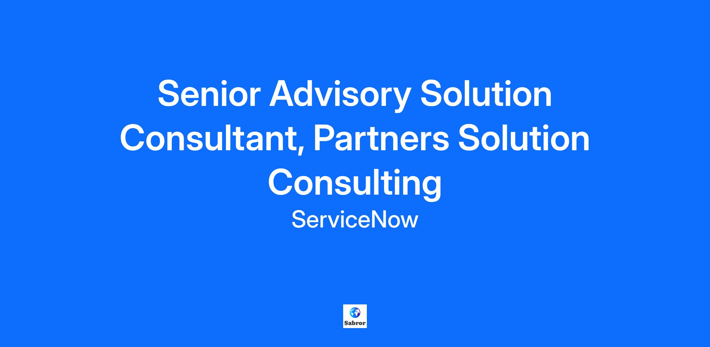 Company DescriptionIt all started in sunny San Diego, California in 2004 when a visionary engineer, Fred Luddy, saw the potential to transform how we work. Fast forward to today — ServiceNow stands as a global market leader, bringing innovative AI-enhanced technology to over 8,100 customers, including 85% of the Fortune 500®. Our intelligent cloud-based platform seamlessly connects people, systems, and processes to empower organizations to find smarter, faster, and better ways to work. But this is just the beginning of our journey. Join us as we pursue our purpose to make the world work better for everyone.Job DescriptionServiceNow is changing the way people work. With a service-orientation toward the activities, tasks and processes that make up day-to-day work life, we help the modern enterprise operate faster and be more scalable than ever before. We make the world of work, work better for people.We’re disruptive. We work hard but try not to take ourselves too seriously. We are highly adaptable and constantly evolving. We are passionate about our product, and we live for our customers. We have high expectations and a career at ServiceNow means challenging yourself to always be better. Role: ServiceNow is seeking a Senior Advisory Solution Consultant to support our Global Partnerships and Channel partners. In this role, you will be expected to provide pre-sales support, technical product and architecture advice, and ongoing communication of the latest ServiceNow solutions and capabilities. You will assist our partners in building practices that deliver exceptional customer outcomes. Additionally, you will be responsible for evangelizing ServiceNow mindshare to our partner community to evolve a “ServiceNow First” approach, to sell effectively to their customers, and to extend the ServiceNow value proposition.What you get to do in this role:Evangelize ServiceNow to partners through Sales Plays and product demosProactively manage relationships with executive and key partner stakeholders to build ServiceNow MindshareAssist Partner Experience team on the execution of roadshows, shark camps, and partner eventsProvide subject matter expertise (SME) during planning, solutioning and EBC briefings. Explain core concepts of the ServiceNow platform and its value propositionIdentify and collaborate on business development opportunities for market-differentiated Offerings/Solutions based on the ServiceNow platform and spearhead intake into the ServiceNow Built-On/Built-With programMentor, guide, and model effective teamwork with ServiceNow and partner solution consultants to develop and apply new knowledge and skills. Collaborate, actively share knowledge, and promote best known methods amongst other ServiceNow Solution Consulting team membersTakes responsibility as primary technical touchpoint with peers when partners are engaged within an account or pursuitProvide feedback, guidance, and advice on the 'Art of Story Telling' to partner solution consultantsCreate long term enduring relationships with partners and the senior leadership within those partners to understand their go to market strategy and attach ServiceNow into their client pursuitsDemonstrates domain and technical expertise across multiple industry verticals knowing when to pull in the proper teams within ServiceNow to assist as neededFor partners with true industry focus and credentials, provides a point of view (or brings in expertise) on where the entire ServiceNow platform is relevant for that industryTravel for Partner, Customer, and Organizational activitiesQualificationsTo be successful in this role you have:Experience in leveraging or critically thinking about how to integrate AI into work processes, decision-making, or problem-solving. This may include using AI-powered tools, automating workflows, analyzing AI-driven insights, or exploring AI's potential impact on the function or industry.12+ years of Pre-Sales Solution Consulting experienceUndergraduate degree in Commerce, Computer Science, Engineering etc.Working knowledge of modern web technologies and cloud computingExperience and understanding of multiple technical domains - application, data, integration, big data, mobility, analytics, etc. Excellent understanding of the architectural principles for cloud-based platforms that include SaaS, PaaS, multi-tenancy, and automationIntrinsically curious and passionate about researching current and emerging technologies and developing innovative solutionsQuick adoption and understanding of industry/vertical business challenges and mapping how ServiceNow can help transform those verticalsStrong facilitation skills, to encourage clear articulation of the business issues and effective solution design by the relevant players Sharp business judgment, ability to see "big picture" and to prioritize Executive presence, strong verbal and written communication Ability to manage change and ambiguity with an action-orientation/drive – must thrive in a dynamic environment Talented at explaining complex topics clearly and concisely, and effective at providing practical guidanceAbility to collaborate and interact at multiple levels (Enterprise Architects, Technical Architects, Offering Managers, Directors, VP’s, and CXO’s)This role requires approximately 25% travel.Experience that will help you stand out:Experience with the ServiceNow product suite or competitive product suites highly desirableA current ServiceNow certification (e.g. Certified System Administrator and/or Certified Implementation Specialist)ServiceNow platform development experienceExperience developing on competitive platformsWhat we would love to see from you before or during an interview:Presentation and demonstration of our ServiceNow StoryAn inspiring portfolio of applications built on platforms such as ServiceNowDemonstration of any accessible projects you have builtAdditional InformationWork PersonasWe approach our distributed world of work with flexibility 