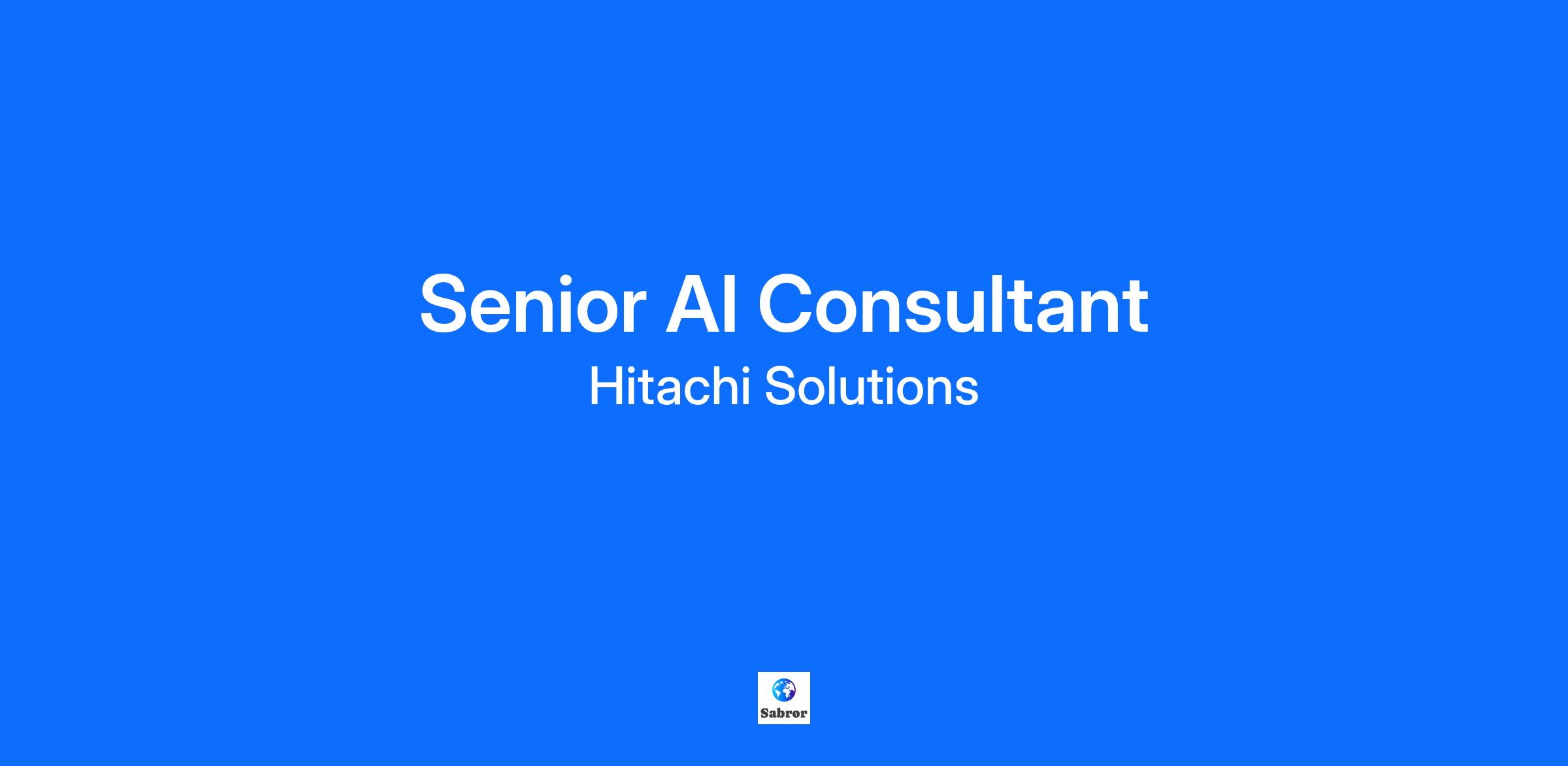 We are growing our consulting team and looking for Senior AI (Artificial Intelligence) Consultants to join us on our exciting journey and be part of the Hitachi Solutions family