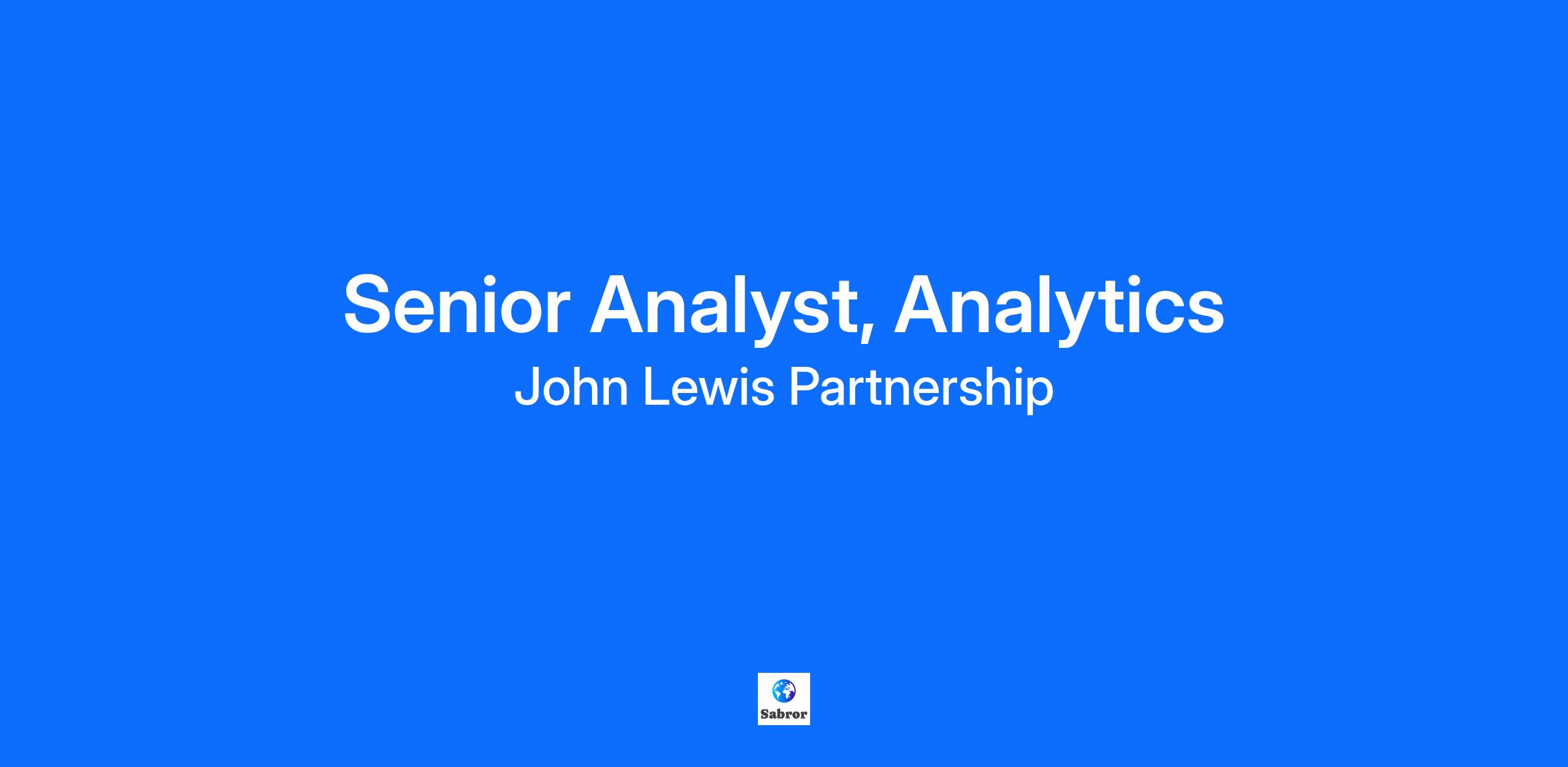 ABOUT THE ROLE The Analytics Team is spread right across the Partnership, using advanced analytics to help stakeholders solve problems and make better decisions. As a Senior Analyst, you will be allocated to a part of the business and work with your line manager to maximise impact and value of your projects. You will achieve that through the application of your technical expertise, appropriate analytical techniques, clear storytelling, recommendations and timely delivery. This is a hands-on role and you could be expected to work on several analytical projects independently and simultaneously. We are looking for Partners who are passionate about solving business problems, with curious and pragmatic mindsets. In addition, we are looking for analysts who not only have good technical knowledge, but who also have the ability to apply those skills in a practical and time sensitive way with great communication. In addition to your contractual pay, any time worked between 22:00 - 06:00 will attract Night Premium at a rate of £5.00 per hour. This will also apply to existing Partners who have enrolled onto Enhanced Hours Premium arrangements. At a glance Working pattern - This is a hybrid working role, therefore your time will primarily be split between working from home and the London Head Office. There will be occasional travel to our other locations Our team currently works from the office on an ad-hoc basis to collaborate and attend key meetings, but again the frequency is dependent on the business needs. Expected Salary - £51,000 - £60,000 (depending on experience) Contract type - Permanent. What you will be doing You will be proactive and be able to create business value and improve business decision making using analytical techniques. You will be responsible for delivering your projects on time and to the necessary standard. Day to day you will: Manipulate, analyse, build models and draw conclusions from large data sets to impact decision making Identify the right analytical approach and methodology to answer business questions Be responsible for your own deliverables e.g. on time, right quality, analytically correct Create clear and impactful output in e.g. visualisation tools or slides Use visualisation tools and automation to increase efficiency Communicate projects and recommendations clearly and concisely to create value Understand your stakeholders’ commercial strategies and goals to identify opportunities to create value Develop good relationships with stakeholders and become an extension of their team Drive a self-serve culture across your stakeholder area Be an active contributor to the Analytics and Data Science team and the Profession Understand and engage other parts of DI&A as necessary Ensure that all work complies with the General Data Protection Regulation (GDPR) and adhere to all Partnership risk management and data privacy and security policies Invest in your personal and professional development utilising the opportunities available to you Demonstrate a flexible approach to working, joining projects as needed and/or supporting colleagues to secure the success of those projects Actively share the responsibilities of ownership and support Partners and colleagues to have a voice in our business. Essential Skills you’ll need Proficiency in SQL, Python & Visualisation Tools for data manipulation and analysis in a commercial environment Relevant qualification in a numerate discipline e.g. math/stats/data science/science or similar Demonstrable experience applying advanced analytics and statistical techniques to drive decision-making applying advanced techniques Experience presenting technical findings to non-technical or senior audiences. Desirable Skills Experience of creating value from analytics Experience of influencing decisions through the use of analytics. #LI-HEADOFFICE #LI-Hybrid #LI-LS1 Closing Date: December 7, 2025 Pay: £51,000.00 - £75,000.00 Annual Contract Type: Permanent Hours of Work: 35 Job Level: Partnership Level 7 Where You'll Be Working: London Central Office, 1 Drummond Gate, London, , SW1V 2QQ ABOUT THE PARTNERSHIP We’re the largest employee owned business in the UK and home of our cherished brands, John Lewis and Waitrose. We’re not just employees, we’re Partners, driven by our purpose to build a happier world. As we look to our future, there’s never been a more exciting time to join us. We’re ruthlessly focused on being brilliant at retail. We continue to innovate, adapt and diversify. Never Knowingly Undersold on price, quality and service in John Lewis and passionately serving food-lovers in Waitrose. As Partners we all share the responsibility of ownership and in its rewards. We use our voices to contribute to our success, working together through the good and challenging times, holding true to our behaviours and treating everyone with kindness and respect. We all own making the Partnership somewhere we belong. Embracing our differences and creating an environment where we’re free to be ourselves and can THRIVE. Growing ourselves individually, and as a collective. As Partners, we make all the difference. And, we all own it. Important points to note: It’s important to note that some of our roles are subject to pre-employment vetting (which may include DBS checks for successful candidates). If required, you’ll be informed and provided with information about vetting during the recruitment process and we encourage you to complete any vetting documents quickly to avoid delays. Any DBS checks required will be carried out by a third-party registered body and financial probity checks may also be required for some of our roles. We also recommend that you apply as soon as possible as vacancies can close early if we see a high number of applicants. We want all of our Partners to have a good work-life balance and we support flexible working. This might mean flexible or compressed hours, job sharing or shorter hour contracts, where possi