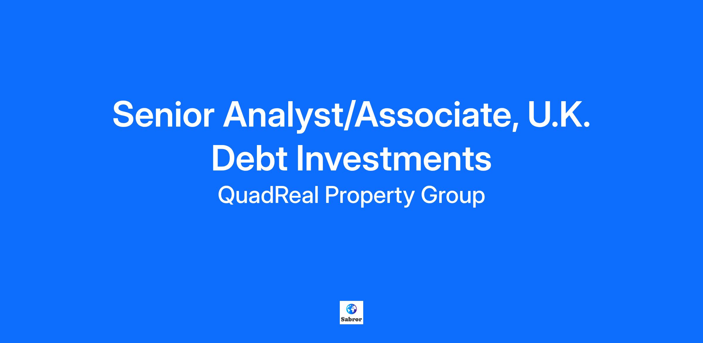 About QuadReal Property Group QuadReal Property Group is a global real estate investment, operating and development company headquartered in Vancouver, British Columbia. Its assets under management are $94 billion. From its foundation in Canada as a full-service real estate operating company, QuadReal has expanded its capabilities to invest in equity and debt in both the public and private markets. QuadReal invests directly, via programmatic partnerships and through operating platforms in which it holds an ownership interest. QuadReal seeks to deliver strong investment returns while creating sustainable environments that bring value to the people and communities it serves. Now and for generations to come. QuadReal: Excellence lives here. www.quadreal.com Role Description Based in London, the Senior Analyst/Associate, U.K. Real Estate Debt Investments will report to the VP and will support all members of the U.K. Real Estate Debt team in London. The Senior Analyst/Associate position is a junior professional role, actively participating and supporting the Real Estate Debt team to execute and manage investment opportunities in U.K and Europe. The Senior Analyst/Associate plays a key role in the analysis and underwriting of new mortgage investment opportunities and monitoring existing portfolio investments. The Senior Analyst/Associate also plays a supporting role in conducting detailed due diligence, negotiations and structuring transactions. Responsibilities Analyze, underwrite, structure, and prepare investment memorandums for new investment opportunities across property types Conduct market research leveraging external databases, discussions with market participants, and internal research tools to support investment opportunities across multiple markets, countries and asset classes Create and maintain detailed cashflow and valuation models for new investment opportunities Interpret financial analysis results and identify key investment merits and risks Conduct thorough due diligence of investment documents, third-party reports, market data, and legal documentation to support new loan origination Assist in the monitoring and management of existing investments including construction draw process Assist in preparing portfolio strategies Monitor and update investment pipeline Works as a real estate team member and provides support, assistance, and back-up to other team members Stay current on functional, organizational, industry, market, political and economic events that impact analyst responsibilities and real estate investments internationally Actively adhere to compliance and risk management policies in addition to participating in business continuity planning Experience & Qualifications Education – Undergraduate university degree in Real Estate, Finance, Economics, Mathematics/Statistics, Business or a related field. Experience – 2-6 years of industry experience underwriting commercial real estate mortgages, in an institutional environment, with a solid understanding of the real estate industry. Analytical – Strong quantitative and analytical skills with the ability to construct complex financial models; detail-oriented and proficient in handling and analyzing complicated data sets; be resourceful in seeking and consolidating information from a variety of sources. Able to grasp complex issues and the bigger picture and problem solve. Communication – Excellent communication and presentation skills; demonstrate an ability to produce concise and effective communication materials and tactfully present results that articulate key themes and messages to all levels in the organization. Organization – Must be able to take initiative and take ownership of projects to produce high quality work product with minimal supervision; ability to thrive in a fast-paced, fluid and dynamic work environment dedicated to excellence; ability to prioritize multiple demands, plan and allocate time effectively, work under pressure, and meet tight deadlines; flexible and adaptive to new ideas and constant changes; ability to produce accurate and reliable work product while also grasping the bigger picture; possess intellectual curiosity and a strong desire to learn and develop. Software – Must have advanced knowledge of Excel, PowerPoint and Word; knowledge of Argus Enterprise a plus. Relationship – Must be extremely proactive with the ability to develop and sustain collaborative and effective working relationships with all personalities; ability to exercise discretion and strict confidentiality; ability to identify, anticipate and address stakeholders’ needs. Values – Embrace and pro-actively support QuadReal’s values and its culture of environmental sustainability and corporate and social responsibility. #LI-CD1 Note to Recruiters: QuadReal does not accept unsolicited resumes from any source other than directly from a candidate. Any unsolicited resumes sent to QuadReal, directly or indirectly, will be considered QuadReal property. QuadReal will not pay a fee for any placement resulting from the receipt of an unsolicited resume. A recruiting agency must first have a valid, written and fully executed agency agreement contract for engaged services to submit resumes. QuadReal will provide reasonable accommodation at any time throughout the hiring process for applicants with disabilities or for those needing job postings in an alternate format. If you require accommodation, please advise the Talent Acquisition team member you are working with and include the following: Job posting #, your name and your preferred method of contact. At QuadReal, we create spaces that enhance the lives of the people and communities we serve. Headquartered in Vancouver, Canada, our vision is to be a leading global real estate partner—driving meaningful impact while delivering prudent growth and strong returns. With a global presence across Canada, the U.S., Asia, and the UK, our success is built on our values—inte