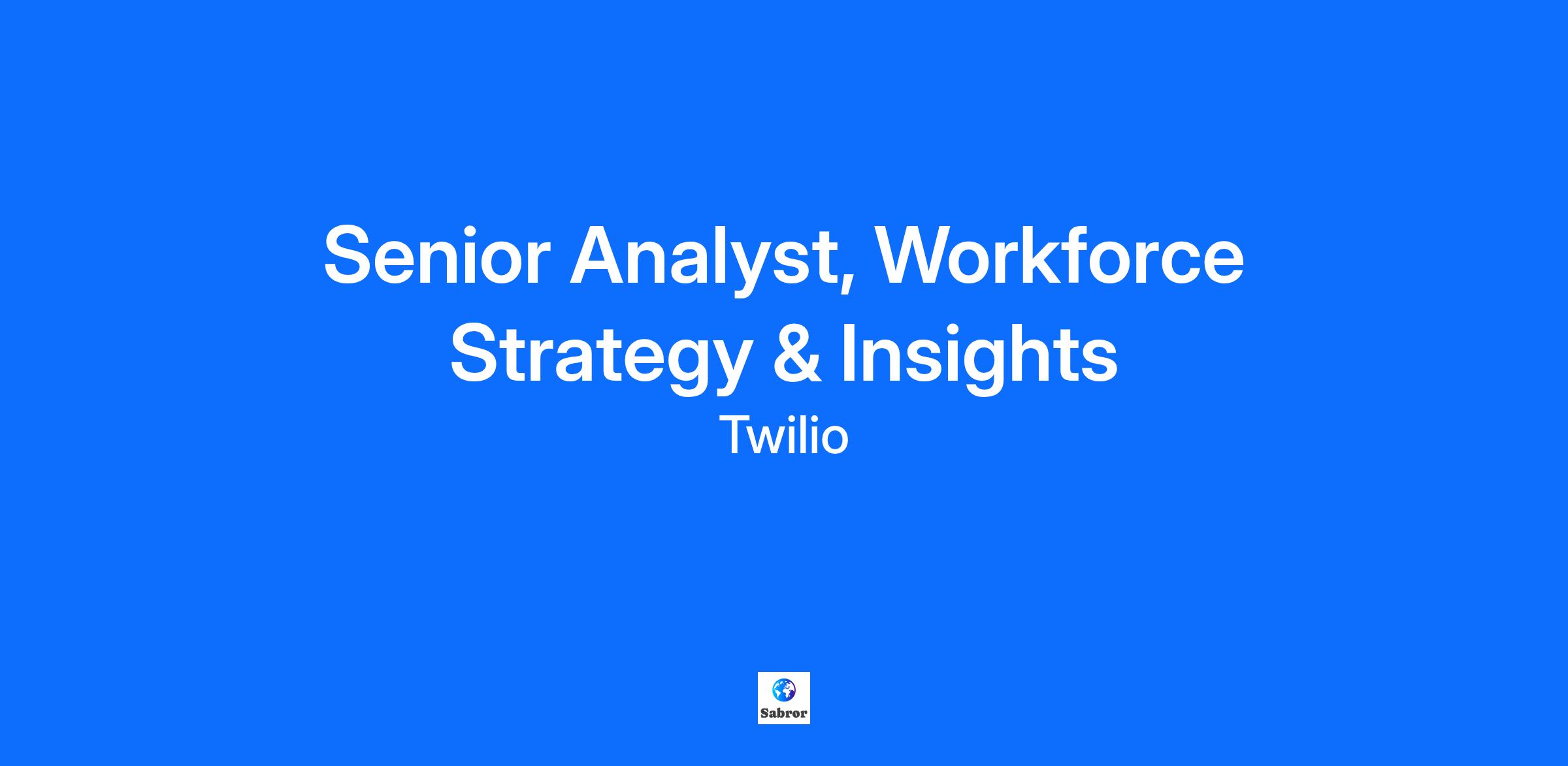 Who we are At Twilio, we’re shaping the future of communications, all from the comfort of our homes. We deliver innovative solutions to hundreds of thousands of businesses [https://customers.twilio.com/]and empower millions of developers worldwide to craft personalized customer experiences. Our dedication to remote-first work [https://www.twilio.com/en-us/blog/open-work], and strong culture of connection and global inclusion means that no matter your location, you’re part of a vibrant team with diverse experiences making a global impact each day. As we continue to revolutionize how the world interacts, we’re acquiring new skills and experiences that make work feel truly rewarding. Your career at Twilio is in your hands. See Yourself at Twilio Join the team as Twilio’s next Senior Analyst, Workforce Strategy & Insights About the Job We are seeking a Senior Analyst, Workforce Strategy & Insights to play a pivotal role in shaping our global workforce strategy. In this advanced, hands-on analytics position, you will apply expertise in advanced data analysis and research methodologies to deliver actionable people insights, drive workforce planning, and support AI & skills transformation initiatives. As a critical thought partner to stakeholders across the People Team, G&A, and direct to business leaders, you will help design cutting-edge strategies that directly shape the future of work and set the foundation for org effectiveness and agility in the age of AI and digital transformation. This role offers a unique opportunity to work at the forefront of workforce innovation and make a direct impact on our business and its people. Responsibilities This role sits at the intersection of data, strategy, and people. You will: * Drive advanced, research-driven analytics and scenario modeling to generate actionable insights, inform workforce strategies, and guide decisions on talent allocation, skills investments, and future workforce targets. * Design and implement robust assessments, measurement frameworks, and forecasting analyses to support AI & skills-based workforce transformation agendas. * Collaborate closely with partners across the People Team (Data Solutions & AI, HRBP, Talent Acquisition, Talent Management, Total Rewards, etc), Finance, Operations, and Business leaders on strategic projects, serving as a thought partner to influence and advance workforce strategy initiatives. * Conduct exploratory analytics and synthesize complex, ambiguous data sources into clear, compelling recommendations and data visualizations for both technical and non-technical audiences. * Monitor and integrate external workforce trends, emerging research methodologies, and new technologies to continuously enhance workforce strategy approaches. * Partner closely with the People Data Solutions & AI team to develop and scale internal tools and solutions—including AI-powered assistants and data orchestration frameworks—to optimize workforce insights, streamline analytics processes, and enhance integration across multiple systems and platforms. Qualifications Twilio values diverse experiences from all kinds of industries, and we encourage everyone who meets the required qualifications to apply. If your career is just starting or hasn't followed a traditional path, don't let that stop you from considering Twilio. We are always looking for people who will bring something new to the table! Required: * 7+ years of progressive experience in research analytics, workforce strategy, people analytics, talent intelligence or related roles. * Demonstrated experience with complex data analysis, statistical modeling, and exploratory research methodologies. * Proficient in advanced analytics tools (e.g., R, Python, SQL, Tableau, Power BI) * Proven expertise in designing and leading advanced analytics projects in ambiguous, abstract, or rapidly evolving environments. * Experience partnering with cross-functional teams across People, Finance, and the Business. * Exceptional communication and storytelling skills, with a track record of delivering insights that drive meaningful strategy and organizational change. Desired: * Advanced degree (Master’s or PhD preferred) in Industrial/Organizational Psychology, Statistics, Economics, Data Science, Research Psychology, or related quantitative field. * Prior consulting or advisory experience with C-suite or executive leadership on workforce strategy. * Deep knowledge of workforce planning, skills transformation, and the intersection with AI and emering technologiegs * Experience in large-scale organizational transformation, future of work projects, or skills frameworks. * Prior involvement in large-scale organizational or digital transformation initiatives, especially those related to AI or workforce automation. * Expertise in integrating HR and non-HR data sources for comprehensive workforce insights. * Experience in skills taxonomy development, skills inference, or AI-enabled skills mapping platforms (e.g., Eightfold, Gloat, Degreed). Location This role will be remote, and based in Ontario, BC, or Alberta Canada. Travel We prioritize connection and opportunities to build relationships with our customers and each other. For this role, you may be required to travel occasionally to participate in project or team in-person meetings. What We Offer Working at Twilio offers many benefits, including competitive pay, generous time off, ample parental and wellness leave, healthcare, a retirement savings program, and much more. Offerings vary by location. The estimated pay ranges for this role are as follows: * Based in British Columbia. : $142,800.00 - $178,500.00 The successful candidate’s starting salary will be determined based on permissible, non-discriminatory factors such as skills, experience, and geographic location. Twilio thinks big. Do you? We like to solve problems, take initiative, pitch in when needed, and are always up for trying new things. That's why we seek out colle