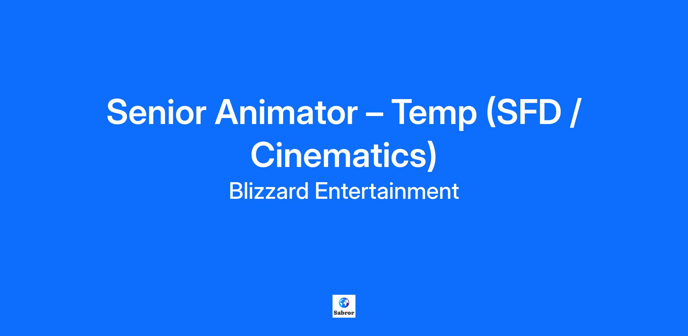 Job Title: Senior Animator – Temp (SFD / Cinematics) Requisition ID: R025207 Job Description: Blizzard Entertainment is looking for a dedicated 3D animator to assist our Cinematics team in crafting the next generation of Epic animated films. What You Bring to the Table Priorities can often change in a fast-paced environment like ours, so this role includes, but is not limited to, the following responsibilities: The cinematic animator will be skilled at animating characters at a level that lives up to the ever-increasing Blizzard Entertainment standard of quality. The ideal candidate has a passion for animation and film making, with experience animating a diverse array of characters and creatures in different styles, from cartoony to realistic and anywhere in-between. A solid grasp of body mechanics and character acting with a mastery of the 12 principles of animation are critical. You must enjoy working on a highly collaborative team of peers as passionate about making phenomenal movies and games as we are. Blizzard Entertainment offers a fun, creative, and technically challenging environment with excellent compensation. This role is anticipated to be a hybrid work position, with some work on-site and some work-from-home. The potential home studio for this role is Irvine, CA. However, we understand each person’s circumstances may be unique and will work with you to explore other possible options, including remote work arrangements. This is roughly a 5-month temporary position. Minimum Requirements Experience 6+ years' experience in game development, television, or film industry using Maya or equivalent 3D program Experience working with Directors, Animation Supervisors and Leads developing, defining, and maintaining high-end cinematic animations Knowledge & Skills A demo reel demonstrating high quality hand-keyed animations through solid body mechanics and engaging performances A solid grasp of body mechanics and character acting with a mastery of the 12 principles of animation are essential Key Attributes Passion for film, animation, and video games Self-motivation, good communication skills, and a great team-player attitude Assist in supporting and evolving the Cinematics team with constructive feedback both technically and artistically Extra Points Artistic skills: storyboarding, gesture drawing, 2D animation, composition Technical skills: rigging, scripting, and understanding of pipeline Physical skills: acting, martial arts, and choreography Film making skills: cinematography, pre-visualization, editing, and story writing Understanding of FX, particles, cloth, and hair as they contribute to a character’s performance and other facets of both 2D and 3D animation is essential Your Platform Best known for iconic video game universes including Warcraft®, Overwatch®, Diablo®, and StarCraft®, Blizzard Entertainment, Inc. (www.blizzard.com), a division of Activision Blizzard, which was acquired by Microsoft (NASDAQ: MSFT), is a premier developer and publisher of entertainment experiences. Blizzard Entertainment has created some of the industry’s most critically acclaimed and genre-defining games over the last 30 years, with a track record that includes multiple Game of the Year awards. Blizzard Entertainment engages tens of millions of players around the world with titles available on PC via Battle.net®, Xbox, PlayStation, Nintendo Switch, iOS, and Android. Our World Activision Blizzard, Inc., is one of the world's largest and most successful interactive entertainment companies and is at the intersection of media, technology and entertainment. We are home to some of the most beloved entertainment franchises including Call of Duty®, World of Warcraft®, Overwatch®, Diablo®, Candy Crush™ and Bubble Witch™. Our combined entertainment network delights hundreds of millions of monthly active users in 196 countries, making us the largest gaming network on the planet! Our ability to build immersive and innovate worlds is only enhanced by diverse teams working in an inclusive environment. We aspire to have a culture where everyone can thrive in order to connect and engage the world through epic entertainment. We provide a suite of benefits that promote physical, emotional and financial well-being for ‘Every World’ - we’ve got our employees covered! The videogame industry and therefore our business is fast-paced and will continue to evolve. As such, the duties and responsibilities of this role may be changed as directed by the Company at any time to promote and support our business and relationships with industry partners. We love hearing from anyone who is enthusiastic about changing the games industry. Not sure you meet all qualifications? Let us decide! Research shows that women and members of other under-represented groups tend to not apply to jobs when they think they may not meet every qualification, when, in fact, they often do! We are committed to creating a diverse and inclusive environment and strongly encourage you to apply. We are committed to working with and providing reasonable assistance to individuals with physical and mental disabilities. If you are a disabled individual requiring an accommodation to apply for an open position, please email your request to accommodationrequests@activisionblizzard.com. General employment questions cannot be accepted or processed here. Thank you for your interest. We are an equal opportunity employer and value diversity at our company. We do not discriminate on the basis of race, religion, color, national origin, gender, sexual orientation, gender identity, age, marital status, veteran status, or disability status, among other characteristics. Rewards We provide a suite of benefits that promote physical, emotional and financial well-being for 'Every World' - we've got our employees covered! Subject to eligibility requirements, the Company offers comprehensive benefits including: Extended health plan, including medical, dental