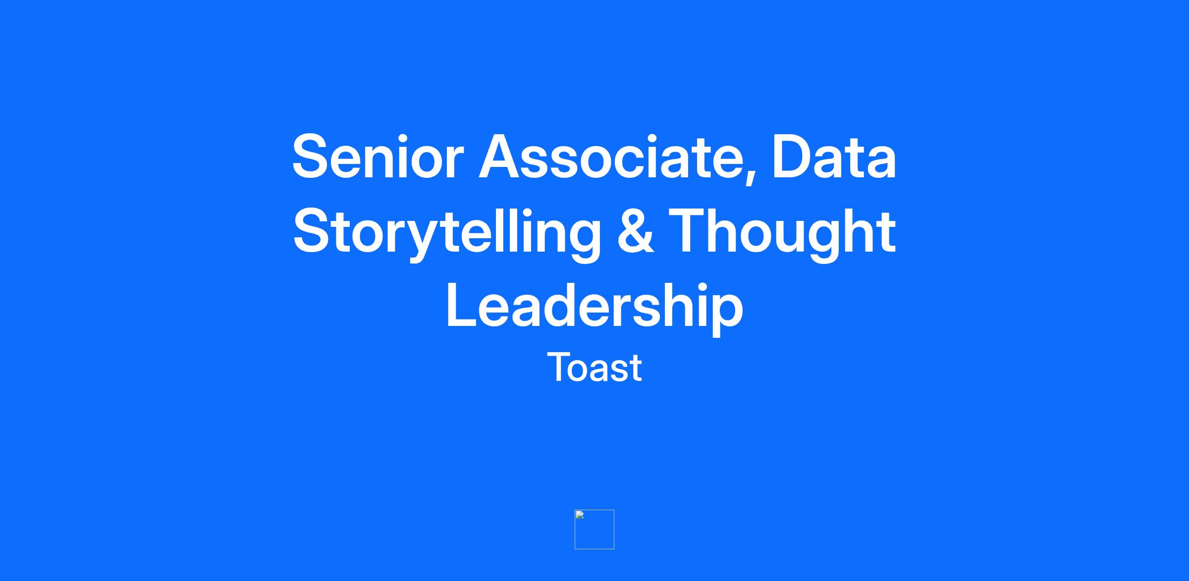 Toast is driven by building the restaurant platform that helps restaurants adapt, take control, and get back to what they do best: building the businesses they love. We are working on behalf of the restaurant and food and beverage retail communities, empowering in-person businesses to succeed in a digital world. Our purposeful innovation is rooted in the belief that the future of hospitality is human-first, and our technology is built to create a world where hospitality is always good business. We're looking for a communications leader who shares our passion for the humanity of hospitality and the tech that makes it possible. The Communications team is responsible for protecting and elevating Toast’s reputation, shaping market perception, and articulating our mission and vision through external and internal channels. This role sits within the Communications function in Marketing, supporting our Brand Journalism and Thought Leadership initiatives, which are key drivers of our brand narrative and market leadership. The Communications Associate, Brand Journalism is a critical new role focused on leveraging Toast's proprietary data to generate compelling, evidence-based narratives for the media and our content channels. You will be instrumental in transforming complex data into accessible, impactful stories that position Toast as the authoritative voice on the future of the restaurant and food and beverage industries. About this roll* (Responsibilities) Data story mining architecture: Work closely with the Brand Journalism Lead to ideate, architect, and execute data-driven narratives for major reports, press releases, blogs, and multimedia content. Content support: Support the creation and editing of various thought leadership assets (blog posts, executive bylines, reports, articles) to ensure data accuracy and strategic alignment. Media relations: Assist in preparing data-focused media pitches, compiling executive briefing materials, and supporting reactive media inquiries related to industry trends and data releases. Analytics and reporting: Own the communication team’s reporting cadence for data storytelling, thought leadership, and quarterly reporting, proactively analyzing performance metrics to derive insights and inform future content strategy. General communications: Support general team operations, agenda setting and note taking/meeting reporting, special projects, and other communications responsibilities as needed, maintaining efficiency and capacity across the function. Do you have the right ingredients*? (Requirements) 4+ years of experience in public relations, communications, journalism, market research, or a related field. A strong, foundational understanding of data, analytics, and basic statistical concepts, with a passion for uncovering stories hidden within numbers. Exceptional writing, editing, and storytelling skills, with a proven ability to distill complex information into clear, compelling narratives for a broad audience and adapt tone for different channels (press releases, pitches, social media). Excellent organizational skills, attention to detail, and proven ability to manage multiple projects and deadlines simultaneously. Experience or strong interest in media relations, including basic pitching and familiarity with media monitoring tools. Proficiency in presentation tools (e.g., Google Slides, PowerPoint) and a willingness to learn new analytical and reporting platforms. Demonstrated ability to create and curate high-impact media, with a strong editorial eye for compelling images and infographics that enhance storytelling. Intellectual curiosity, a proactive, "bias for action" mindset, and a deep interest in the restaurant industry. Excellent interpersonal and collaboration skills, essential for working across internal teams (e.g., Content, Finance, Product Marketing, Insights, Legal, Investor Relations) and external partners. Foundational understanding of AI principles and demonstrates proficiency and comfort in leveraging LLM platforms for content creation and analysis. Bonus points: If you have restaurant or hospitality experience. Whether you were a bartender in college or on a mission to try every pizzeria in your city, you follow food media and have a vested interest in the hospitality industry as well as a general understanding of how it works from front to back of house. AI at Toast At Toast, one of our company values is that we're hungry to build and learn. We believe learning new AI tools empowers us to build for our customers faster, more independently, and with higher quality. We provide these tools across all disciplines, from Engineering and Product to Sales and Support, and are inspired by how our Toasters are already driving real value with them. The people who thrive here are those who embrace changes that let us build more for our customers; it’s a core part of our culture. Our Total Rewards Philosophy We strive to provide competitive compensation and benefits programs that help to attract, retain, and motivate the best and brightest people in our industry. Our total rewards package goes beyond great earnings potential and provides the means to a healthy lifestyle with the flexibility to meet Toasters’ changing needs. Learn more about our benefits at https://careers.toasttab.com/toast-benefits. The base salary range for this role is listed below. The starting salary will be determined based on skills and experience. In addition to base salary, our total rewards components include cash compensation (overtime, bonus/commissions, if eligible), benefits, and equity (if eligible). Pay Range $79,000—$126,000 USD Diversity, Equity, and Inclusion is Baked into our Recipe for Success At Toast, our employees are our secret ingredient—when they thrive, we thrive. The restaurant industry is one of the most diverse, and we embrace that diversity with authenticity, inclusivity, respect, and humility. By embedding these principles into our cultur