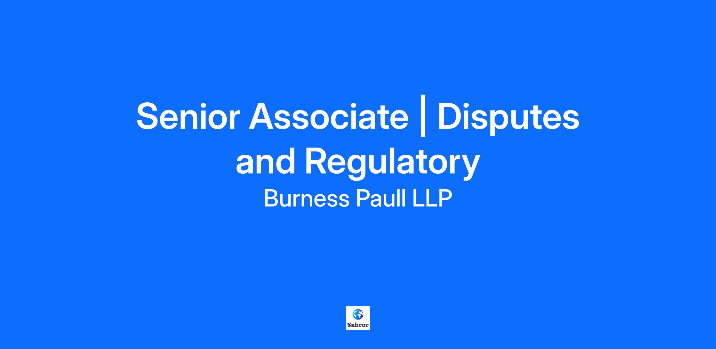 Senior Associate | Disputes and Regulatory Closing Date: 05 December 2025 At the heart of Burness Paull is our independence. It’s this that gives us the licence to shape our business and culture in the sustainable way we want to, supporting the needs of our people, our clients, our wider community and the environment. It means freedom to pursue a philosophy of always being human in attitude and high-performing in approach. For our people that means recognising everyone is different and valuing those differences. A culture that celebrates openness and where genuine advice and relationships are championed. An environment that encourages everyone to aim for success by being the best version of themselves. And because we value the contribution that every one of our team makes, we make sure everyone is rewarded over and above the usual benefits you'd expect from a leading law firm. That means bonus schemes for all employees, family friendly policies that are stand out in the market, and a range of health & wellbeing initiatives that take a holistic approach to supporting colleagues. We set the bar high. Our clients and people love that.