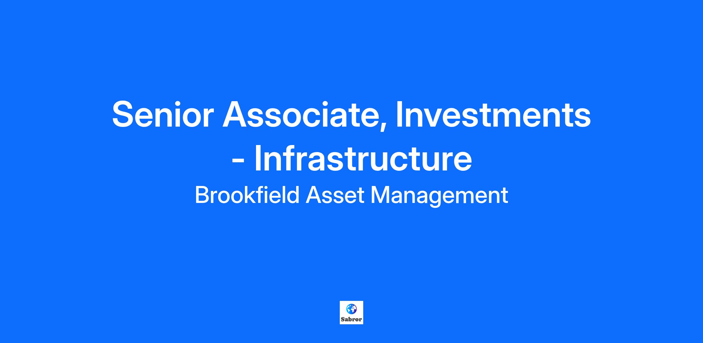 Location Brookfield Place - 181 Bay Street Business - Infrastructure Brookfield Infrastructure Group is one of Brookfield’s primary operating groups. The Infrastructure Group is one of the world’s largest infrastructure investors, owning and operating critical assets across the transport, utilities, energy, and data infrastructure sectors. The Group operates and manages approximately $191 billion of assets owned through its private funds and publicly listed entity, Brookfield Infrastructure Partners. Our portfolio of assets facilitate the movement and storage of energy, water, freight, passengers and data, and are located in North and South America, Europe and the Asia Pacific regions. For more information, visit: https://www.brookfield.com/our-businesses/infrastructure Brookfield Culture Brookfield has a unique and dynamic culture. We seek team members who have a long-term focus and whose values align with our Attributes of a Brookfield Leader: Entrepreneurial, Collaborative and Disciplined. Brookfield is committed to the development of our people through challenging work assignments and exposure to diverse businesses. Job Description Job Description – Senior Associate, Investments (Toronto): BIG’s investment teams are organized by geography and are responsible for sourcing and executing new investments as well as capital allocation decisions within existing sectors, in addition to considering new sectors. BIG is recruiting for a Senior Associate, Investments in our Toronto office. The role represents an exciting opportunity to join a growing and dynamic team with a long history of executing successful investments in a variety of industries and geographies with deep financial and operational turnaround roots. The opportunity would be career-track. The Senior Associate, Investments position represents an opportunity to play a key role in a growing deal team with a focus on sourcing, analyzing and executing our investments. The responsibilities for this position would include the following: Sourcing and screening for new investment opportunities; Assessing potential investments through financial modeling and company/industry research; Performing due diligence including comprehensive valuation analyses; Preparing investment committee materials and other transaction documents; Monitoring and assisting in the management of existing portfolio companies; Contributing to a flexible, dynamic, and team-oriented working culture that fosters personal development and a positive work environment; and, Special projects as required. Qualifications & Requirements: Demonstrated track record of excellence in academic, professional, and personal contexts; A professional, positive attitude; Capable of contributing to a dynamic and team-oriented culture; 3-5 years of experience in principal investing, investment banking, restructuring, audit, transaction services, or other relevant areas; High level of proficiency in Excel and outstanding financial modeling skills; and, Experience in conducting due diligence and/or raising financing is an asset. Brookfield is committed to maintaining a Positive Work Environment that is safe and respectful; our shared success depends on it. Accordingly, we do not tolerate workplace discrimination, violence or harassment. Brookfield is committed to creating an accessible and inclusive organization. We are committed to providing barrier-free and accessible employment practices in compliance with the Accessibility for Ontarians with Disabilities Act. Should you require a Human Rights Code-protected accommodation through any stage of the recruitment process, please make them known when contacted and we will work with you to meet your needs. Brookfield Asset Management is a leading global alternative asset manager with over US$1 trillion of assets under management across real estate, infrastructure, renewable power and transition, private equity and credit. Brookfield owns and operates long-life assets and businesses, many of which form the backbone of the global economy. Utilizing its global reach, access to large-scale capital and operational expertise, Brookfield offers a range of alternative investment products to investors around the world—including public and private pension plans, endowments and foundations, sovereign wealth funds, financial institutions, insurance companies and private wealth investors. Brookfield Asset Management Ltd. (BAM) is a public company listed on the New York (NYSE: BAM) and Toronto (TSX: BAM) stock exchanges. Brookfield Corporation is a public company listed on the New York (NYSE: BN) and Toronto (TSX: BN) stock exchanges.
