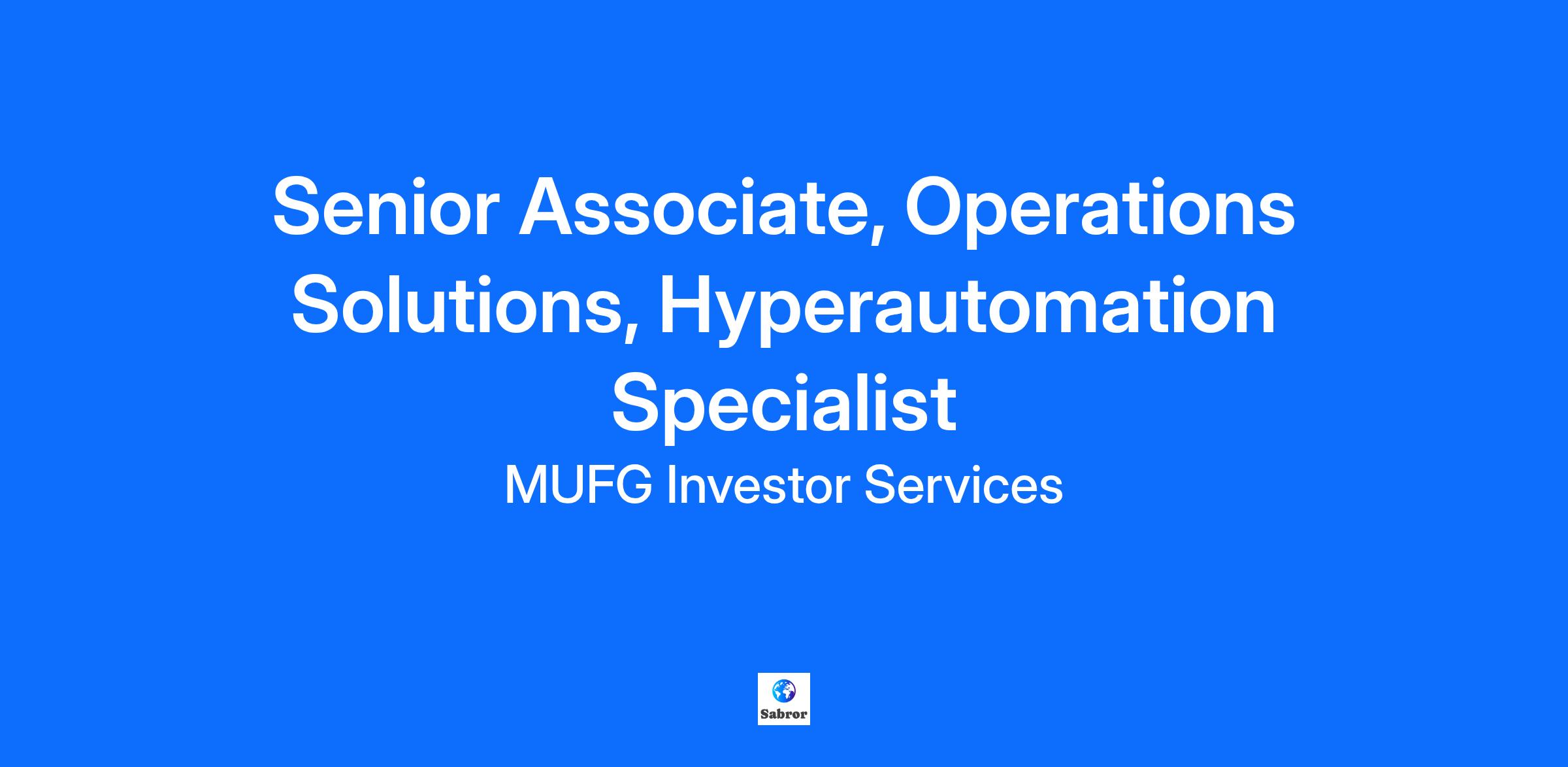 Company DescriptionAbout MUFG Investor Services:MUFG Investor Services is a trusted partner to many of the world’s largest public and private funds, providing asset servicing and operational solutions built for alternatives. With over $1 trillion in client assets under administration, we offer fund administration, banking, payments, fund financing, foreign exchange overlay, corporate and regulatory services, custody, business consulting, and more. Operating from 17 locations worldwide, we help clients mitigate risk, enhance efficiency, and navigate the operational complexities of today’s investment management landscape. As a division of Mitsubishi UFJ Financial Group (MUFG), one of the world’s largest financial institutions with approximately $3 trillion in assets, we combine deep expertise with the strength and stability of a leading financial institution. To learn more, visit us at www.mufg-investorservices.com.LI-HybridJob DescriptionWe are looking for someone who wants to invest in their long-term career and learn more about low code no code technologies and how they can be applied to business processes to facilitate automation . You should love challenges and working across different tools and technologies, with the ability to learn through independent research, assisted by mentors, buddies, and experts. You should prefer simple, sustainable solutions over complex ones, get excited about sharing your knowledge and derive satisfaction helping and enabling others.Here are some of the skills and experience that will help you in this role.Designing and developing automated business solutionsIntegrating Open Source and vendor software to deliver automated solutionsStrong Commitment to on-going learning and self-improvementExposure/Certifications in Microsoft Power Platform or equivalent an advantagePrior experience in writing requirements beneficialPrior experience working in an agile IT environment an advanBusiness process improvement and mapping skills (e.g. in MS Visio, DrawIO ) is highly beneficialFamiliarity with ADO, JIRA or other task planning applications a plus. Role ResponsibilitiesResponsible for understanding and analyzing the business issue and translating the issue into requirements and user storiesMap the as-is process and to be process, explore, identify, and test new innovative solutions for process re-engineering/digitisation/automationWork with the team to design a solution, develop and implement various process improvement tools and techniques including Workflow, Robotic Process Automation (RPA), Optical Character Recognition (OCR), Natural Language Processing (NLP), Machine Learning (ML), Process Mining and Analytics Dashboard to meet end-to-end business requirementsResponsible for design and developing solutions through an iterative process to meet business needsEnsure the completeness, effectiveness, and sustainability for the implementation of proposed appropriate solutionCreate and document test procedures and scenarios for user acceptance testWorking with a dynamic team to refine and expand the automation based upon user feedbackSupport the team in the adoption and implementation of the solutionsYou will be using some of the following automation tools and skills in due course and you will get the chance to learn about the tools you do not know but familiarity with any of them would be an advantage.Automation solutions such as:Reporting: advanced Excel/ MS Power BIWorkflows: Cloud deployed SharePoint with Nintex plug in, PowerAutomateChat Bot: Azure Virtual AgentRPA: PowerAutomate Desktop, Automation Anywhere, Power Automate or others)Data access: Postgres SQL, SQL Server, Oracle, ExcelNLP/ OCR technology solutionsBasic SQL skillsSome scripting skillsBasic python skillsQualificationsMinimum 3rd level IT qualification or equivalent on line certification from Microsoft etcMinimum 3 years fund accounting experienceExposure to Business Analysis a plusExposure to/knowledge of working in agile environments would be a plusPrior experience working in IT or as a business analyst preferred Additional InformationWhat’s in it for you to join MUFG Investor Services? Take a look at our careers site and you’ll find everything you’d expect working with one of the fastest-growing businesses at one of the world’s largest financial groups. Now take another look. Because it’s how we defy expectations that really defines us. You’ll feel that difference in all kinds of ways. Our vibrant CULTURE. Connected team. Love of innovation, laser client focus. So, why settle for the ordinary? Apply now for your next Brilliantly Different opportunity. We thank all candidates for applying; however, only those proceeding to the interview stage will be contacted.MUFG is an equal opportunity employer.