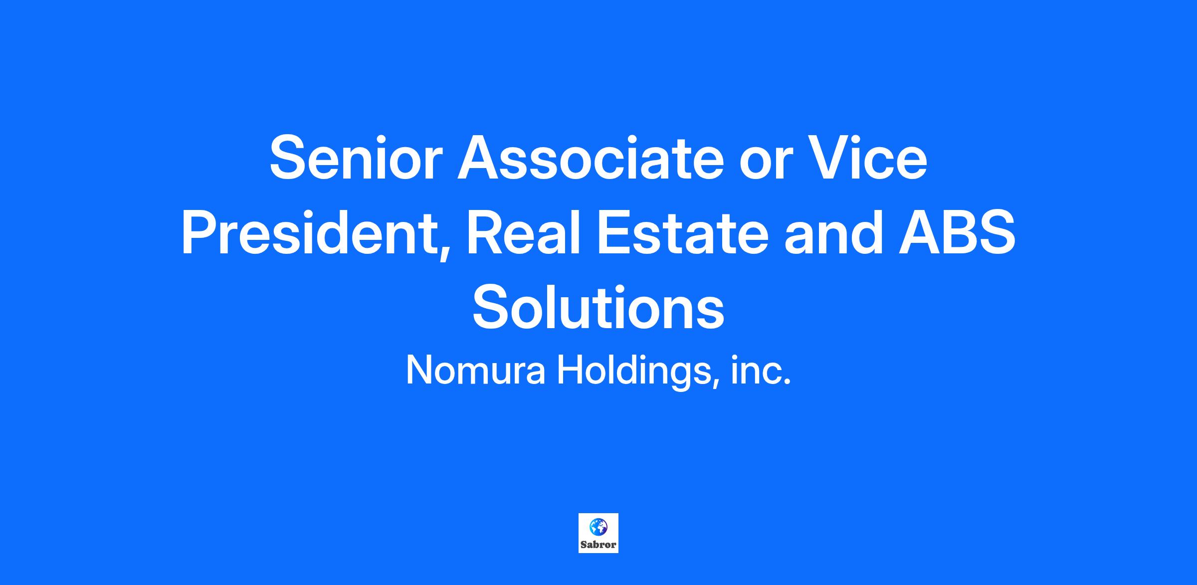 Company overview Nomura is a global financial services group with an integrated network spanning approximately 30 countries and regions. By connecting markets East & West, Nomura services the needs of individuals, institutions, corporates and governments through its three business divisions: Wealth Management, Investment Management, and Wholesale (Global Markets and Investment Banking). Founded in 1925, the firm is built on a tradition of disciplined entrepreneurship, serving clients with creative solutions and considered thought leadership. For further information about Nomura, visit www.nomura.com Job Title: Real Estate Financing and ABS Solutions Corporate Title: Senior Associate or Vice President Department: Global Markets Division Location: London, UK Department Overview Nomura's Global Markets Division handles client transactions for financial institutions, corporates, governments and investment funds around the world. We act as market makers, trading in fixed income and equity securities, including currencies, interest rates and credit in cash, derivatives and structured products. We have taken market-leading positions across the globe by leveraging the strength of our talent, client relationships and technology. By developing strong relationships with our client base through consistent interaction, independent advice and pre-eminent access to Asia, we have built a powerful global franchise across interest rates, currency and credit products. Our client services cover both high-volume flow products and carefully tailored structured solutions. We have adapted to the changing financial landscape to build a client centric focus differentiated by innovation, electronic and service excellence and market-leading derivatives capabilities. Desk Overview: The desk’s mandate broadly spans across jurisdictions, asset classes, formats and attach-detach points to provide a holistic financing proposition across the European Real Estate space, with a focus on value-add, concentrated RE risk. The desk’s remit and expertise allows it to position its risk taking and activities where it identifies the highest relative value propositions with a focus on identifying market opportunities which require creative solutions that do not necessarily fall within the standard boxes serviced by more industrialised competitors. Since its establishment, the desk has financed Real Estate across Europe in many forms, from leveraging acquisitions of secured NPL portfolios to financing liquidation plays, value-add transactions (e.g. refurbs, leasing plays, SLBs, operational turnaround, etc), CRE development, all the way to special situations and shorter secured bridges. The desk is also active in warehouse financings of RE-backed loans, typically across the bridging and development platform lending space. The financing solutions offered by the desk cut across the capital structure, with an ability to structure both senior and/or junior / subordinated structures when opportunities arise. The desk underwrites risk for the bank’s balance sheet and for distribution and has transacted in several jurisdictions and with a number of clients across Europe. Key Role Activities Underwrite, structure and execute structured financings backed or secured by real estate, with focus on value-add CRE and development in select asset classes Research asset classes and markets relevant to potential or existing transactions to form trading views and inform transaction underwriting, structuring and risk management Coordinate transaction due diligence and execution work streams with third party advisers and legal counsels Model transactions throughout their lifecycles (origination, underwriting and post-closing) Work in partnership with our client coverage teams to identify and assess opportunities and contribute to transaction idea generation Prepare internal transaction approval memos and collaborate with credit risk and other control functions throughout transaction lifecycle Role Requirements At least 3-5 years or equivalent of Real Estate Structured Finance underwriting experience in an investment bank or a buy-side outfit. Strong understanding of real estate / mortgage backed loans essential; relevant experience in Real Estate lending teams desireable Candidate should be able to demonstrate experience in RE-backed credit structuring, and comfort with loans documentation Strong quantitative and technical abilities including financial modelling and excellent attention to detail. Proven project management, analytical and credit skills. Ability to multi-task and efficiently manage a workload spanning across execution, asset management, and origination increasingly over time Nomura competencies Explore Insights & Vision Identify the underlying causes of problems faced by you or your team and define a clear vision and direction for the future. Making Strategic Decisions Evaluate all the options for resolving the problems and effectively prioritize actions or recommendations. Inspire Entrepreneurship in People Inspire team members through effective communication of ideas and motivate them to actively enhance productivity. Elevate Organizational Capability Engage proactively in professional development and enhance team productivity through the promotion of knowledge sharing. Inclusion Respect DEI, foster a culture of psychological safety in the workplace and cultivate a "Risk Culture" (Challenge, Escalate and Respect). Right to Work The UK Government have taken steps to reduce net migration to the UK by limiting the number of overseas workers coming to the UK for employment. Please note that whilst we are able to consider applications from overseas workers from outside the UK (who require a Tier 2 Skilled Worker visa) we can only employ them if we can provide evidence that this is a genuine vacancy for a qualified role. Diversity & Inclusion Nomura is an equal opportunity employer. We value diversity and are committed to creating an inc