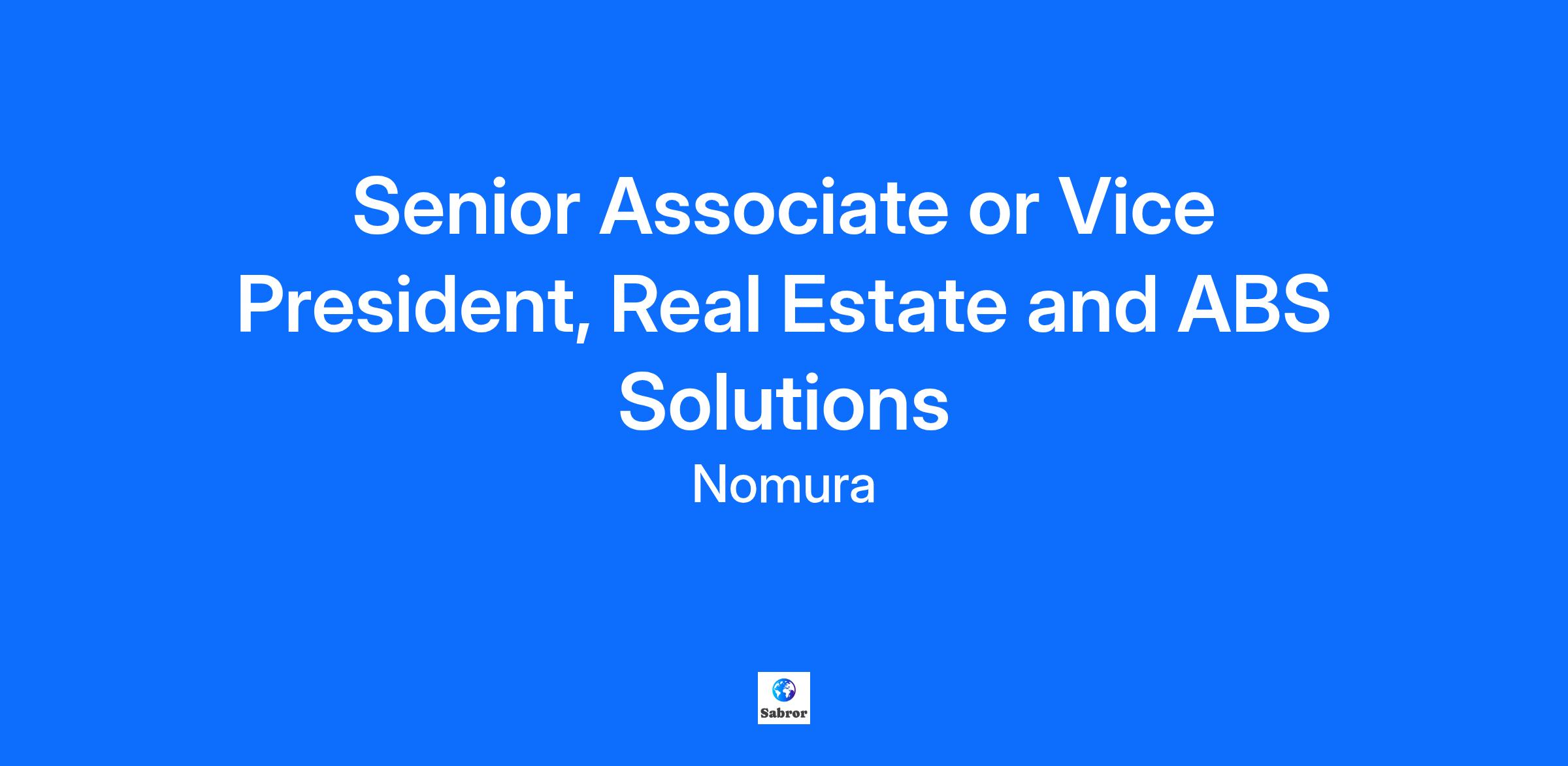 Senior Associate or Vice President, Real Estate and ABS Solutions