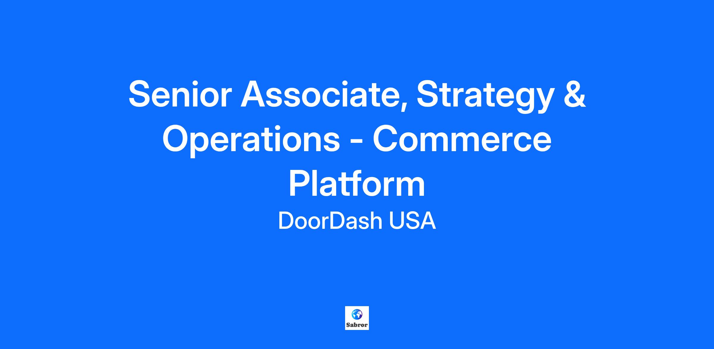 [https://click.appcast.io/greenhouse-te8/a31.png?ent=34&e=22630&t=1701374353806] [https://track.jobadx.com/v1/i.gif?utm_pixel=224e990b-8ff4-4287-8d5d-2ff09647f181&utm_ptz=EST&utm_rqt=track] ABOUT THE TEAM DoorDash Commerce Platform is our company’s hypergrowth fulfillment platform serving restaurants, grocers, and retailers across the United States and abroad. DoorDash Commerce Platform allows restaurants, grocers, and retailers to enable ecommerce fulfillment for their first-party experiences. As part of the Commerce Platform team, the Senior Associate will have the opportunity to help define, test and scale Commerce Platform’s next biggest bets. ABOUT THE ROLE As a Senior Associate on our Commerce Platform Growth Strategy & Operations team, you will play a critical role in driving our growth and success. As a direct owner of this segment, you will help us to build and execute on our growth strategy across some of the largest and most strategic clients. This includes helping us launch and scale our partnerships, finding product market fit, building strategic go to market strategies, and partnering cross-functionally to bring solutions forward. We dream big and bring the newest products to market. On a typical day, you may work with team members to design experiments that improve quality and delivery operations, test the best new marketing strategies, address issues that enable our and our merchants’ processes run efficiently, or dive into data to explain performance at the lowest level of detail and make sure we never stop growing. The ideal candidate for this role should be a self-starter with an entrepreneurial mindset, able to take ownership and create plans from scratch, and drive execution while obtaining cross-functional buy-in to achieve DoorDash Commerce Platform’'s strategic goals. You will report into a Manager in our Commerce Platform Restaurants team in our Platform Products organization. YOU’RE EXCITED ABOUT THIS OPPORTUNITY BECAUSE YOU WILL … * Build and own the business – Drive growth and adoption of some of our top priority projects * Business development – Develop and foster deep relationships with top priority merchant partners to iterate and grow the business. Key Merchant point of contact within the Strategy & Ops team * Go-to-market strategy – Build a strong understanding of product market fit, value proposition, pricing, and the competitive landscape, and help the team develop a go-to-market strategy based on these inputs. Grow a high-potential offering within a high-growth business. * Improve the product – Guide operational improvements for our merchant partners by understanding their needs and working with internal partners to design solutions throughout the product experience. Steer the Commerce Platform product roadmap informed by quantitative analysis and qualitative merchant feedback * Influence – Work cross-functionally with our Product, Engineering, Finance, Analytics, Support, Sales and Account Management teams to drive growth and scale. * Experiment – Evaluate and test various revenue, cost and quality drivers. WE’RE EXCITED ABOUT YOU BECAUSE… * You have a Bachelor’s degree or higher * You have 3+ years of experience in consulting, strategy, or operations; high-growth/early-stage startup or entrepreneurial experience is a big plus * Your expert communication and interpersonal skills set you apart * You are a strong analytical thinker who can provide applicable recommendations out of a complex, sometimes murky, dataset * You have a bias towards action and are able to thrive in a fast-paced, constantly changing work environment * Your charisma allows you to excel at connecting with Merchants and internal teams to promote products and drive adoption * You crave responsibility and want to shape the vision and direction of the company * You’re willing to get your hands dirty and you’re open to feedback. * You’re excellent at motivating potential partners to see the benefits DoorDash Commerce Platform will bring to their business We expect this position to be filled by 12/7/2025. Notice to Applicants for Jobs Located in NYC or Remote Jobs Associated With Office in NYC Only We use Covey as part of our hiring and/or promotional process for jobs in NYC and certain features may qualify it as an AEDT in NYC. As part of the hiring and/or promotion process, we provide Covey with job requirements and candidate submitted applications. We began using Covey Scout for Inbound [https://getcovey.com/product/covey-scout-inbound] from August 21, 2023, through December 21, 2023, and resumed using Covey Scout for Inbound [https://getcovey.com/product/covey-scout-inbound] again on June 29, 2024. The Covey tool has been reviewed by an independent auditor. Results of the audit may be viewed here: Covey [https://getcovey.com/nyc-local-law-144] Compensation The successful candidate’s starting pay will fall within the pay range listed below and is determined based on job-related factors including, but not limited to, skills, experience, qualifications, work location, and market conditions. Base salary is localized according to an employee’s work location. Ranges are market-dependent and may be modified in the future. In addition to base salary, the compensation for this role includes opportunities for equity grants. Talk to your recruiter for more information. DoorDash cares about you and your overall well-being. That’s why we offer a comprehensive benefits package to all regular employees, which includes a 401(k) plan with employer matching, 16 weeks of paid parental leave, wellness benefits, commuter benefits match, paid time off and paid sick leave in compliance with applicable laws (e.g. Colorado Healthy Families and Workplaces Act). DoorDash also offers medical, dental, and vision benefits, 11 paid holidays, disability and basic life insurance, family-forming assistance, and a mental health program, among others. To learn more about our b