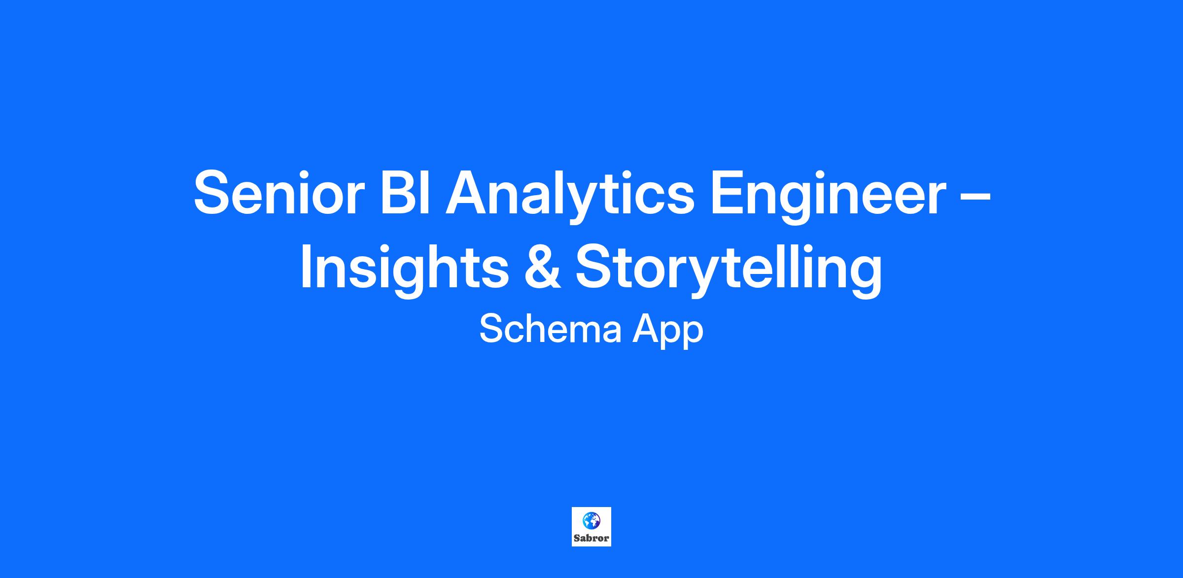 Own the story behind Schema App’s data. As a Senior Analytics Engineer – Insights & Storytelling, you’ll turn complex information into decisions that drive growth, while building the data systems that make it possible.