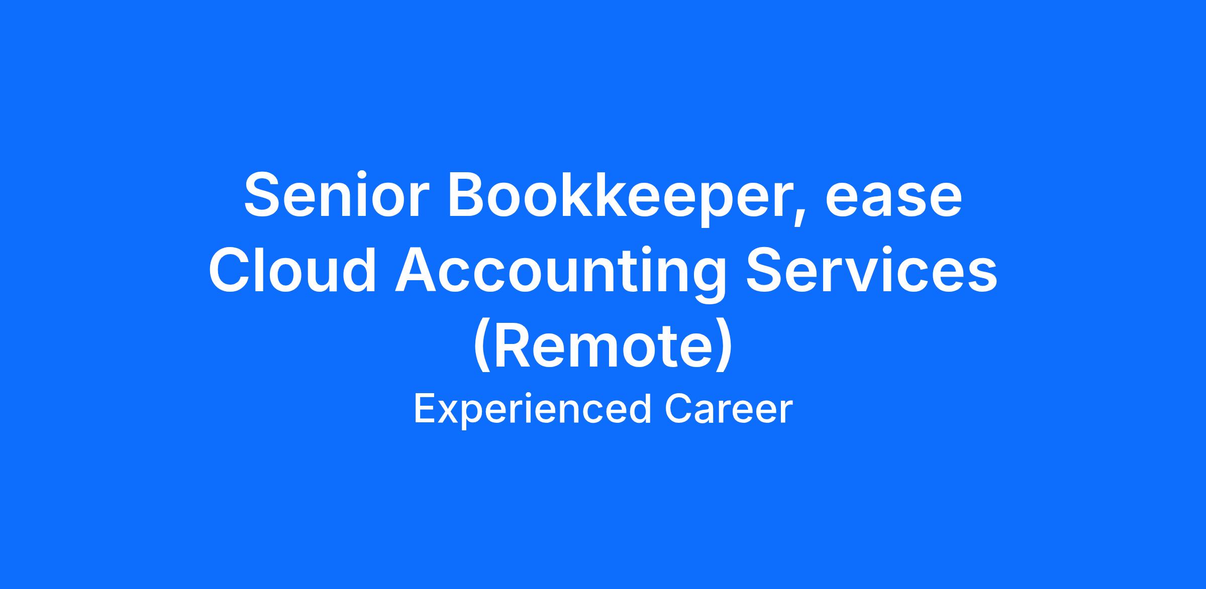 Senior Bookkeeper, ease Cloud Accounting Services (Remote)