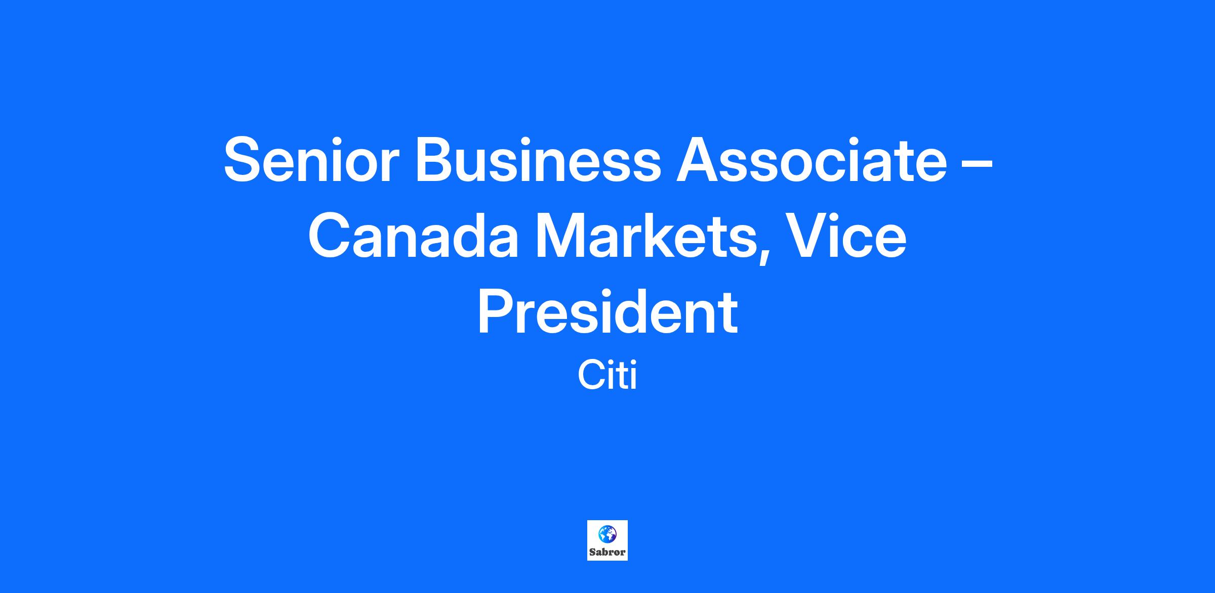 Senior Business Associate – Canada Markets, Vice President