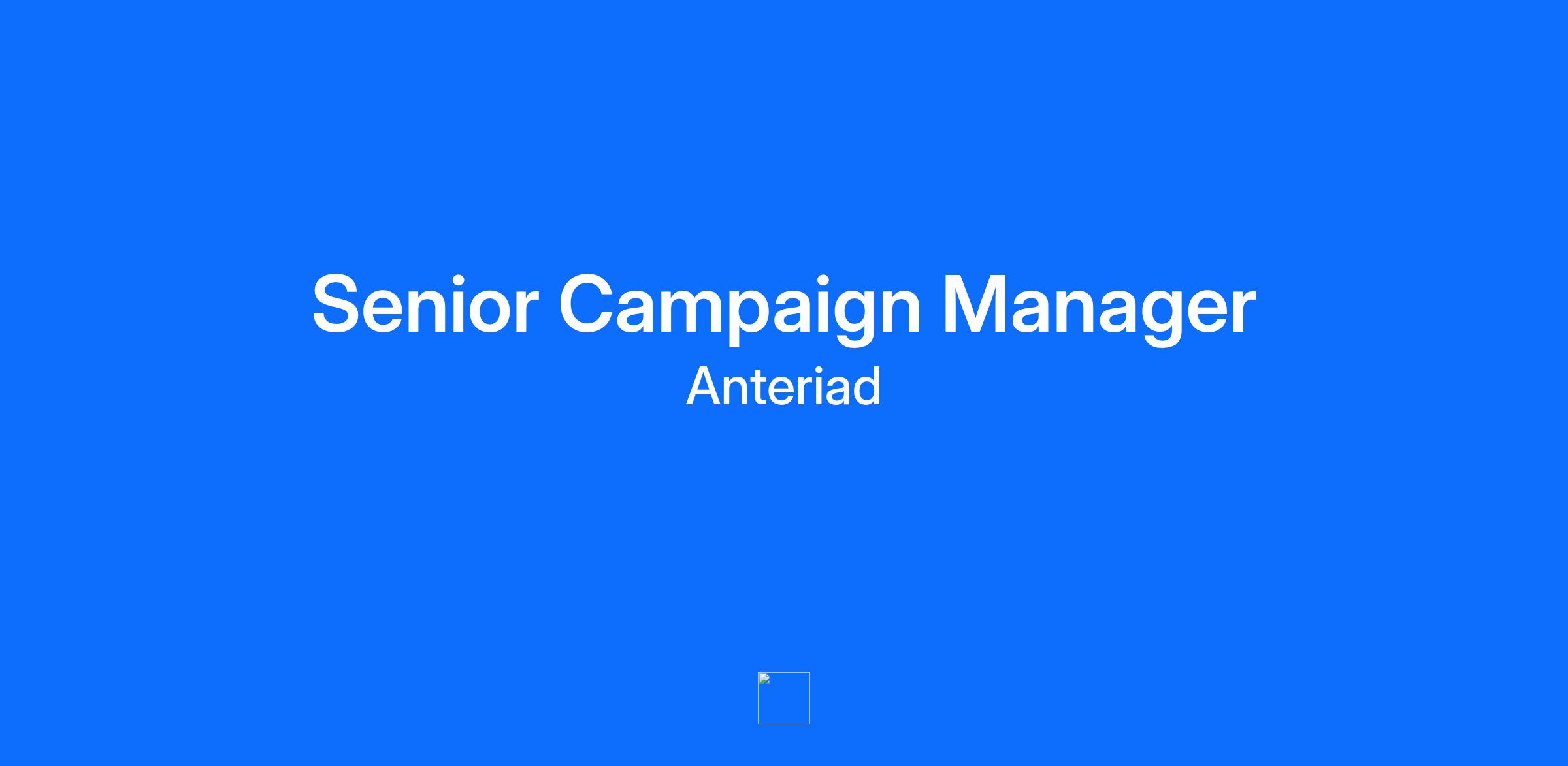 Come Join Our Team At Anteriad and innovate the way B2B marketers make data-driven business decisions. About Anteriad We are not just another B2B solution provider. We're problem solvers. We believe that data is the key to unlocking effective solutions that span a range of marketing challenges - from customer acquisition to demand generation to account-based marketing. Data is at the core of everything we do. Our team works tirelessly to create powerful solutions that drive real results for our clients. Whether it's through innovative technology or deep analysis, we're committed to finding the best path to growth for every one of our customers. Why Join Our Campaign Services Team? Anteriad is a leading B2B marketing solutions provider, helping businesses accelerate revenue through data-driven strategies and innovative campaign execution. We're seeking an experienced Senior Campaign Manager to play a pivotal role in our Campaign Services Group. This is an outstanding opportunity for an intelligent, energetic, and self-motivated professional to drive client success whilst working with cutting-edge marketing technology and data solutions. You'll be at the forefront of B2B marketing innovation, managing complex, multi-channel campaigns across diverse industries. You will be successful in this role if you are: Client-Obsessed: Passionate about delivering exceptional client experiences and exceeding expectations Proactive & Solution-Oriented: A natural problem-solver who anticipates challenges and takes initiative Detail-Oriented: Meticulous attention to detail with commitment to accuracy and quality An Excellent Communicator: Have outstanding written and verbal communication skills with ability to tailor messaging for diverse audiences Resilient & Adaptable: Thrive in fast-paced environments and handles pressure with composure A Collaborative Team Player: Working effectively both independently and as part of cross-functional teams Anteriad means “always moving forward” and we apply that to our company culture by tirelessly promoting an environment that allows our employees to thrive: PTO & Company Holidays Flexible Schedule Continuous Professional Training and Development Mix Of Collaborative & Independent Work Community Outreach Opportunities via Anteriad Cares Professional Global Mentoring Program - Career Guidance from Leadership Great Benefits for You and Your Family What You’ll Do: Campaign Management & Execution Lead end-to-end implementation of sophisticated marketing campaigns utilising Anteriad's proprietary selection tools Execute complex A/B testing, episodic campaigns, and longitudinal testing strategies recommended by our Intelligence & Analytics division Implement and lead on multi-channel campaign workflows in collaboration with our clients Ensure all campaign outputs adhere to client business rules, compliance requirements, and channel-specific best practices Manage the third-party data in take process working with our clients and their brokers to ensure that data is received on time and in the correct format. Provide comprehensive QC oversight for Campaign Services Group deliverables, ensuring all campaigns meet or exceed client specifications before deployment Contribute to quarterly business reviews and planning sessions Work autonomously to meet campaign milestones, proactively identifying and resolving potential bottlenecks Client Relationship Management Act as the primary contact and trusted advisor for assigned accounts Build strong, long-term client relationships through proactive communication and exceptional service Conduct regular meetings and provide strategic recommendations to optimize campaign performance Manage expectations while balancing internal resources Communicate effectively with senior stakeholders and address challenges promptly and independently What You’ll Bring: University degree preferred 3+ years of demonstrated experience in campaign management Proven track record building and executing successful multi-channel campaigns in agency or client-side environments Experience working with enterprise-level clients and managing complex stakeholder relationships Advanced proficiency with campaign management and marketing automation platforms Strong working knowledge of audience selection and segmentation tools Intermediate SQL skills for data querying is a bonus Intermediate-level Microsoft Excel skills (pivot tables, VLOOKUPs, complex formulas) Understanding of European Data Compliance requirements (GDPR, PECR) Client-Obsessed: Passionate about delivering exceptional client experiences and exceeding expectations Proactive & Solution-Oriented: Natural problem-solver who anticipates challenges and takes initiative Detail-Oriented: Meticulous attention to detail with commitment to accuracy and quality Excellent Communicator: Outstanding written and verbal communication skills with ability to tailor messaging for diverse audiences Resilient & Adaptable: Thrives in fast-paced environments and handles pressure with composure Collaborative Team Player: Works effectively both independently and as part of cross-functional teams #LIremote Our Values: Lead & Learn We lead with unrivaled vision, innovation and execution, always learning and embracing new ways of doing things to stay out in front Collaborate & Celebrate We build great things when we work together as one Anteriad team, celebrating our achievements – both great and small – along the way Innovate & Inspire We are always looking for bold new ways to exceed the expectations of our customers and to inspire each other to even greater success Do More & Do Good We go above and beyond in the service of our clients and colleagues, and the communities where we live