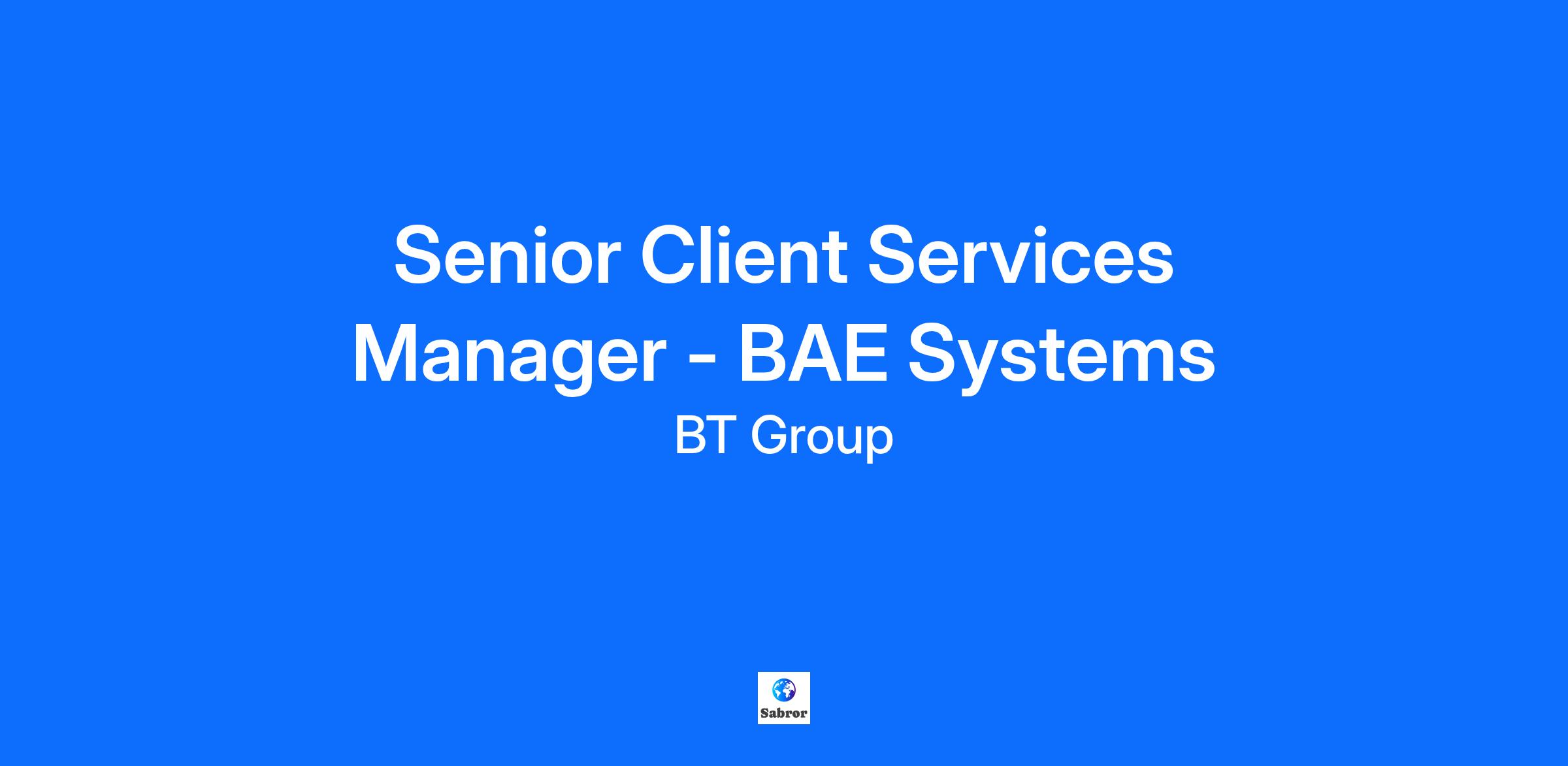 Job Req ID: 52722 Posting Date: 20/11/25 Function: Service Management Location: Bristol, London, Birmingham or ManchesterWhy this job matters As the Senior Client Services Manager for BAE System, you will strategically shape BT's service and delivery strategies to meet customer goals and contractual SLAs. Being the accountable owner means building strong relationships both internally and externally, being the conduit and acting as the voice of the customer to our Internal service and delivery teams. You will play a pivotal role in leading and motivating a team of operational and functionalized colleagues delivering services to the customer, taking accountability for the contractual outcomes from the new network contract, operational KPIs, projects, continual service improvement and organizational management. You will help foster a culture of excellence and collaboration while ensuring the development and alignment of team members to drive customer-centric outcomes. The successful candidate will already hold a current valid government security clearance to SC Level.What you’ll be doing • Develop and execute BT's service and delivery strategy for BAE, aligning with customer goals and collaborating with senior management to set overall client services strategy. Effectively communicate and present at an executive level with gravitas and confidence, both internally with BT's front office and delivery teams, and externally with customers and partner organizations• Oversee the operational aspects of service delivery within the vertical, empowering the team to manage escalations, and ensuring prompt resolution of issues while maintaining alignment with service level agreements (SLAs).• Lead and motivate a team of leaders and line managers supporting the service outcomes, fostering a culture of excellence, collaboration, and continuous improvement. Coach and mentor operational and technical management teams within the customer base.• Develop new ways to achieve high levels of customer loyalty and satisfaction within the customer base, driving continuous improvement and transformation plans to meet evolving customer needs. Lead the implementation of continuous improvement opportunities to improve the service management team processes, such as first-time fix rates through better process, technology and management.• Lead processes aligned with the group including change management, service governance and assurance, risk, security compliance policies and data management. Manage the financial aspects of service delivery within your vertical area.The skills you’ll need IT Service DeliveryCustomer ExperienceStrategic PlanningDecision MakingGrowth MindsetWhat we would like to see on your CV • Extensive experience of Service Management and ITIL process. Suitable candidates will hold a certification in ITIL 4 Foundation, demonstrating a solid understanding of IT service management principles.• Excellent knowledge of customer experience metrics such as Net Promoter Score (NPS) and other customer satisfaction measures, with demonstrable focus on enhancing customer loyalty and satisfaction. Exposure to XLAs would also be desirable.• Experience of motivating a team effectively, fostering a culture of excellence, collaboration and continuous improvement. Ability to matrix manage large teams of approximately 100 different stakeholders across various functions.• Proven policy improvement skills and familiarity with quality improvement methodologies such as Six Sigma or Lean, showcasing the ability to drive efficiency and effectiveness in service delivery processes.• Excellent relationship management and project managements skills. Able to cultivate and maintain strong relationships with internal and external stakeholders of all levels. Ability to manage complex projects with a good grounding in methodologies and techniques such as PMP, Prince 2 and Agile.Benefits At BT, we entertain, educate, and empower millions of people every single day. We’re a brand built on connecting people – whether that’s friends, family, businesses, or communities. Working here, you’ll receive an attractive salary and a range of competitive benefits, but – more than that – you’ll be joining an ambitious organisation with a culture of togetherness, collaboration, and inclusivity, that takes a genuine and proactive interest in your progress and development. • 15% on target annual bonus• Private Healthcare for self & family• Company car or £5,500 cash alternative• X4 Salary Life Assurance• BT Pension scheme, minimum 5% employee contribution, BT contribution 10%• 25 days annual leave (not including bank holidays), increasing with service• From January 2025, equal family leave: receive 18 weeks at full pay, 8 weeks at half pay and 26 weeks at the statutory rate. It’s for all parents, no matter how your family is made up.• Enhanced women’s health support: including help with menopause symptoms, cancer screenings, period care and more.• 24/7 private virtual GP appointments for UK colleagues• 2 weeks paid carer’s leave • Huge range of flexible benefits including Cycle to Work, Healthcare, Season Ticket Loan, Electric Vehicle Salary Sacrifice• World-class training and development opportunities• Discounted broadband, mobile and TV package• Access to 100’s of retail discounts including the BT shop Flexible WorkingThis role offers a 3 together, 2 wherever working model. This means you are required to be at your contractual location 3 days a week with 2 flexible days per week. This role will also require a weekly visit to the customer site.With over 175 years of heritage, BT is now the flagship business brand of BT Group. We’ve brought together our best people and capabilities into a B2B powerhouse serving 1.2 million business customers internationally. We’re a global leader for secure connectivity and collaboration platforms for businesses of all shapes and sizes, from b