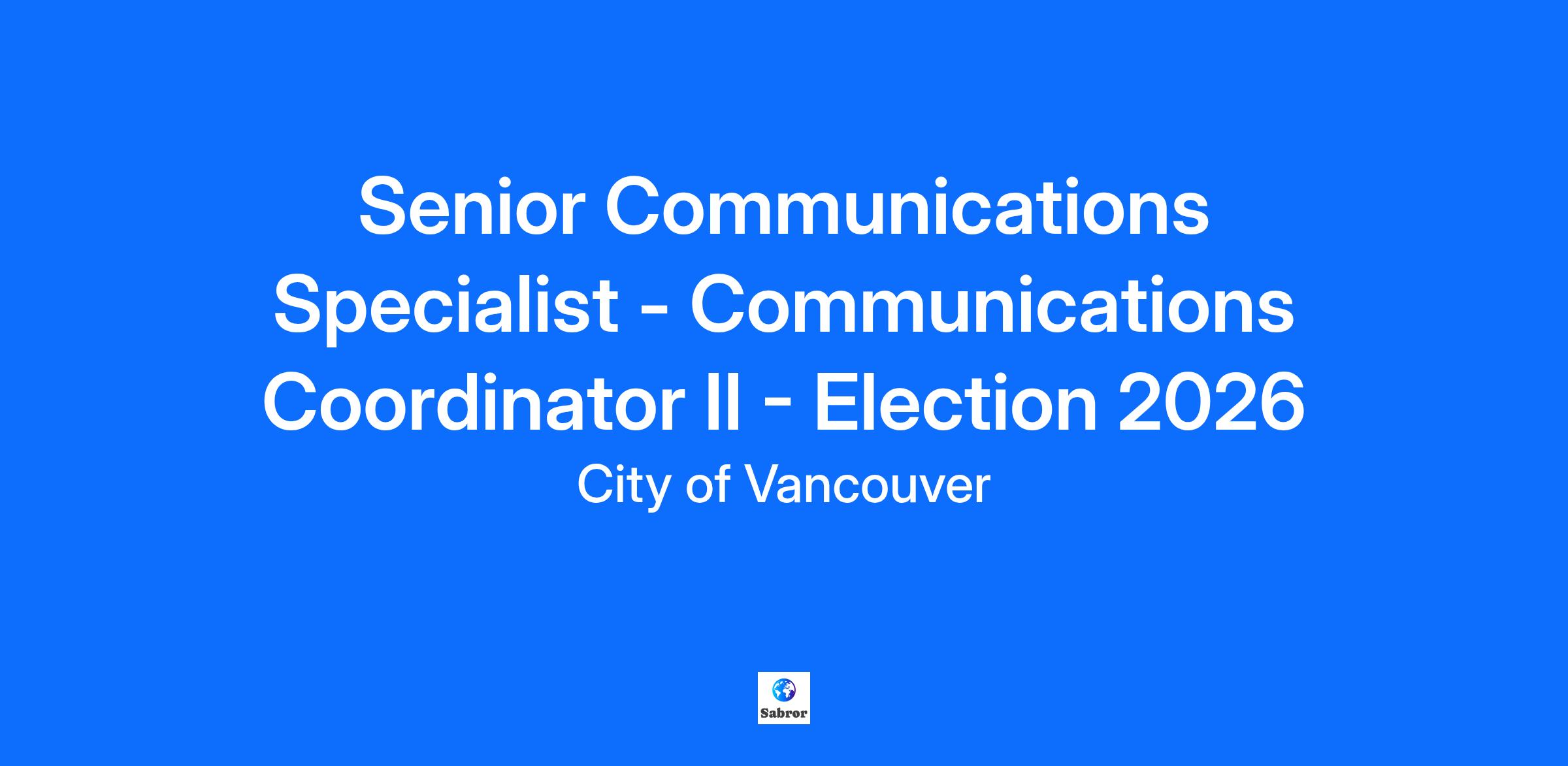 Requisition ID: 44570 Organization Located on the traditional, ancestral and unceded lands of the xʷməθkʷəy̓əm (Musqueam), Sḵwx̱wú7mesh (Squamish), and səlilwətaɬ (Tsleil-Waututh) Peoples, Vancouver has a commitment to becoming a City of Reconciliation. Vancouver consistently ranks as one of the world’s most liveable and environmentally sustainable cities. Named among Canada's Top 100 Employers, BC's Top Employers, and Canada's Greenest Employers, the City of Vancouver seeks colleagues who can help shape and embody our core commitments to sustainability, reconciliation, equity and outstanding quality of life for all residents. Consider joining our committed team of staff and being part of an innovative, inclusive and engaging workplace. Working at the City of Vancouver and within the public service can be a rewarding career where you play a key role in ensuring impartial and equitable access to services, upholding ethical governance, and addressing the needs of citizens with integrity and dedication. Main Purpose and Function As a member of the Civic Engagement and Communications team, the Senior Communications Specialist works on strategic communications projects in support of the 2026 Vancouver Election. This position is responsible for helping to educate the public and key stakeholders about essential Election and civic education information. The position has a strong strategic focus including developing communications strategies and social media content that supports successful business outcomes and creating or supervising the creation of various communications tools to inform the public about the 2026 Vancouver Election, their expected impacts and the opportunities for public involvement. Specific Duties and Responsibilities Develops and implements multi-channel communications plans to support key initiatives Writes a wide variety of publicity and informational materials including news releases, newsletters, notices, pamphlets and brochures, speeches, video, displays, social media campaigns and other digital content, advertising, etc. Tracks the communications budgets for assigned projects Plan media events, news conferences and other special events Serves as the primary liaison to the media, coordinates media responses and spokespeople as appropriate Provides strategic communications and issues management advice to client areas Directs the development and maintenance of web pages Liaises with related agencies and suppliers/contractors to ensure effective and timely coordination of information to the public Other duties/responsibilities as assigned Qualifications Education and Experience: Degree in Communications, Public Relations, Journalism or a related discipline and at least five to seven years of experience in a communications position, or an equivalent combination of training, education and experience Considerable experience implementing communications plans on complex and/or controversial topics Experience working with and communicating to diverse community groups Considerable experience serving as a media spokesperson or supporting other spokespeople on complex or sensitive issues Experience developing and making presentations to large groups Prior experience supporting public engagement or consultation on Election campaigns or issues would be an asset Knowledge, Skills and Abilities: Considerable demonstrated skill in developing and implementing all facets of a strategic communications plan Demonstrated ability to identify potentially contentious issues and quickly research the topic and recommend course of action, including responses Demonstrated ability to meet very tight deadlines and multi-task numerous duties Demonstrated ability to anticipate communications needs, and identify and develop the best tools and best timing for providing effective information to various publics Demonstrated ability to be pro-active in establishing and maintaining respectful relationships with numerous and diverse stakeholder groups Demonstrated skill in establishing and maintaining cooperative working relationships with internal and external partners - both in routine and in controversial and stressful situations Demonstrated skill in writing plain language materials: taking complex and technical information and making it interesting and easy for a layperson to understand Demonstrated skill in public speaking, and in writing and making effective public presentations to groups Considerable knowledge of the processes of graphic design, photography, video production, print and web production, and social media channels Demonstrated ability to remain calm, alert and productive under stressful conditions Ability to handle confidential and sensitive issues with skill, tact and diplomacy Thorough knowledge of the media (both English and ethnic) Thorough knowledge of public processes/consultation techniques Thorough knowledge of government, particularly civic and regional government structures Where operationally appropriate and subject to change, the City of Vancouver has a Flexible Work Program. This program allows staff to work a hybrid work week from locations that are a daily commutable distance from their work at a City worksite. At this time this position is eligible to be part of the Flexible Work Program. Business Unit/Department: Office of the City Manager (1010) Affiliation: CUPE 15 Non Pks Employment Type: Temporary Full Time Position Start Date: November, 2025 Position End Date: November, 2026 Salary Information: Pay Grade GR-027: $47.62 to $56.27 per hour Application Close: October 5, 2025 At the City of Vancouver, we are committed to recruiting a diverse workforce that represents the community we so proudly serve. Indigenous peoples, people of colour, 2SLGBTQ+ persons including all genders and persons with disabilities are encouraged to apply. Accommodations will be provided upon request during the selection process. Learn more about our commitment to diversity and in