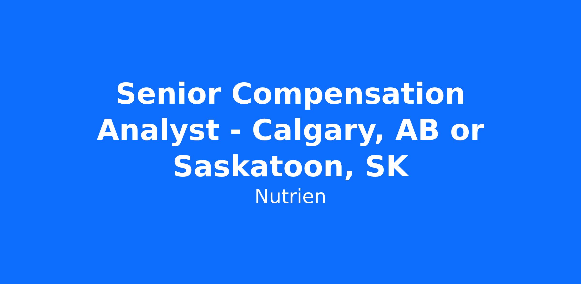 - Participate in advancing the direction of Nutrien's enterprise-wide Compensation strategy and framework within Nutrien by strongly partnering with the Compensation Advisor team, Executive Compensation, HRBPs, HR Operations, Finance, Payroll, Business Leaders, etc.