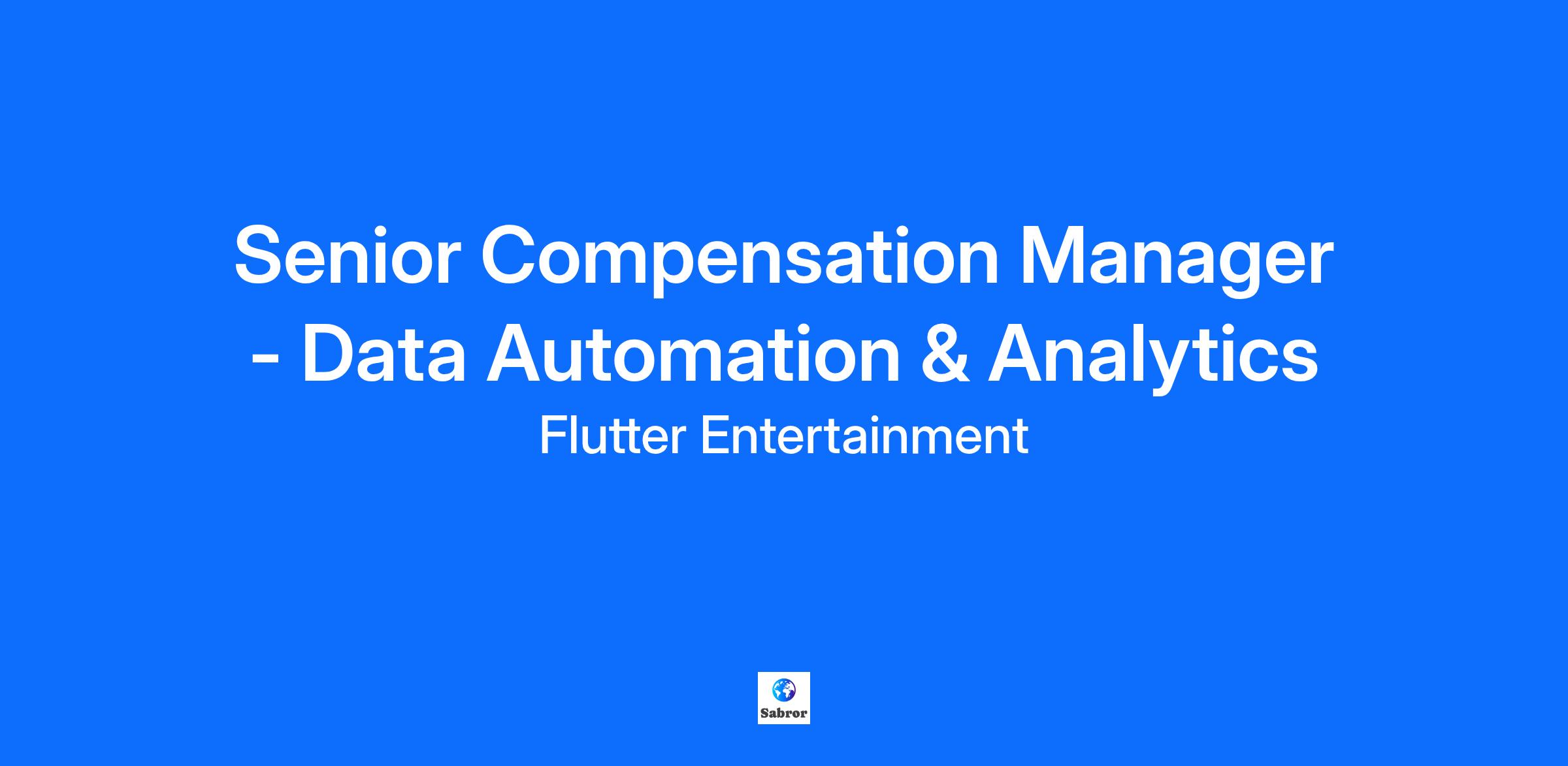 Senior Compensation Manager - Data Automation & Analytics Why Flutter? We're the global leader in online sports betting and gaming, creating exciting experiences for millions of players worldwide. Our teams are full of experts, innovators and game-changers from every walk of life. Together we're leading betting and gaming into the future. We challenge norms, explore ideas, champion our customers and set the pace in our industry. At Flutter, we create cultures that empower people like you to perform at their best. The Role Ready to transform how we think about compensation data? We're looking for a Senior Compensation Manager who'll revolutionise our data management and compensation strategy through smart analytics, automation, and AI. You'll blend reward expertise with analytical skills to drive efficiency, enhance decision-making, and develop our forecasting capabilities. Plus, you'll help position Flutter Reward as a leader in AI-enabled, data-driven practices. What you'll be doing Data & Analytics Be our go-to data analytics authority for all things reward-related Recommend how AI can enhance our processes and add real value Develop sophisticated market data analysis and collect real-time trends Design advanced budget models and compensation forecasting tools Work with our Pay Equity team on statistical analysis and compliance reporting Systems & Transformation Lead optimisation of our compensation systems and processes Oversee implementation of advanced pay equity software Research and implement smart automation and AI initiatives Automate survey data collection, salary range creation, and job levelling Partnership & Innovation Collaborate across teams to enhance analytical capabilities Support transformation initiatives across the wider Reward function Work closely with our Reward Strategy team Present insights and recommendations to senior leadership Governance & Documentation Lead data integrity initiatives and maintain governance standards Document analytical methodologies and automation processes Create system requirements and automated workflows Develop user guides and training materials How you'll do it You'll have extensive experience in reward or data analytics covering employee data analysis and forecasting using advanced analytics tools such as Power BI, Tableau, SQL, Python/R. You'll also have knowledge of process transformation through automation, HR systems management, job architecture, and pay equity compliance requirements. Key skills: Data storyteller: You love turning complex data into clear insights and compelling dashboards that drive decisions Systems-savvy: You can define what systems need to do and optimise our compensation platform use Data quality champion: You implement solid governance processes and ensure our data is accurate and compliant Natural leader: You lead projects independently, prioritises effectively and enjoys mentoring others Force for change: You spot opportunities for automation and transformation, then make them happen You're someone who: Has an eye for detail and high standards for quality Builds great relationships across diverse teams and geographies Thrives in fast-paced, changing environments Can handle sensitive compensation data professionally People & Stakeholders You'll be a subject matter expert delivering significant individual contribution. You'll directly manage 1-2 Analysts or Senior Analysts and may mentor others in the team. You’ll report to the Director of Compensation & Reward Transparency and work with Group Compensation, Reward and HR Business Partners, Finance teams, Enterprise Technology, Group People Analytics, and Regional People teams. What’s in it for you We are a flexible employer; whether you have personal commitments or a hobby that brings you joy, we want you to bring your best self to work and feel empowered to do so. We also like to share our success; after all you make it happen. We have an excellent benefits package that can be personalised to you: Bonus scheme Uncapped holiday allowance Enhanced pension scheme Private healthcare Life assurance Income protection £1,000 annual self-development learning fund Invest via the Flutters Sharesave Scheme Enhanced parental leave Ready to join us? Life at Flutter is super-charged. There are always new opportunities to explore, ways to support our brands, and things we can do to make sure every customer is entertained and supported. Want to help us lead betting and gaming into the future? We'd love to hear from you. We're an equal opportunity employer and value diversity. We don't discriminate based on race, religion, colour, national origin, gender, sexual orientation, age, marital status, veteran status, or disability status. Our Work Experience is the combination of everything that's unique about us: our culture, our core values, our company meetings, our commitment to sustainability, our recognition programs, but most importantly, it's our people. Our employees are self-disciplined, hard working, curious, trustworthy, humble, and truthful. They make choices according to what is best for the team, they live for opportunities to collaborate and make a difference, and they make us the #1 Top Workplace in the area. Join us and grow your career with Flutter! Please create a candidate account after submitting your application to track it's progress.