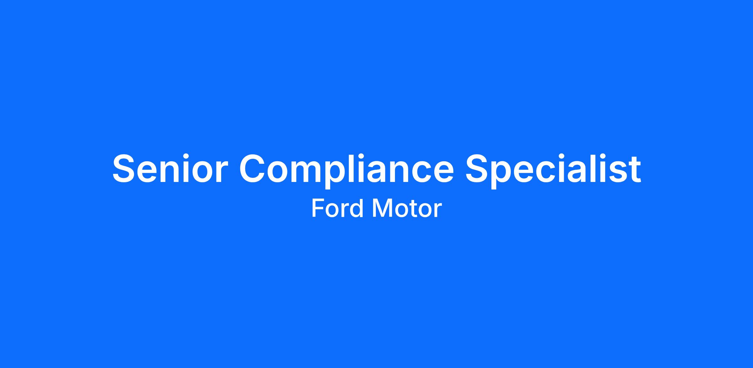 DescriptionFord Credit Spain is seeking a senior Compliance Analyst to join its compliance function in Madrid reporting directly into the Compliance Manager.