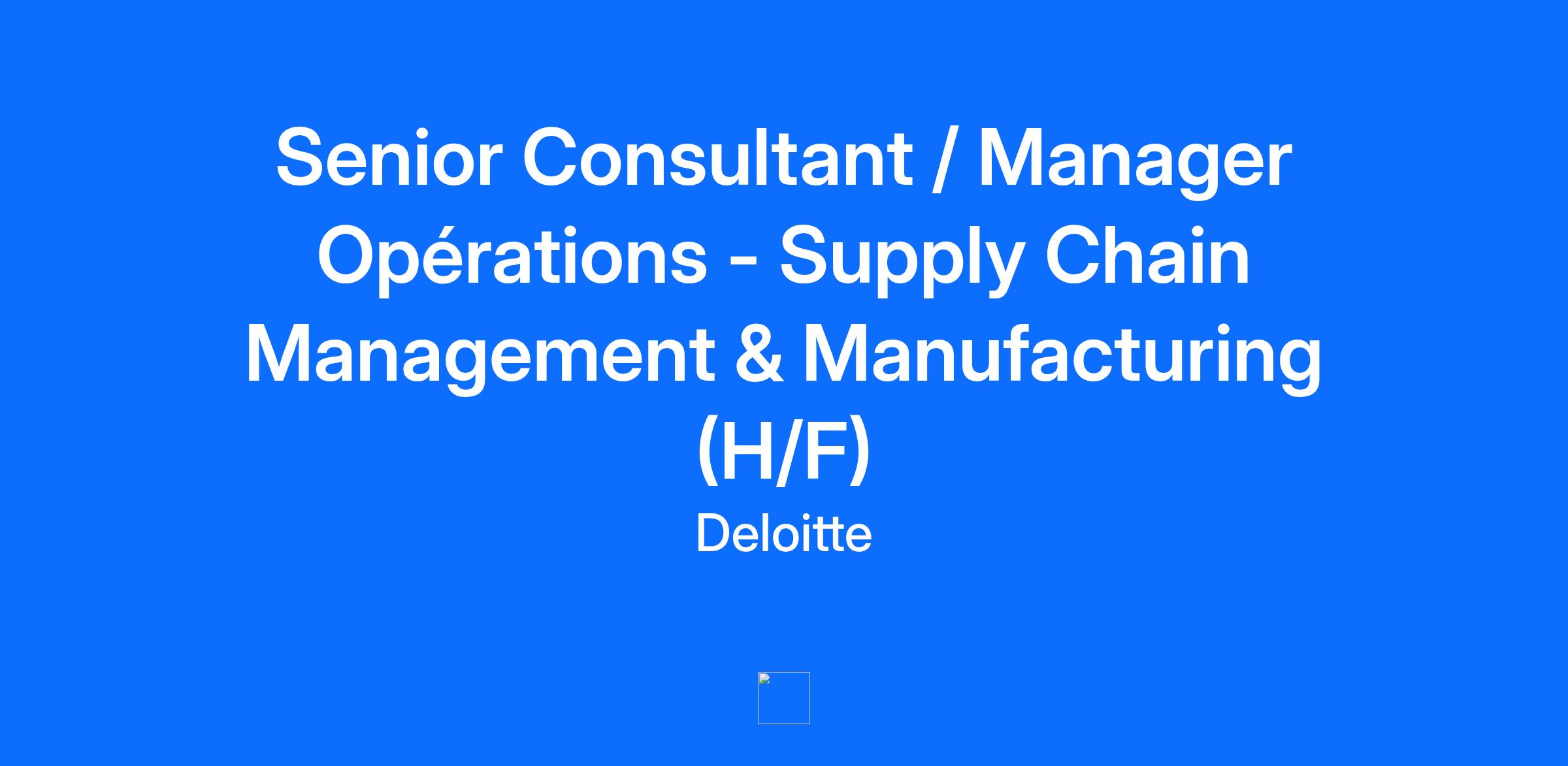 Tous nos postes sont ouverts au télétravail. Rejoindre Deloitte, c'est dire oui à une expérience qui a du sens, celle où les rencontres et les missions vous poussent à grandir chaque jour. C’est évoluer dans un environnement de travail fondé sur la confiance, la transmission et l’intelligence collective pour construire l’avenir de nos clients. Un avenir que nous voulons plus responsable, plus durable et respectueux de l’environnement en prenant des initiatives concrètes à notre échelle. Nous rejoindre, c’est aussi dire oui à une entreprise Great Place to Work, attachée au bien-être, et à l’inclusion sans distinction de nos collaborateurs. Et vous, prêts à dire #ISayYes à votre futur chez Deloitte ? Avec près de 1 500 consultants en France et un réseau mondial de 60 000 consultants, l'activité Conseil de Deloitte accompagne les organisations publiques et privées dans leurs projets de transformation et de recherche de la performance. Depuis plus de 6 ans, Deloitte est désigné par Gartner comme le leader mondial du conseil. En tant que senior consultant / manager au sein de Deloitte Conseil et en collaboration avec les autres expertises et métiers de Deloitte (digital, développement durable, gestion du risque, technologie et les métiers juridiques et fiscaux), vous participerez activement aux missions et au développement de notre activité de conseil en optimisation des réseaux de ventes. Dans le cadre de projets de transformation de nos clients, et ce dans différents secteurs d'activités (aéronautique, énergie, ressources, équipements industriels, transports, infrastructures, automobile, tourisme, biens à la consommation, retail, santé et sciences de la vie), vous serez amené(e) à accompagner nos clients sur la définition et la mise en place de nouveaux modèles opérationnels innovants appuyés notamment par les technologies digitales. Vos principales missions seront les suivantes : • End to End Supply Chain : o Définition de nouveaux modèles opérationnels : définition des nouveaux réseaux logistiques et de gouvernance supply chain (transport / entrepôts), des processus associés, des évolutions de postes et de compétences en lien avec la mise en place de solutions digitales (Industry 4.0) ; o Mise en place de processus et solutions de supply chain planning, control tower, transports, warehousing...: accompagnement du design des nouveaux processus à la mise en place en lien avec les équipes Deloitte Technology. • Manufacturing : o Définition de nouveaux modèles opérationnels : définition de nouveaux réseaux de production, des processus associés, des évolutions de postes et de compétences en lien avec la mise en place de solutions digitales (Industry 4.0) ; o Mise en place de processus et solutions de MRP, MES, GMAO et plant control tower : accompagnement du design des nouveaux processus à la mise en place en lien avec les équipes Deloitte Technology. Et plus spécifiquement : • Gestion de projet : gestion d'un projet sur le contenu et sur le plan financier ; • Présentation des recommandations : construction des recommandations, organisation et gestion des réunions / ateliers clients ; • Participation au développement et à la montée en compétences de l'équipe en contribuant au partage de connaissance ; • Participation à la création d'éminence et partage via des publications et événements extérieurs ; • Contribution aux appels d'offres et au développement commercial du Cabinet. Votre parcours : En rejoignant Deloitte, vous aurez l'opportunité de développer un set de compétences, partagées avec notre réseau international, et structurées autour des dimensions suivantes : leadership, métier et spécialité. Grâce aux missions variées auxquelles vous participerez et au programme de formations proposé, vous pourrez renforcer progressivement ces compétences, en acquérir de nouvelles et progresser ainsi au sein de notre firme. Votre Profil • Diplômé(e) d'un Bac+5 d'école d'ingénieurs, de commerce ou d'université, vous justifiez d'une expérience d'au moins 4 ans acquise au sein d'un cabinet de conseil. • Vous êtes dynamique et motivé(e) avec de fortes capacités d'analyse et de synthèse. • Vous maîtrisez l'anglais écrit et oral.#ALLIN : tous les candidats ont leur place chez Deloitte. Nous croyons en un environnement inclusif dans lequel les personnes se sentent impliquées, respectées, valorisées, et capables d’apporter leur « soi authentique ». La lutte contre toute forme de discrimination, l’égalité des chances, le respect et la mise en valeur de la diversité sont les pierres angulaires de notre politique RH. Ainsi, toutes les candidatures sans aucune distinction (âge, handicap, sexe, nationalité, religion, orientation sexuelle…) ont leur place dans notre processus de recrutement. Deloitte est l'un des principaux cabinets mondiaux de services en audit & assurance, consulting, financial advisory, risk advisory et tax & legal. Avec 312 000 collaborateurs implantés dans 150 pays, Deloitte, depuis plus de 150 ans, a su gagner par sa qualité de service la confiance de ses clients et créer ainsi la différence. Deloitte sert 80% des entreprises du Fortune Global 500®. Deloitte France et Afrique Francophone regroupent un ensemble de compétences diversifiées pour répondre aux enjeux de ses clients, de toutes tailles et de tous secteurs. Fort des expertises de ses 7 000 associés et collaborateurs et d’une offre multidisciplinaire, Deloitte France est un acteur de référence. Soucieux d’avoir un impact positif sur notre société, Deloitte a mis en place un plan d’actions ambitieux en matière de développement durable et d’engagement citoyen.