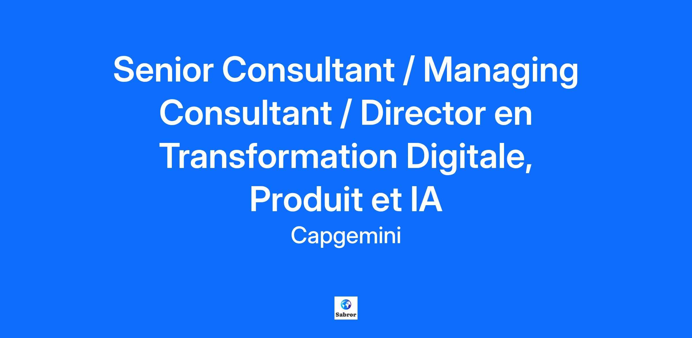 Chez Capgemini Invent, nous croyons que l’innovation est le moteur du changement . En tant que consultants en transformation digitale , nous combinons nos capacités stratégiques , créatives et scientifiques , en collaborant étroitement avec nos clients pour leur fournir des solutions de pointe. Rejoignez nous pour conduire une transformation adaptée aux défis d'aujourd'hui et de demain Vos missions Vous êtes l’artisan de notre approche « Inventive IT » de transformation digitale et IA au service des ambitions métier. Nos clients sont les Directions des Systèmes d’information ou les responsables de grands programmes de transformation Digitale. Nous intervenons de la définition de la stratégie, du cadrage du plan jusqu’à l’implémentation de cette transformation au sein de l’organisation. A titre d’illustration, quelques exemples de responsabilité sur projet : Définition de la stratégie du SI pour une grande banque française. Définition et implémentation de la stratégie IA pour la direction SI d’un acteur mondial de la défense. Mise en place d’un Value Realization Office et du pilotage par la valeur pour un acteur de l’énergie. Déploiement de l’agilité à l’échelle et transformation des pratiques métier et SI pour un acteur du secteur des télécommunications. Construction d’une digital factory et de nombreux cas d’usages digitaux pour un acteur des mobilités. Définition d’un modèle opérationnel agile liant DSI, Marketing et Produit au sein d’un acteur du luxe. Votre profil Diplôme en Ingénierie, Commerce, ou Université avec intérêt pour transformation d'entreprise, innovation digitale et IA. 3+ ans d'expérience en conseil ou rôles opérationnels dans de grands groupes ; 3-5 ans pour Senior, plus de 5 ans pour Manager, plus de 8 ans pour Director. Connaissances en IT : définition des stratégies SI ; Intelligence Artificielle (AI, GenAI, Agentic AI) ; pilotage de programmes de transformation ; transformation agile et transformation des processus IT, Digital Factory et agilité à l’échelle, target operating model, Finance IT et business case, IT cost reduction et Business Value, IT portfolio management, GenIA, Cybersecurité. Bilingue anglais/français, mobile, curieux, et adaptable. Cherche à contribuer dans un milieu stimulant avec esprit d'équipe, et compétences analytiques. 3 raisons de nous rejoindre Qualité de vie au travail : accord de télétravail en France et à l’international, accord sur l’égalité professionnelle, la parentalité, l’équilibre des temps et la mobilité durable. Apprentissage en continu : certifications et formations en libre accès, accompagnement sur mesure avec votre career manager, parcours d’intégration sur plusieurs mois. Avantages groupe & CSE : plan actionnariat, tarifs préférentiels, remboursement partiel vacances, remboursement de votre abonnement sportif ou culturel.Nos engagements et priorités Le groupe Capgemini encourage une culture inclusive dans un cadre multiculturel et handi-accueillant. En nous rejoignant, vous intégrez un collectif qui valorise la diversité, développe le potentiel de ses talents, s’engage dans des initiatives solidaires avec ses partenaires, et se mobilise pour réduire son impact environnemental sur tous ses sites et auprès de ses clients. Capgemini Invent est la marque d’innovation digitale , de design et de transformation du groupe Capgemini. Etablie dans plus de 30 studios et plus de 60 dans le monde, elle compte une équipe de plus de 12 500 experts en stratégie , data scientists, concepteurs de produits et d’expériences ou encore experts en marques et en technologie qui développent de nouveaux services digitaux , produits , expériences et modèles d’affaire pour une croissance durable. Get The Future You Want* |www.capgemini.com/fr fr *Capgemini, le futur que vous voulez