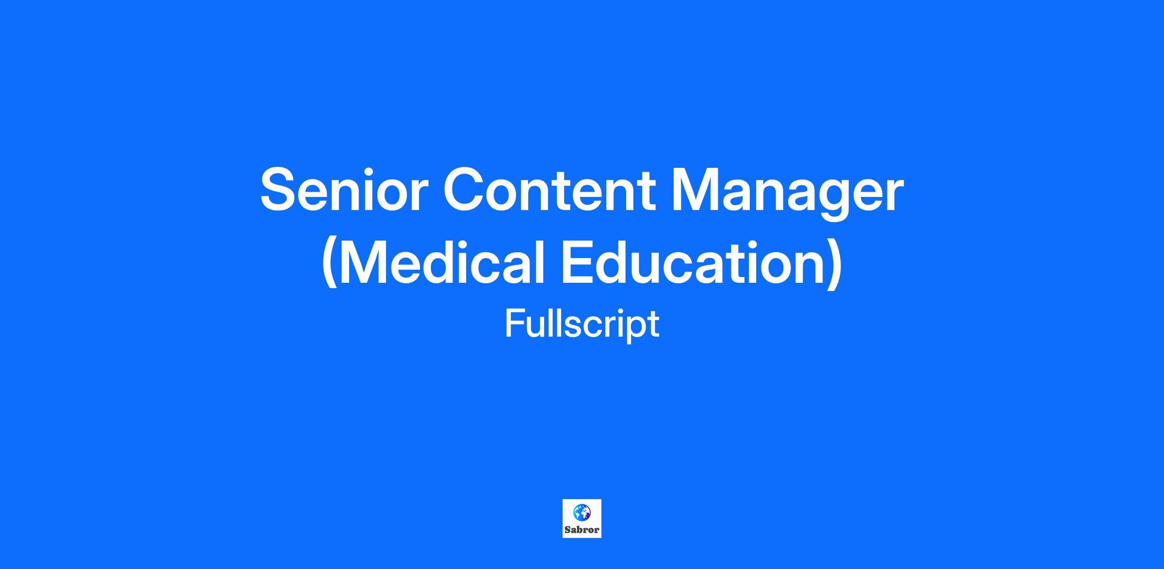 Weāre looking for a Senior Content Manager to join the Fullscript Academy teamāour learning management system (LMS) platformāto lead the development, review, and delivery of high-impact medical education content.