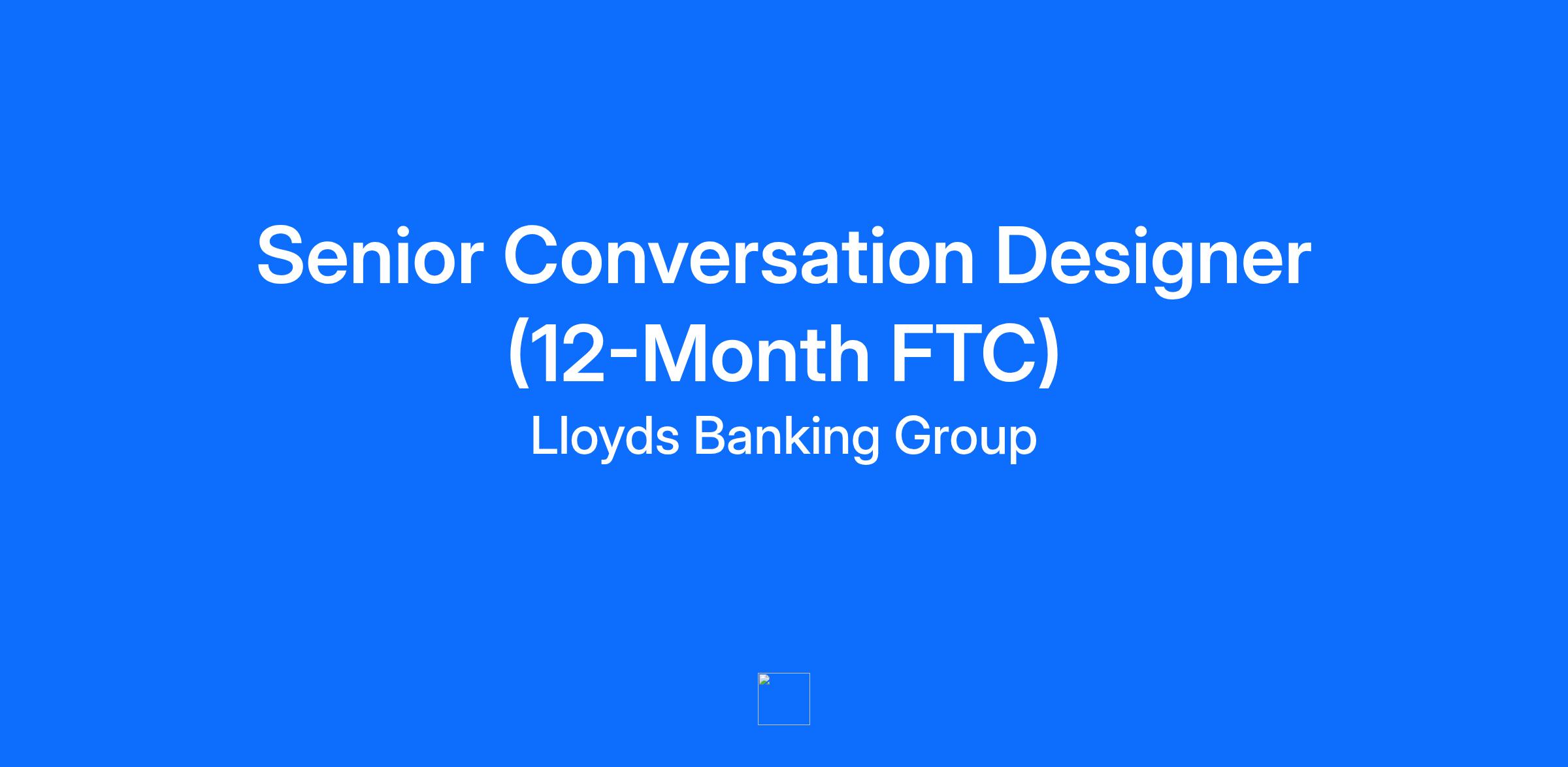 End Date Friday 09 January 2026 Salary Range £90,440 - £106,400 We support flexible working – click here for more information on flexible working options Flexible Working Options Hybrid Working, Job Share Job Description Summary Lloyds Banking Group is the UK’s leading bank with over 30m customers and its biggest digital bank, with over 20 million active online customers. We’ve placed an ambitious transformation programme and a multi-channel approach to banking at the heart of our strategy to be the best bank for customers, backed by significant investment in our platforms and people over the next three years. We serve millions of customers every day, from individuals and families to large businesses and corporations. This means we’re well - placed to help Britain prosper by shaping the way we spend, save and borrow. Job Description JOB TITLE: Senior Conversation Designer (12-Month FTC) LOCATION: London SALARY: £90,440 - £106,400 HOURS: Full-Time DURATION: 12-Month Fixed-Term Contract WORKING PATTERN: Our work style is hybrid, which involves spending at least two days per week, or 40% of our time in the London office. About this opportunity We’re looking for someone to lead the creation of seamless conversational experiences for our customers, build advocacy, and advance Conversation Design across the Group. You’ll join the design leadership team in our Conversational Banking lab and lead a diverse team of designers. You should have strong experience in human-centred design and conversational AI, driving an experience-led approach to improving our customer interactions. You’ll be comfortable with all aspects of design, including needs definition, journey mapping, storytelling, facilitating workshops, and using evidence to influence decisions. You’ll enjoy your craft and developing others, whether that’s advocating for Conversation Design with product teams, defining new ways of working, or helping to evolve the discipline. As a Senior Conversation Designer, it's your role to: Work confidently as part of agile teams to uncover priorities, visualise outcomes, and define scope. Lead a design squad and manage relationships with leadership teams and product owners. Provide thought leadership in Conversation Design. Facilitate workshops and discussions, ensuring business context, needs, and risks are understood and decisions are well informed. Communicate with colleagues to manage expectations and incorporate multiple perspectives. Guide others to make sound design decisions, prioritise the user perspective, and challenge constraints Take ownership of your own and others’ development through coaching and mentoring. Collaborate closely with designers, product owners, and engineers. Be an active member of the design community, sharing knowledge and embedding design principles across products and services. What you'll need A highly motivated, proactive, and driven approach to achieving goals, with the ability to foster innovation and continuous improvement. Strong relationship-building skills, using empathy to bring people together and credibility when engaging with senior audiences. Confidence to provide constructive challenge where appropriate. A calm and resilient approach under pressure, with the ability to identify and respond to new or emerging risks and priorities. You’ll also have Strong experience designing conversational interfaces, with confidence in exploring generative AI and agentic design. Curiosity to keep learning and sharing with the broader conversational AI community, bringing back new ideas to upskill the team. An innovative approach to problem-solving, encouraging others to contribute. Exceptional communication skills, able to explain ideas and issues to both technical and non-technical audiences. Experience in research methods to inform design choices. Strong experience in design thinking and facilitation. About working for us Our focus is to ensure we're inclusive every day, building an organisation that reflects modern society and celebrates diversity in all its forms. We want our people to feel that they belong and can be their best, regardless of background, identity or culture. We were one of the first major organisations to set goals on diversity in senior roles, create a menopause health package, and a dedicated Working with Cancer initiative. And it’s why we especially welcome applications from under-represented groups. We’re disability confident. So if you’d like reasonable adjustments to be made to our recruitment processes, just let us know. We also offer a wide-ranging benefits package, which includes: A generous pension contribution of up to 15% An annual performance-related bonus Share schemes including free shares Benefits you can adapt to your lifestyle, such as discounted shopping 30 days’ holiday, with bank holidays on top A range of wellbeing initiatives and generous parental leave policies If you’re excited by the thought of becoming part of our team, get in touch. We’d love to hear from you! At Lloyds Banking Group, we're driven by a clear purpose; to help Britain prosper. Across the Group, our colleagues are focused on making a difference to customers, businesses and communities. With us you'll have a key role to play in shaping the financial services of the future, whilst the scale and reach of our Group means you'll have many opportunities to learn, grow and develop. We keep your data safe. So, we'll only ever ask you to provide confidential or sensitive information once you have formally been invited along to an interview or accepted a verbal offer to join us which is when we run our background checks. We'll always explain what we need and why, with any request coming from a trusted Lloyds Banking Group person. We're focused on creating a values-led culture and are committed to building a workforce which reflects the diversity of the customers and communities we serve. Together we’re building a truly inclusive