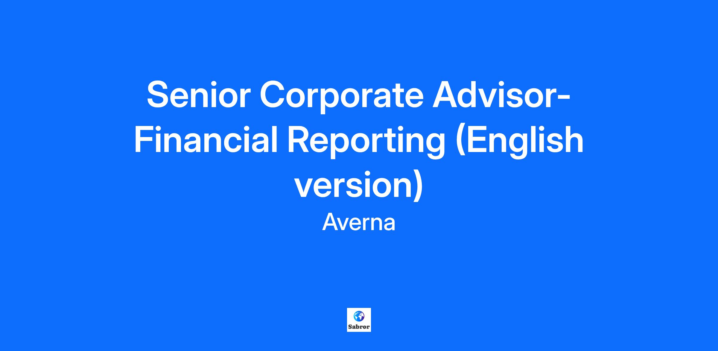 Senior Corporate Advisor- Financial Reporting (English version)