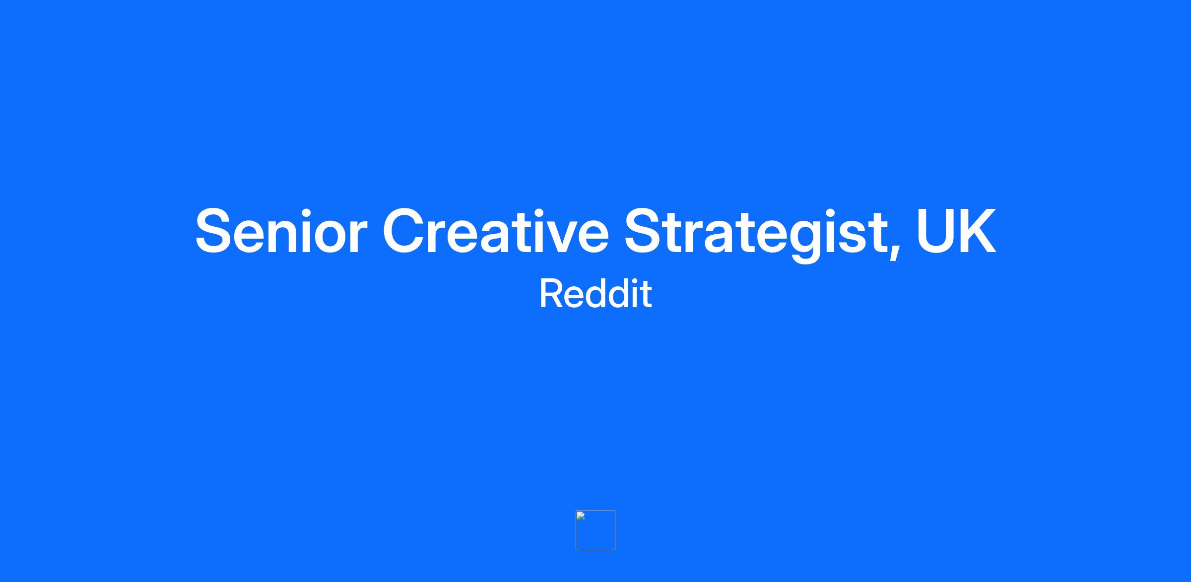 Reddit is a community of communities. It’s built on shared interests, passion, and trust, and is home to the most open and authentic conversations on the internet. Every day, Reddit users submit, vote, and comment on the topics they care most about. With 100,000+ active communities and approximately 116 million daily active unique visitors, Reddit is one of the internet’s largest sources of information. For more information, visit www.redditinc.com [http://www.redditinc.com/]. KarmaLab is Reddit’s in-house creative strategy team. We partner with brands and internal sales teams to create Reddit-first creative that is culturally fluent, strategically grounded, and built to perform at scale. As a Senior Creative Strategist, you’ll be responsible for shaping how brands show up on Reddit across the UK. You’ll lead the strategic thinking behind creative ideas, turning platform insight, community behavior, and cultural signals into work that feels native, respectful, and effective. This role sits at the intersection of strategy, creativity, and sales. You’ll collaborate closely with creative, program management, and sales partners to ensure ideas are not only compelling, but clear, sellable, and executable. This is a senior role for someone who understands Reddit deeply, thinks strategically, and knows how to turn insight into ideas that brands and communities both care about. More about you You’re a strategic thinker with strong creative instincts. You understand internet culture intuitively and Reddit specifically, not just how it looks, but how it behaves, speaks, and evolves. You’re comfortable operating in fast-moving environments, bringing clarity to open-ended briefs and confidence to conversations with clients and internal partners. You see strategy as a way to unlock better creative, not slow it down. You’re collaborative, curious, and solutions-minded, and you know how to bridge the gap between what brands want and what Reddit communities will actually engage with. Location: London, UK What you’ll do: * Lead creative strategy for Reddit-first campaigns across the UK, from brief to pitch to execution. * Translate client objectives into clear strategic frameworks, narratives, and creative directions rooted in Reddit culture and community insight. * Mine Reddit communities, conversations, and trends to uncover meaningful insights that inspire strong creative ideas. * Partner closely with Creative Program Managers and Sales teams to ensure ideas are strategically sound, sellable, and executable. * Develop compelling pitch materials, presentations, and strategic narratives that clearly articulate the “why” behind the creative. * Act as a platform expert and strategic consultant for advertisers, agencies, and internal stakeholders. * Support multiple briefs and workstreams simultaneously, balancing speed with strategic rigor. Who you are: * You’re a senior creative strategist with a strong point of view and a deep understanding of digital culture. * You communicate clearly and confidently, both in writing and in conversation. * You’re comfortable working across disciplines and influencing without authority. * You thrive in fast-paced environments and enjoy tackling new categories, clients, and challenges. * You can shift perspectives easily, thinking like a Redditor, a brand, and a business partner at the same time. * You bring structure to ambiguity and clarity to complexity. Qualifications: * 5–7+ years of experience in creative strategy, advertising, media, or social. * Strong understanding of how creative, media, and brand teams work together. * Proven ability to manage multiple briefs and priorities simultaneously. * Experience developing strategic narratives, creative frameworks, and pitch materials. * Proficiency in Google Slides or Keynote; Adobe Creative Suite experience is a bonus, not required. * Agency or in-house creative strategy experience strongly preferred. Benefits: * Global Benefit programs that fit your lifestyle, from workspace to professional development to caregiving support * Family Planning Support * Gender-Affirming Care * Mental Health & Coaching Benefits * Group Personal Pension Scheme with Employer match * Private Medical and Dental Scheme * Income Replacement Programs * Bike to Work scheme * Flexible Vacation & Paid Volunteer Time Off * Generous Paid Parental Leave In select roles and locations, the interviews will be recorded, transcribed and summarized by artificial intelligence (AI). You will have the opportunity to opt out of recording, transcription and summarization prior to any scheduled interviews. During the interview, we will collect the following categories of personal information: Identifiers, Professional and Employment-Related Information, Sensory Information (audio/video recording), and any other categories of personal information you choose to share with us. We will use this information to evaluate your application for employment or an independent contractor role, as applicable. We will not sell your personal information or disclose it to any third party for their marketing purposes. We will delete any recording of your interview promptly after making a hiring decision. For more information about how we will handle your personal information, including our retention of it, please refer to our Candidate Privacy Policy for Potential Employees and Contractors [https://redditinc.com/policies/candidate-privacy-policy]. Reddit is proud to be an equal opportunity employer, and is committed to building a workforce representative of the diverse communities we serve. Reddit is committed to providing reasonable accommodations for qualified individuals with disabilities and disabled veterans in our job application procedures. If, due to a disability, you need an accommodation during the interview process, please let your recruiter know.