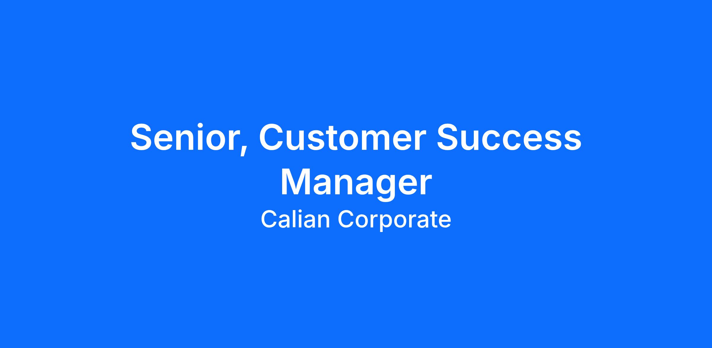 Job Title: Senior, Customer Success Manager